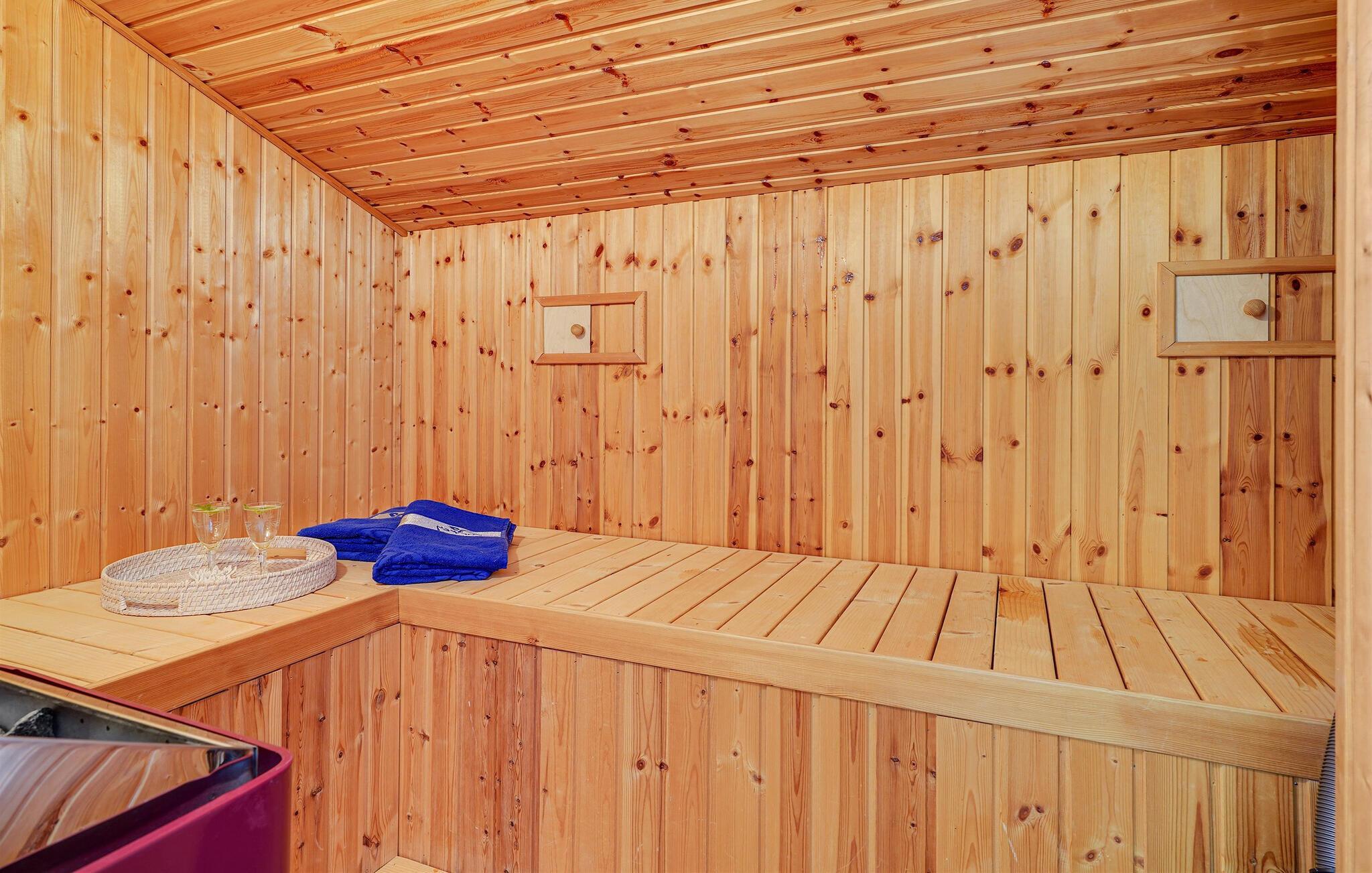 Dieses einladende Ferienhaus ist wie geschaffen für eine ruhige Auszeit vom Alltag. Durch große Fensterfronten gelangt viel Tageslicht ins Innere, während Sie aus den hellen Wohnräumen eine wunderschöne Panoramasicht auf das Wasser genießen. Entspannen Sie sich auf dem gemütlichen Sofa mit einem Glas Wein, entzünden Sie an kühleren Tagen den Kaminofen oder erholen Sie sich bei wohliger Wärme in der Sauna.