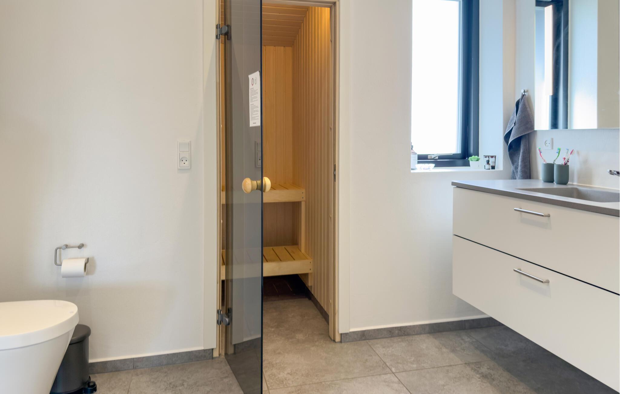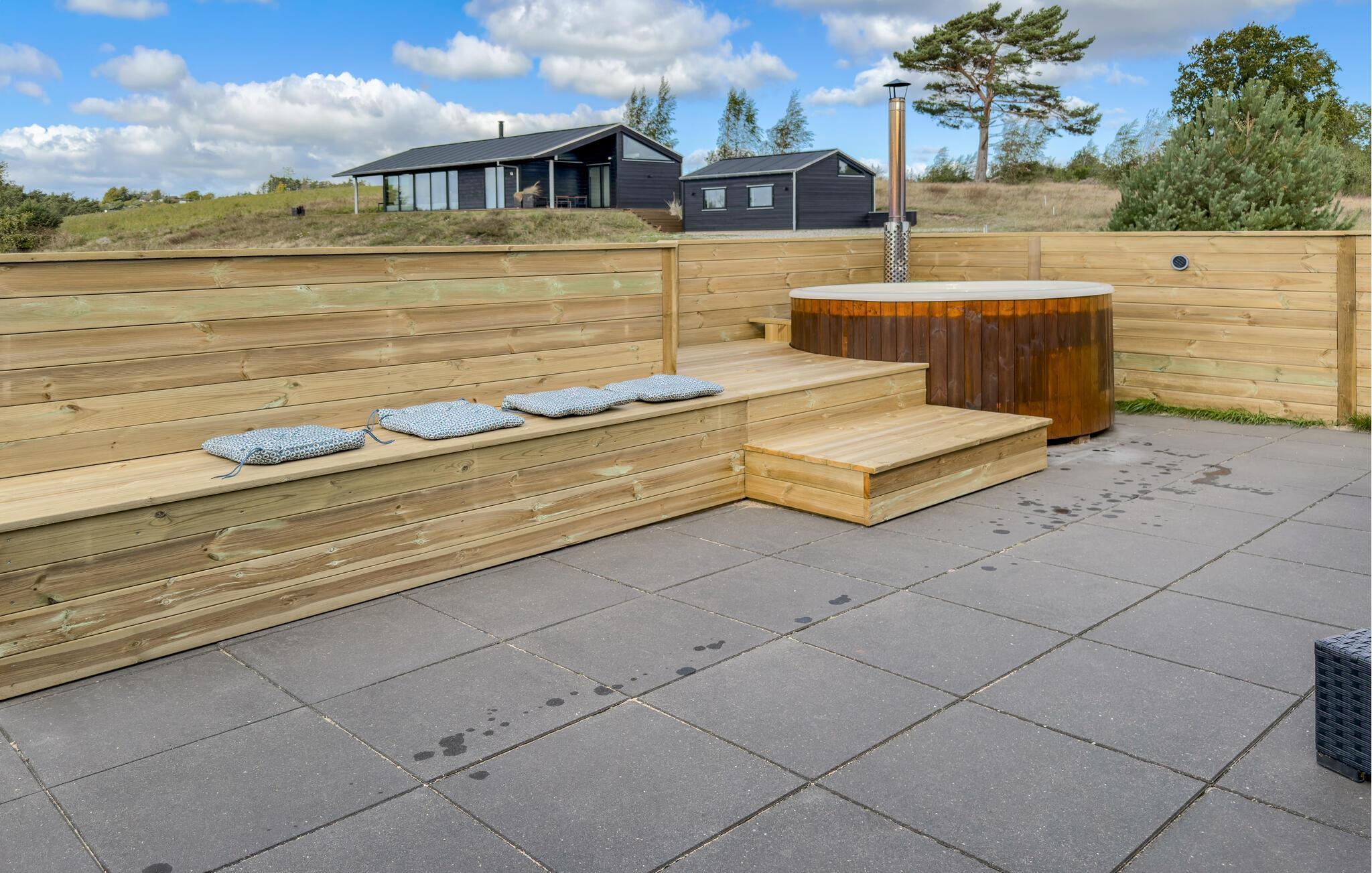 Genießen Sie den Urlaub in diesem komfortablen Ferienhaus mit Sauna und Wellness im Freien.