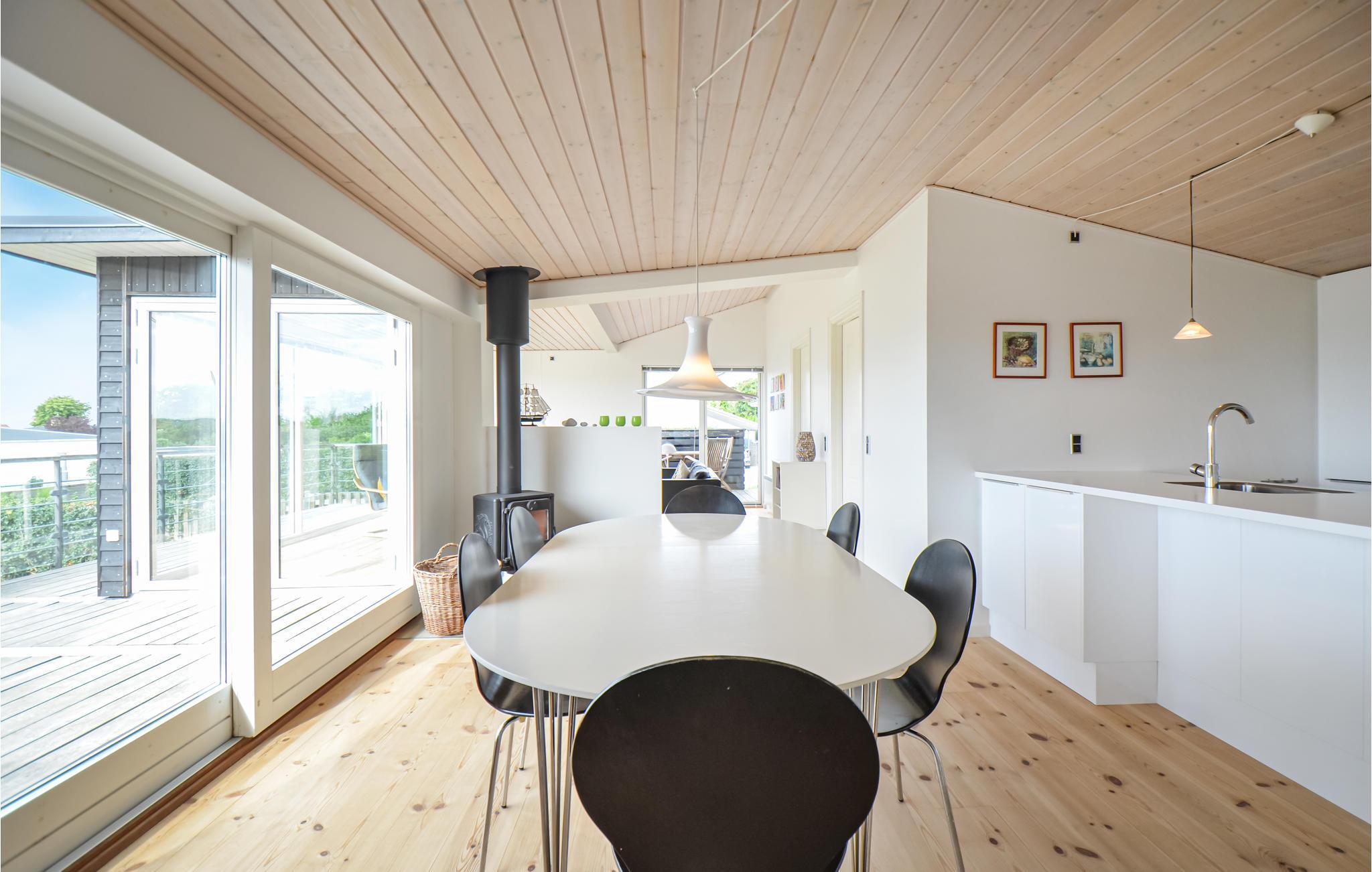 Superschönes, frisch renoviertes Ferienhaus mit Aussicht auf das Meer, den Strand und den beliebten Badesteg. Das Haus ist hell und modern eingerichtet. Der Strand ist nur 200 Meter vom Haus enfernt - schnappen Sie sich also einfach morgens Ihr Handtuch für ein erfrischendes Bad im Meer. Das Haus ist gepflegt, schön eingerichtet und gut für einen gelungenen Urlaub mit der Familie ausgestattet. Vor dem Wohnzimmer liegt direkt eine schöne, überdachte Terrasse, wo Sie können fast immer im Freien essen können. Im Garten gibt es genug Platz zum Spielen auf der Rasenfläche. Ein Geh- und Radweg führt vom Haus direkt nach Ebeltoft.