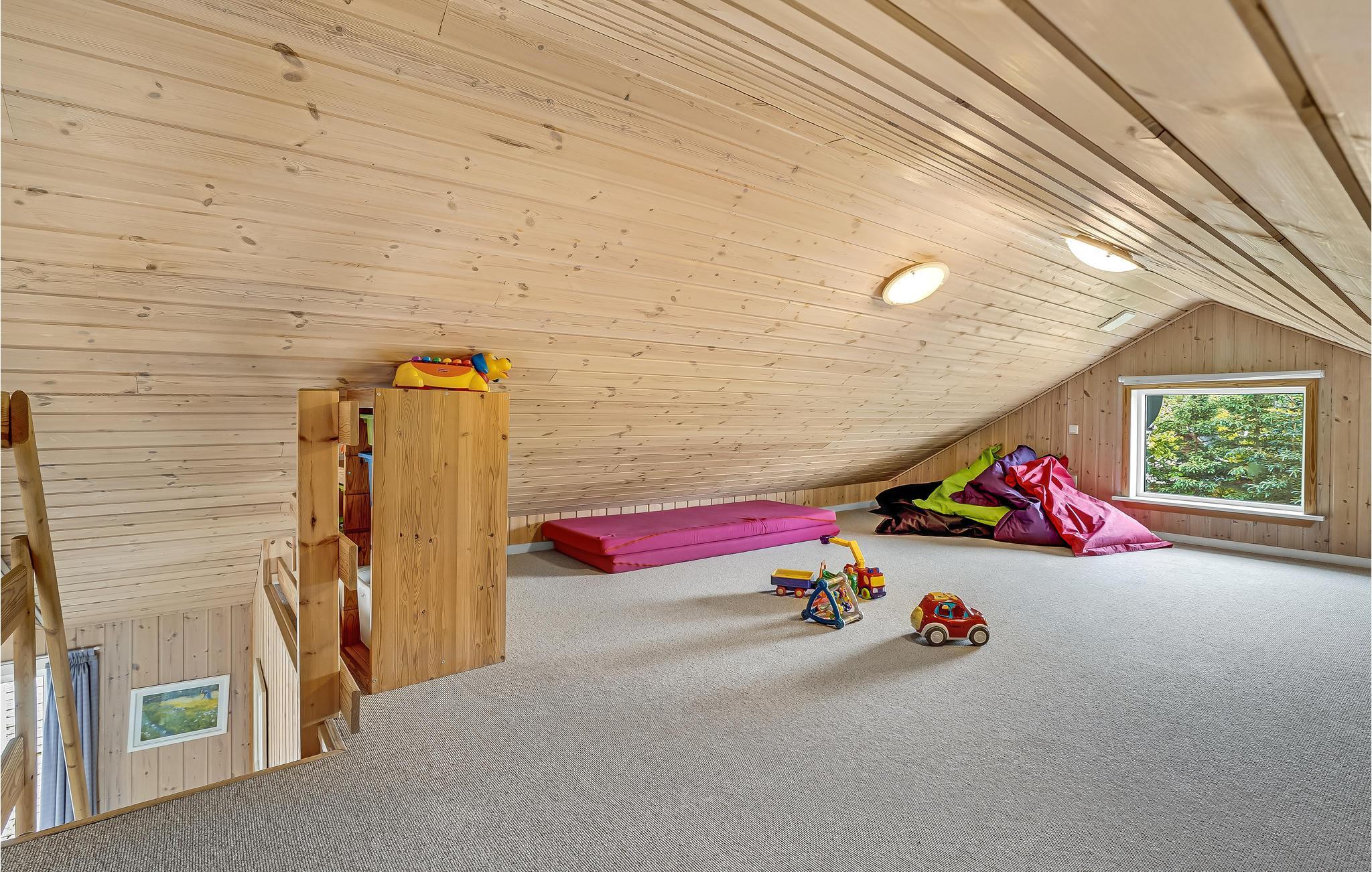 Im Inneren des geräumigen und gut ausgestatteten Ferienhauses erwarten Sie 7 Schlafzimmer, 4 Badezimmer, eine Küche und ein schöner Wohnbereich sowie ein Aktivitätsraum, der für Unterhaltung sorgt. Die Kinder werden den offenen Spitzboden lieben, wo sie ungestört spielen können. Mit diverse Spielen, Aktivitäten und Internet wird es auch an regnerischen Tagen nicht langweilig.