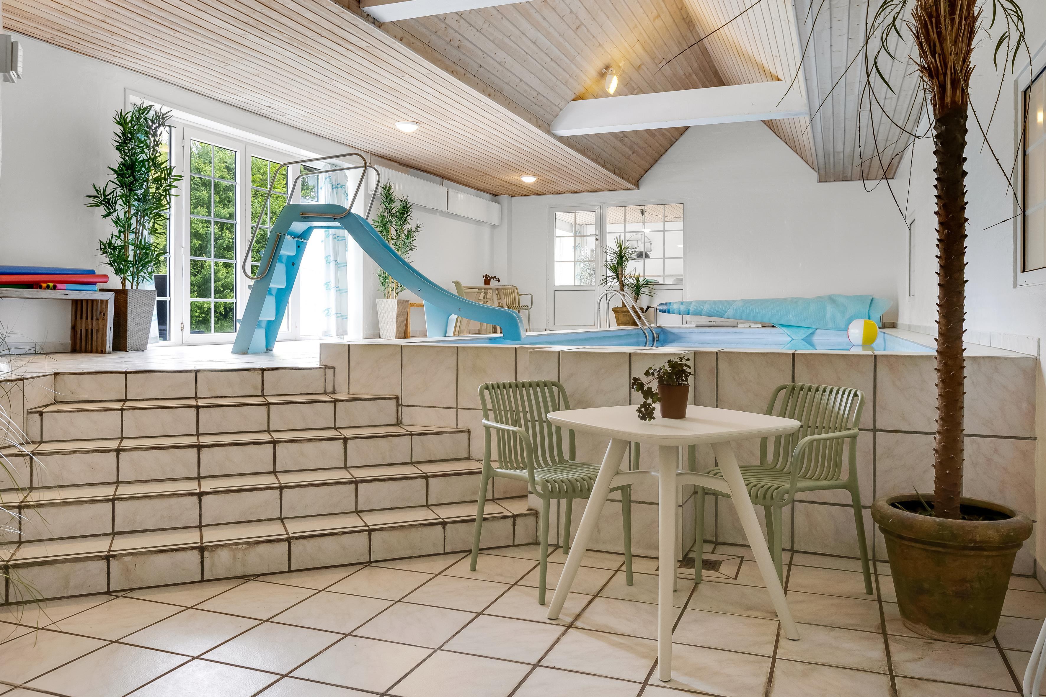 The children's favorite, however, is the large swimming pool with its water slide and the indoor hot tub, which can accommodate up to 4 people, ensures that you can relax and pamper yourself after a long day full of activities.
