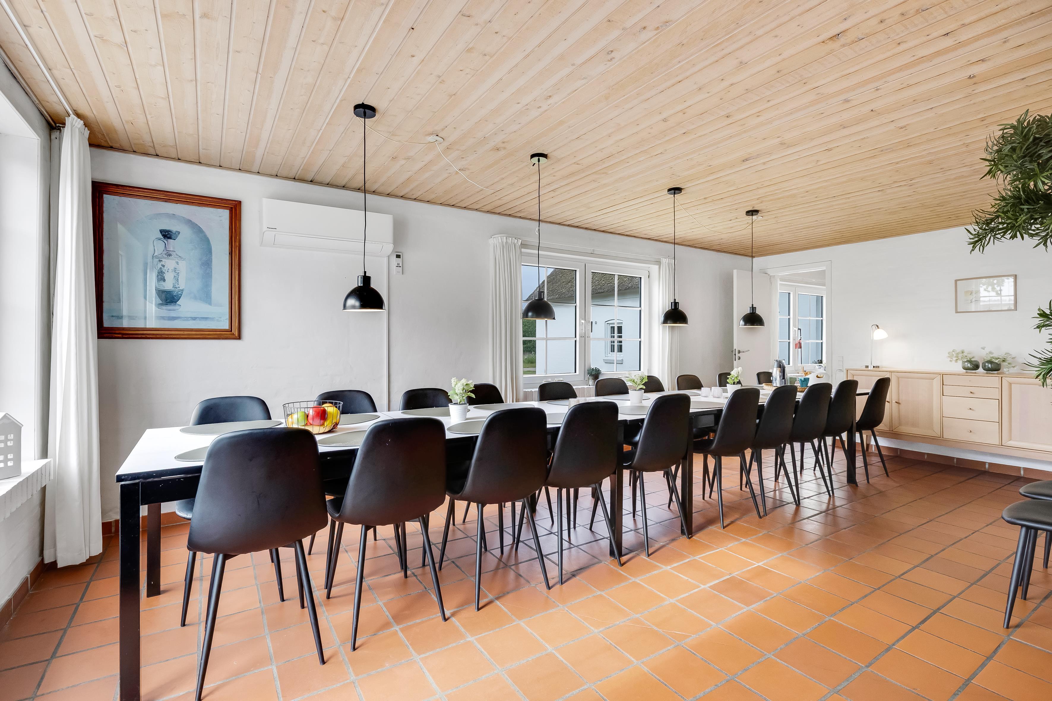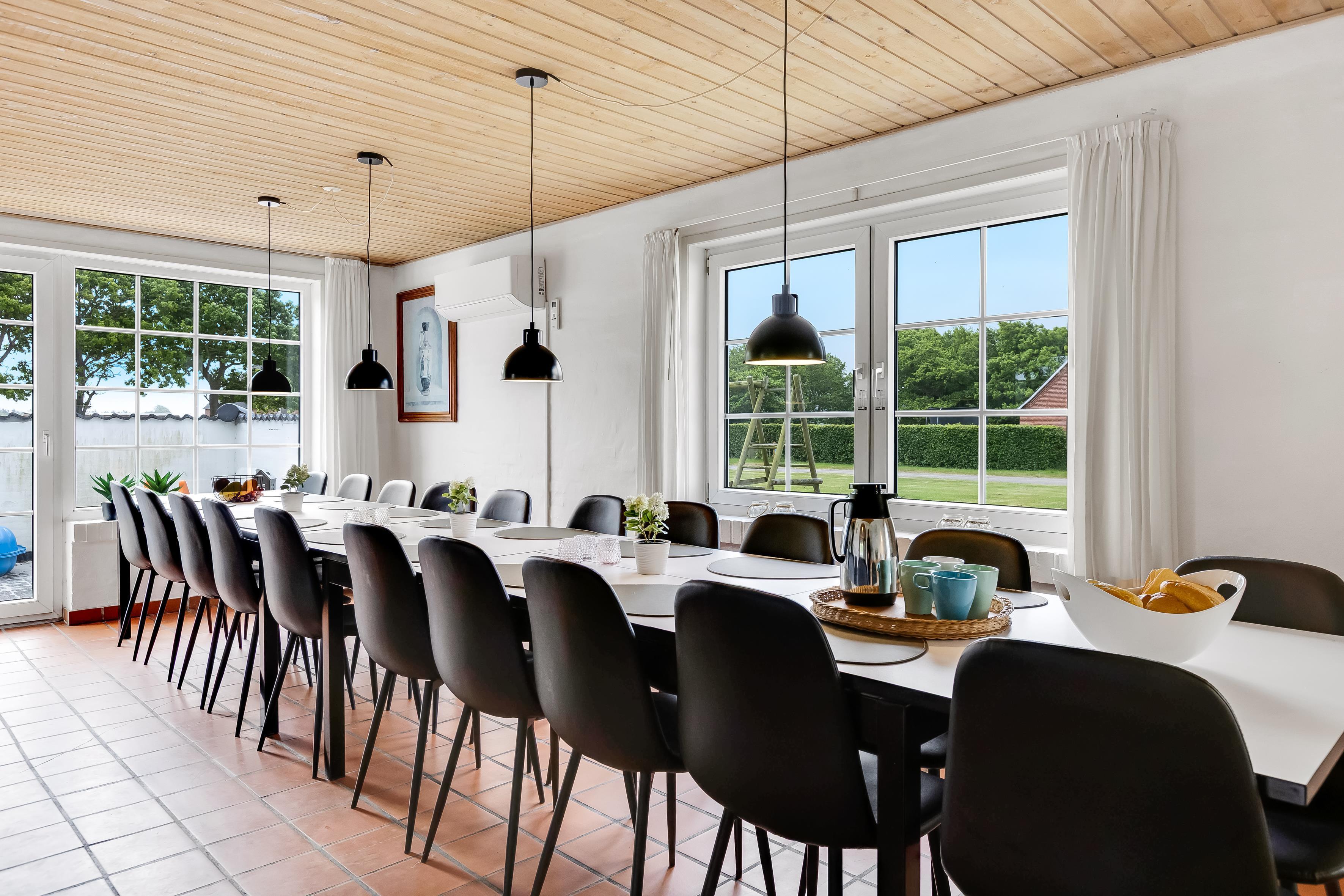 This huge holiday home at Ejsingholmvej 17 in Ejsingholm, can accommodate up to 24 people. Located just 300 meters from the water, this property offers the perfect combination of comfort and fun for the whole family. The house, built in 1939, was renovated in 2009, making it a modern oasis with all the amenities you could need during your stay.