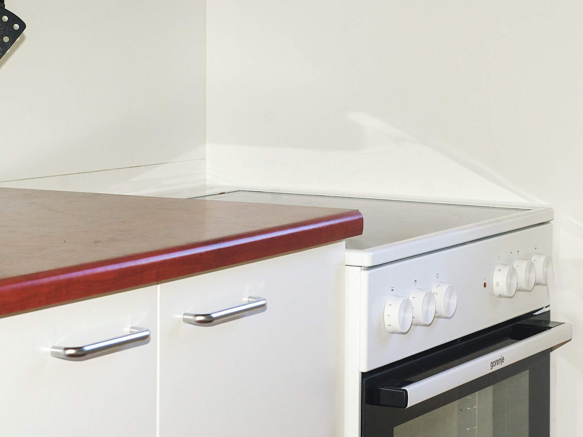 Im Haus befinden sich eine kleine, ältere Küche, die mit dem Essbereich verbunden ist und sich ideal für gemeinsame Mahlzeiten eignet, sowie ein einladendes Wohnzimmer mit einem Holzofen. Gäste können ihre Lieblingssendungen über ihren eigenen TV-Anbieter streamen. Das Badezimmer ist mit einer Waschmaschine ausgestattet – ideal für längere Aufenthalte. Die Inneneinrichtung verbindet funktionales Design mit einer warmen, heimeligen Atmosphäre, die zum Entspannen und geselligen Beisammensein einlädt.