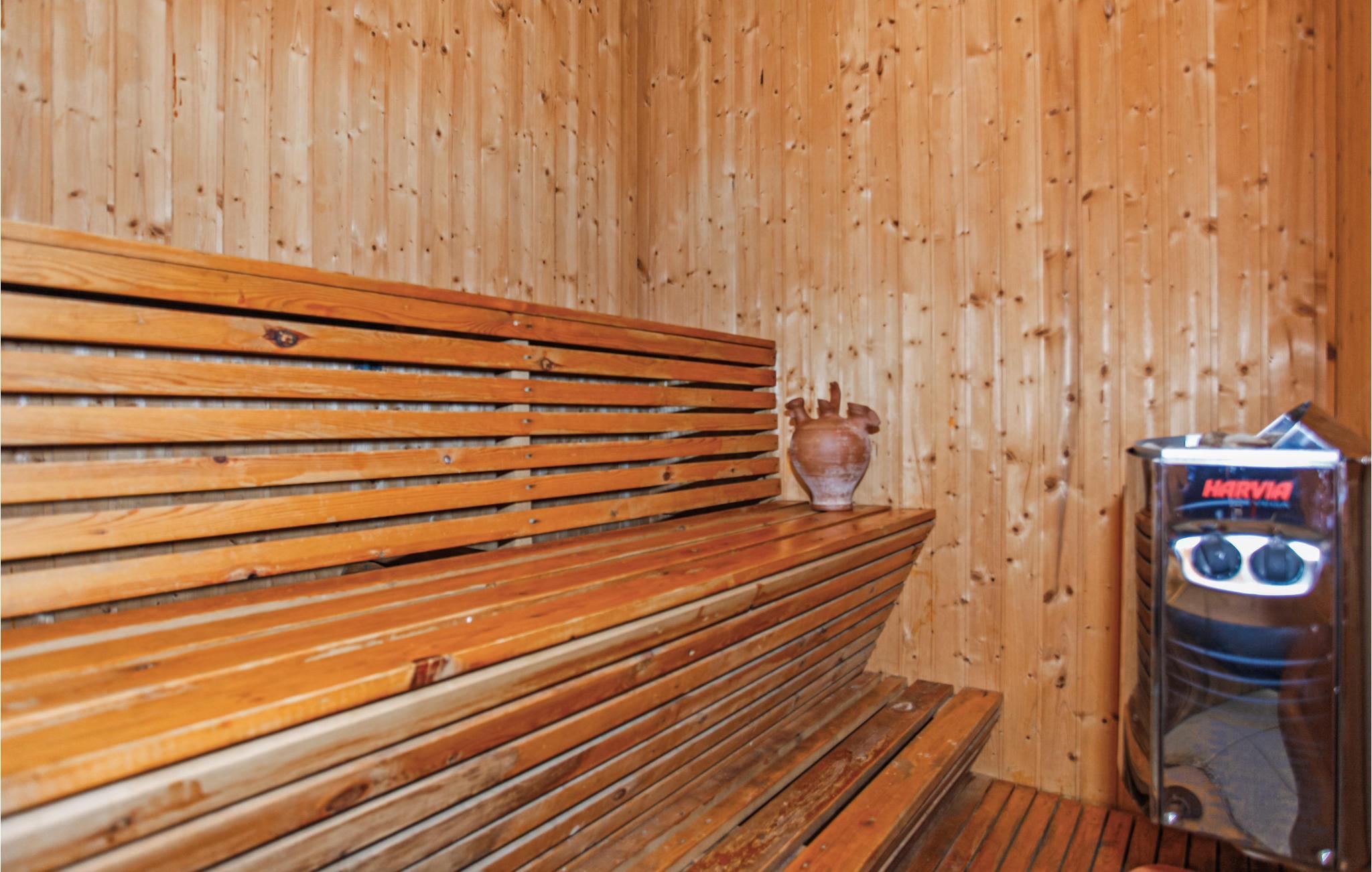 Nahe am prachtvollen Sandstrand mit wundervollem und kinderfreundlichem Sanduntergrund erwartet Sie das Ferienhaus in einem Naturgebiet. Die absolut größte Attraktion des Hauses ist der 18 m2 herrlich temperierte Swimmingpool. Von der Poolabteilung, die auch einen Whirlpool hat, haben Sie durch die großen Panoramafenster Aussicht in den Garten. Darüber hinaus Zugang zu Sauna und Dusche. Das Wohnzimmer besitzt einen behaglichen Kaminofen. Die vier großzügigen Schlafzimmer wie auch der Schlafboden geben Schlafplatz für zwei Familien. Das Haus hat zwei Badezimmer und Fußbodenheizung in einem Großteil des Hauses. Im Garten stehen Ihnen Sandkasten, Schaukel, Rutsche und eine Wiese zum Ballspielen zur Verfügung. Lassen Sie Ihre Kinder spielen und Sie machen es sich auf der Terrasse gemütlich.