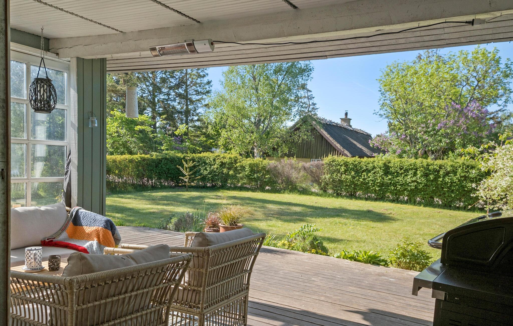 Die überdachte Terrasse lädt zu gemütlichen Grillabenden ein und bietet einen nahtlosen Übergang zwischen Innen und Außen. Auf dem gut gepflegten Rasen ist viel Platz für lustige Aktivitäten. Spielen Sie zum Beispiel mit der ganzen Familie eine Partie Krocket oder Federball.