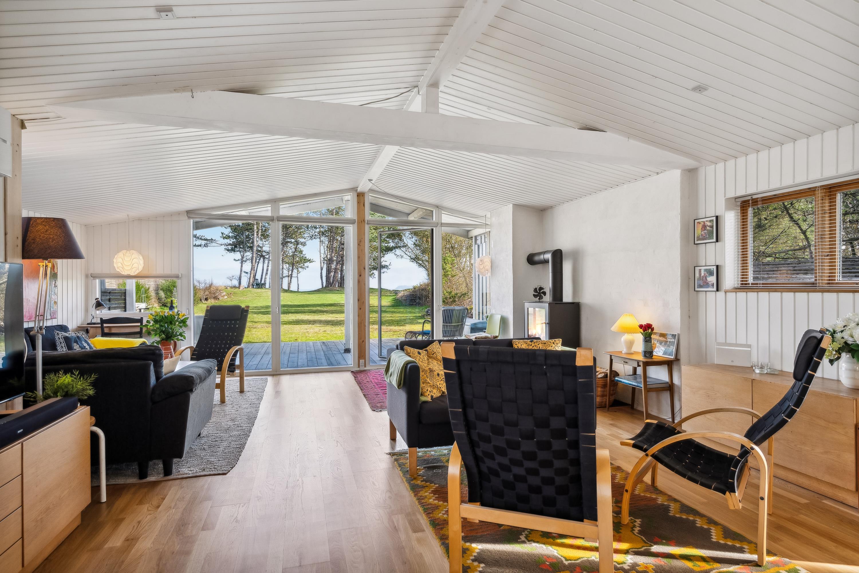 As soon as you step through the door of this super cozy holiday home, you sense the authentic cottage atmosphere that fills the house. Here you'll find a cozy and well-appointed living room with a wood stove and heat pump, with access to a lovely covered terrace. Newly renovated and functional kitchen area including a dishwasher. The sleeping arrangements in the house are spread over three good-sized bedrooms, two with double beds and one with two single beds. From one of the bedrooms, there is direct access to a charming sun courtyard. Beautiful new bathroom with shower and underfloor heating. Outside, you'll find lovely terrace areas with garden furniture and a truly cozy covered sun courtyard, so you can comfortably sit outside even on a cool evening. With the fantastic location the house enjoys, you have the most wonderful beach practically in your "backyard". From the property, you can look over to the small island of Hjelm, known as the refuge of Marsk Stig in 1287. Large lawn suitable for play and outdoor relaxation.