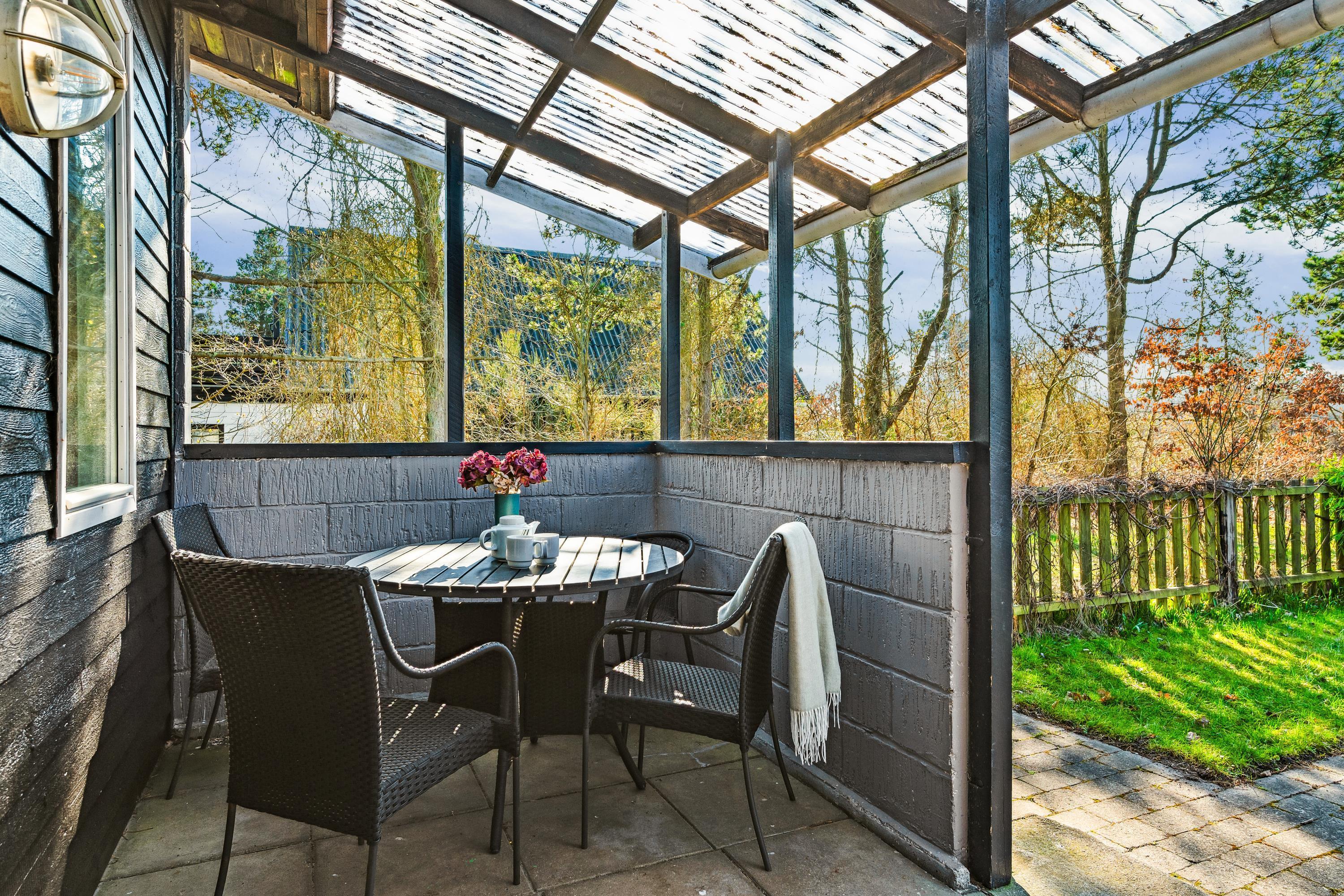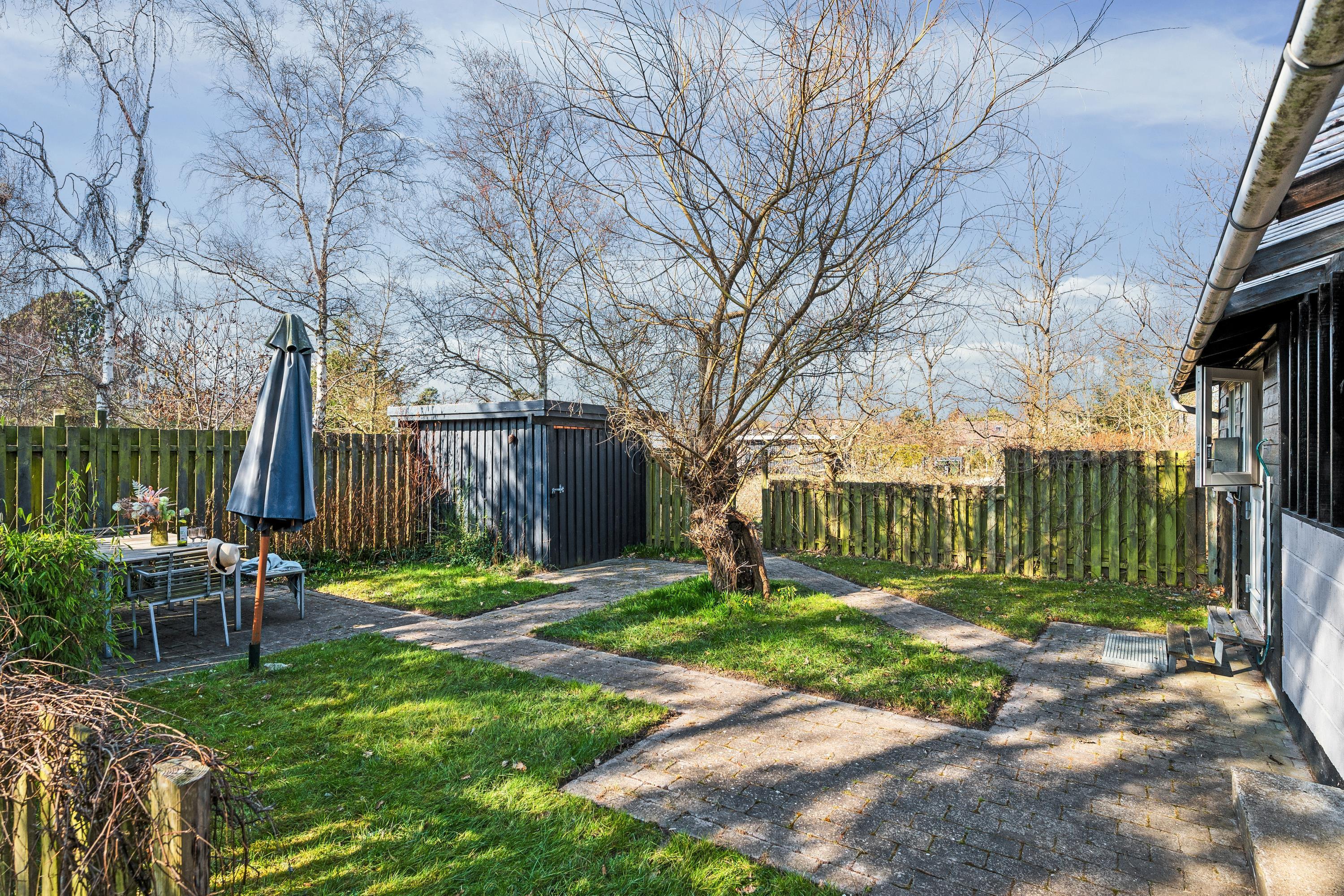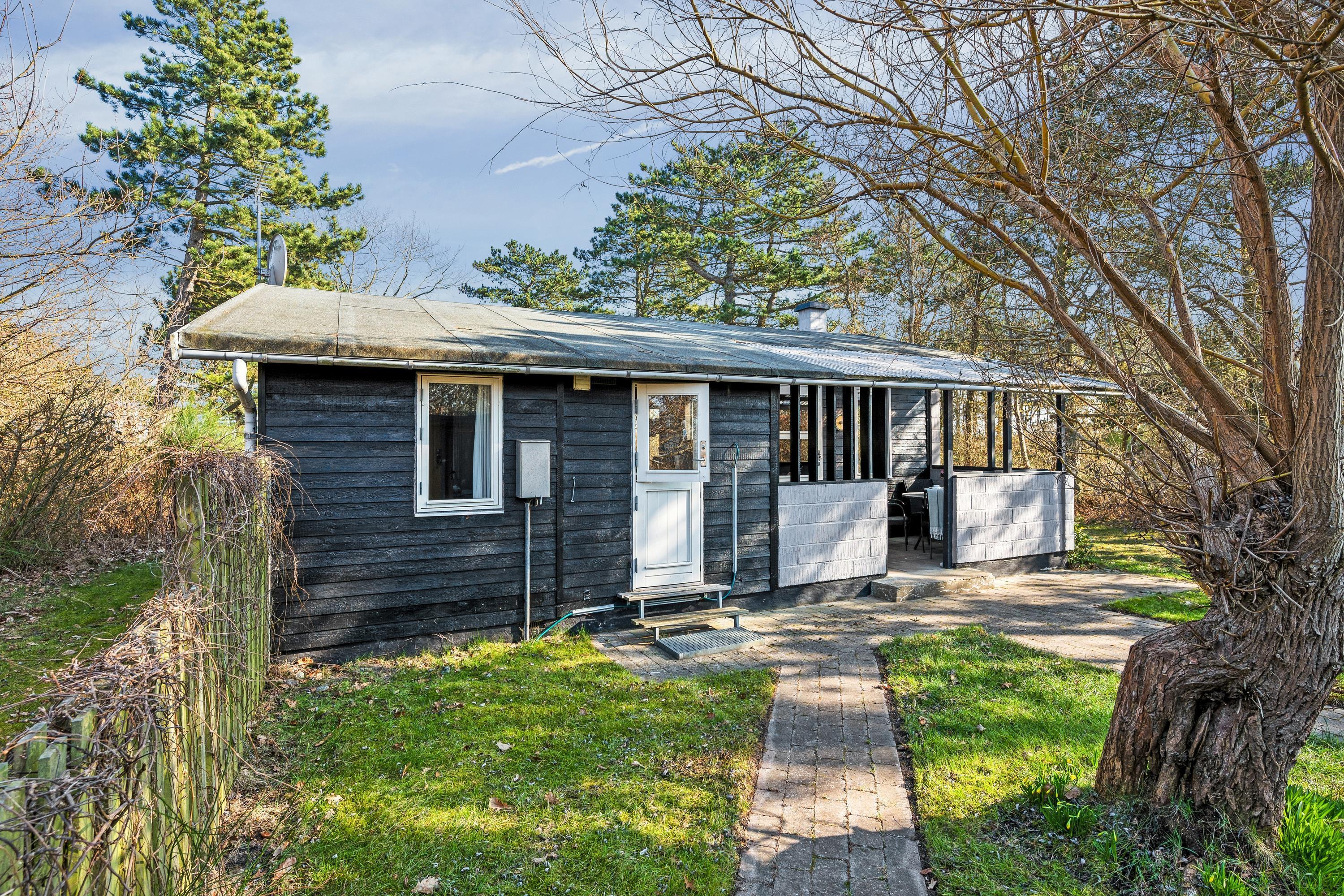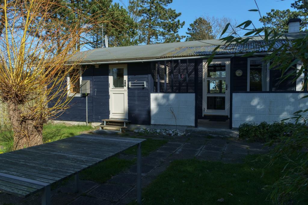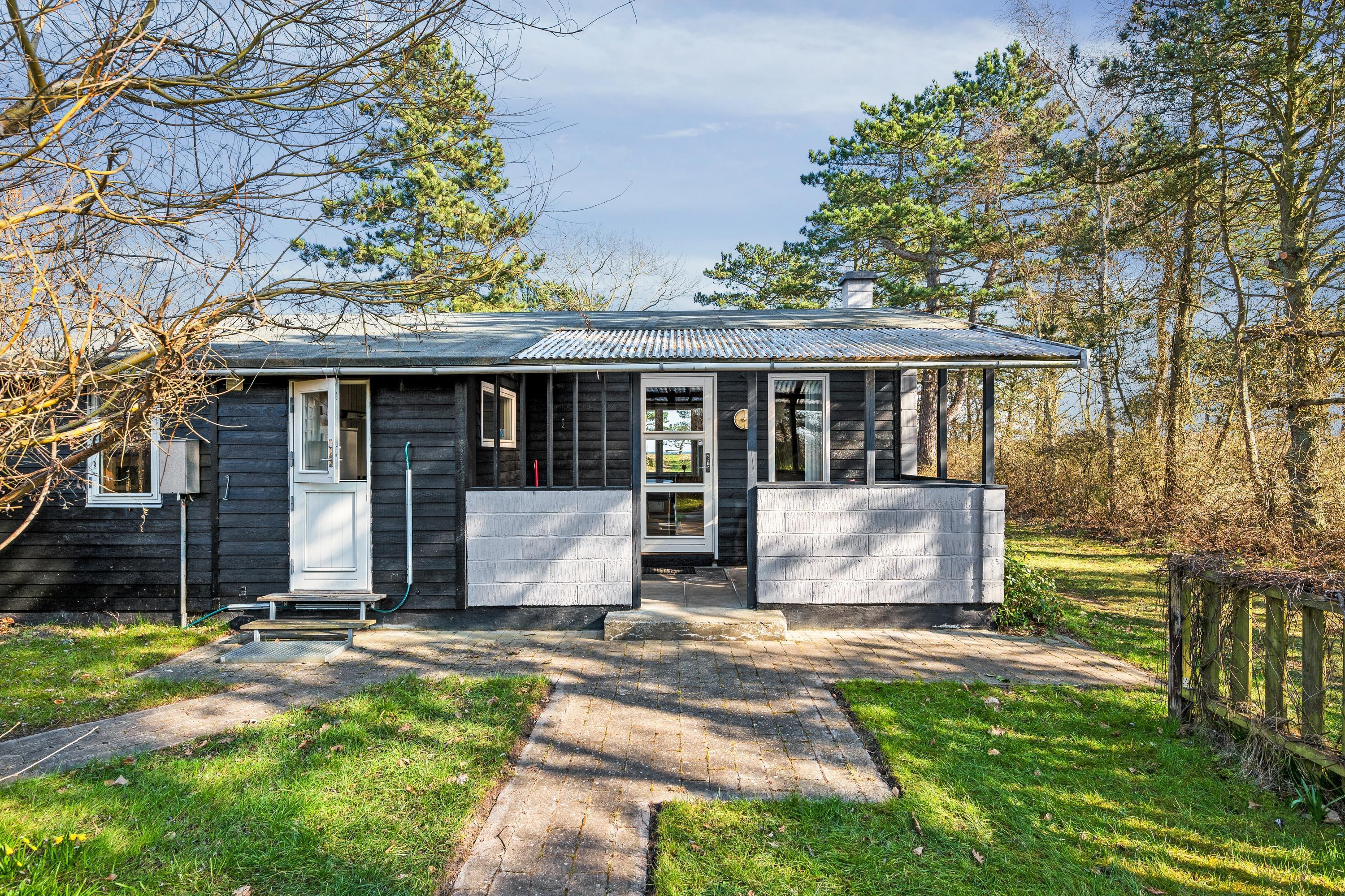 Small, older, and well-maintained holiday home located on a large natural plot with a fantastic view of the Kattegat and Hjelm. West-facing and partially covered tiled terrace with garden furniture, loungers, parasol, and grill. There is an outdoor fish cleaning area, and on the plot, there is also a lockable shed.