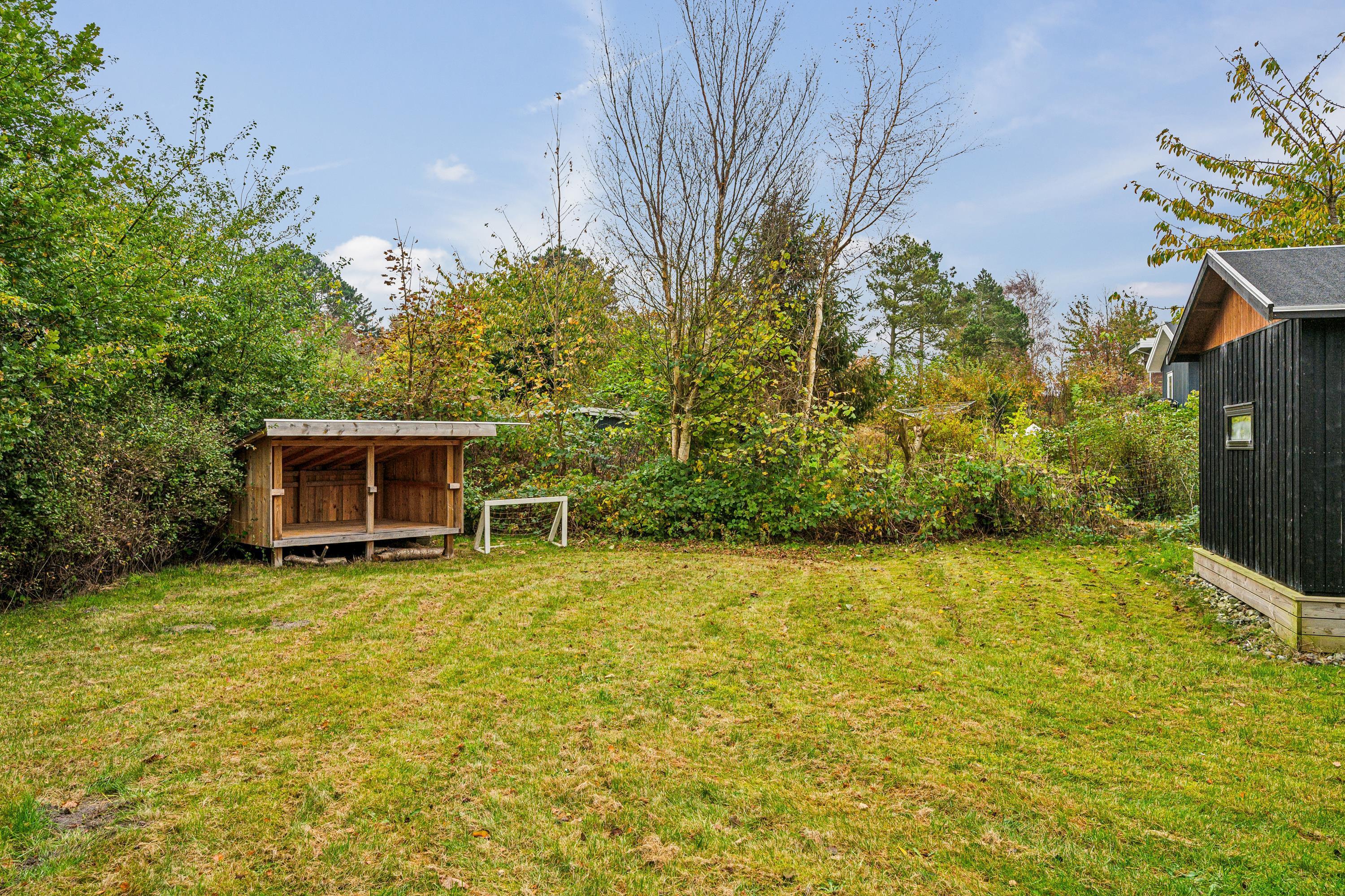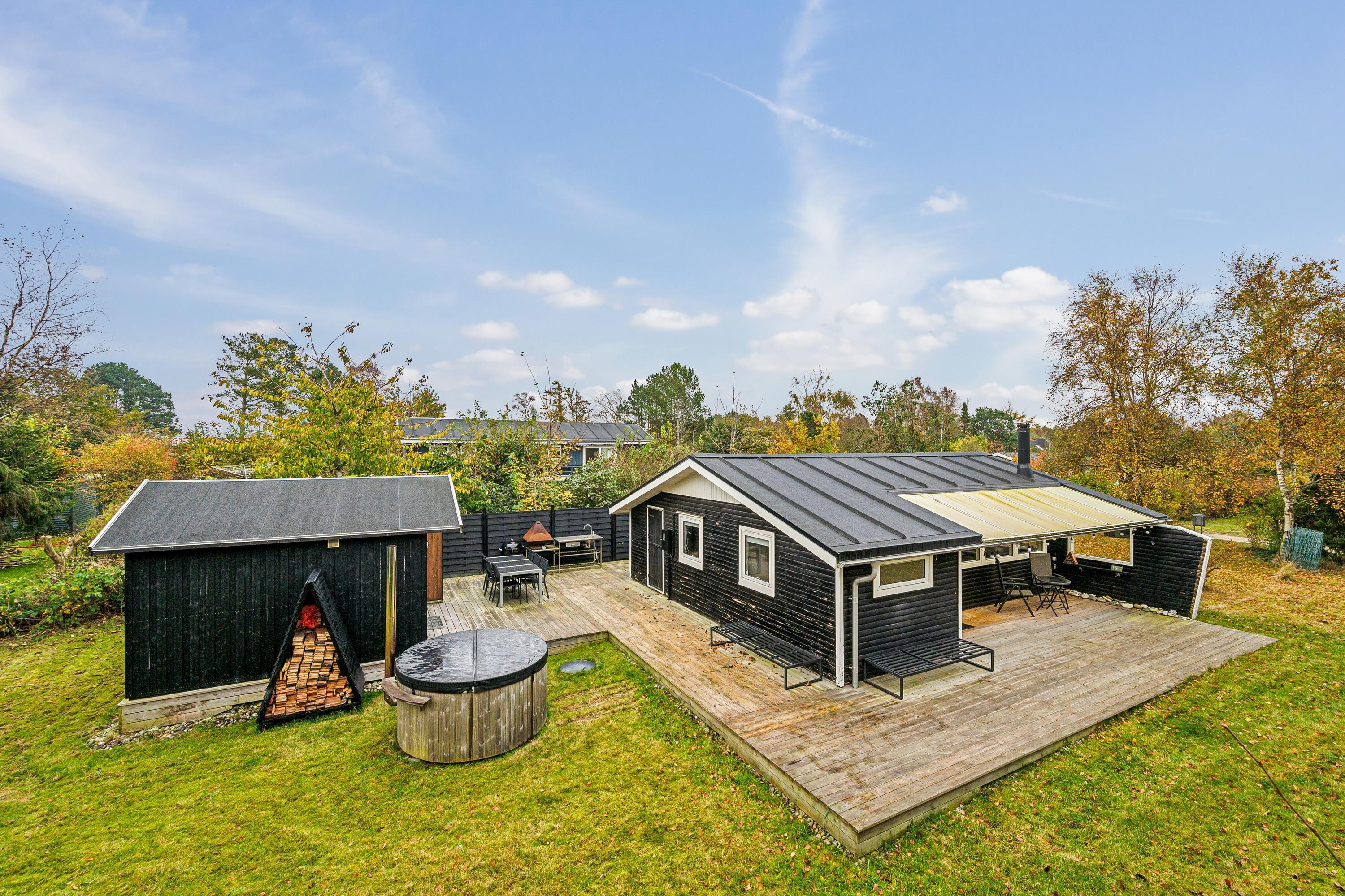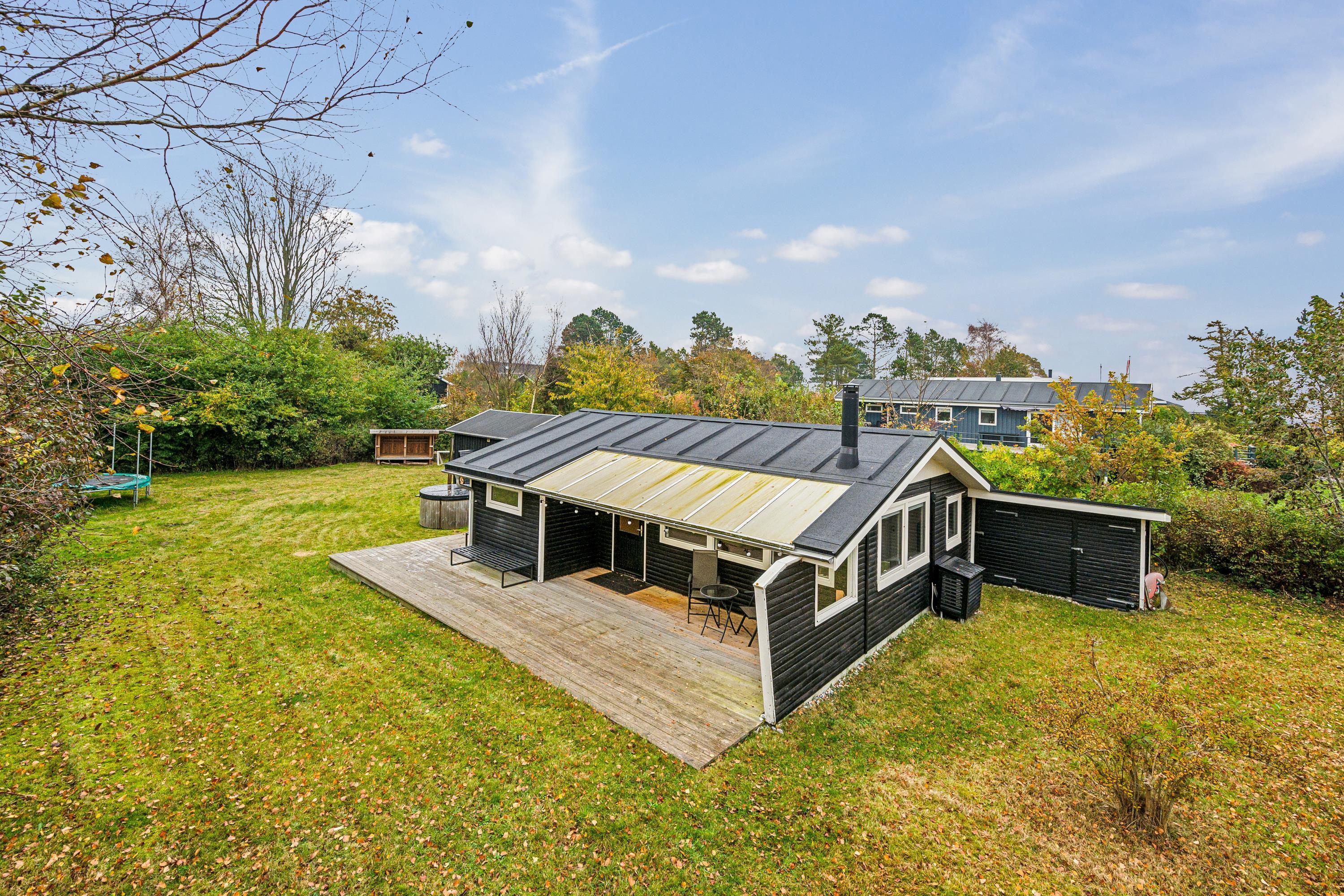 Just a 5-minute walk from the beach, you will find this older but cozy holiday home. The house features a bright living room with a wood-burning stove and a heat pump, as well as a charming dining nook. From the living room, there is access to a covered terrace. The kitchen is small but functional and includes a dishwasher. From the kitchen, you can step out onto a large open terrace area with garden furniture, a barbecue, and an outdoor kitchen. The bathroom is well-maintained and has a shower. The house has internet, and TV is done via Chromecast/Streaming. The sleeping accommodations are found in two bedrooms and a newer annex with two single beds. On the property, there is a cozy shelter and a wilderness hot tub, where you can enjoy a warm summer evening while listening to the sound of the sea.