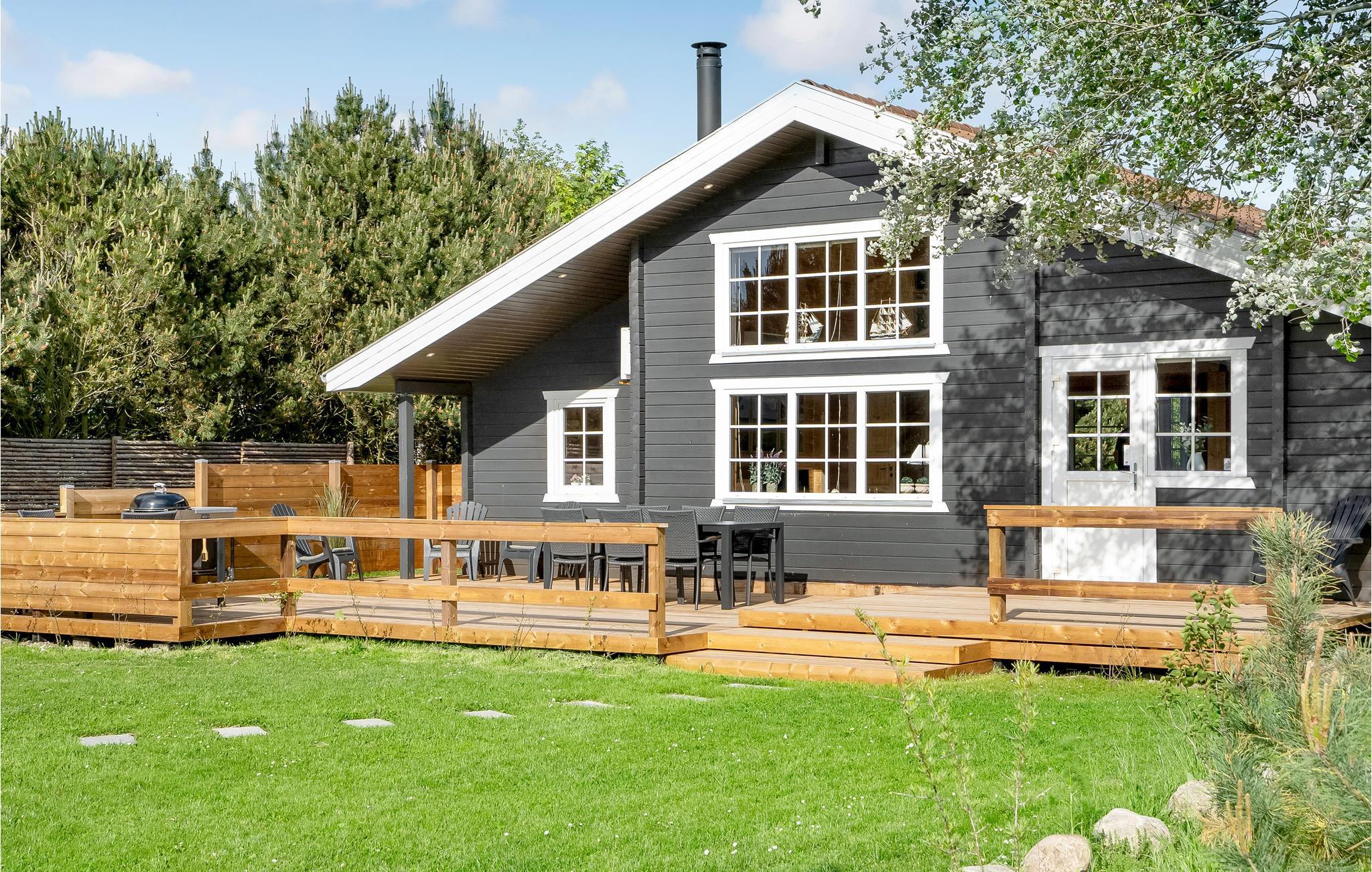 Das charmante Ferienhaus ist spannend eingerichtet und sehr geräumig, sodass zwei Familien dort gleichzeitig Ferien machen können. Das Haus verfügt über drei Schlafzimmer und ein offenes, mit der Küche kombiniertes, Wohnzimmer, von wo aus man hinauf auf den großen offenen Boden mit Stehhöhe gelangen kann. Hier treffen Sie auf beste Materialien und können sich wirklich wohlfühlen. Es gibt auch zwei schöne Badezimmer mit moderner Ausstattung, eines mit Badewanne, die zum Entspannen einlädt. Die Terrasse vor dem Wohnbereich liegt teilweise unter einem Dach und bietet so die Möglichkeit, bei jedem Wetter draußen zu sein.