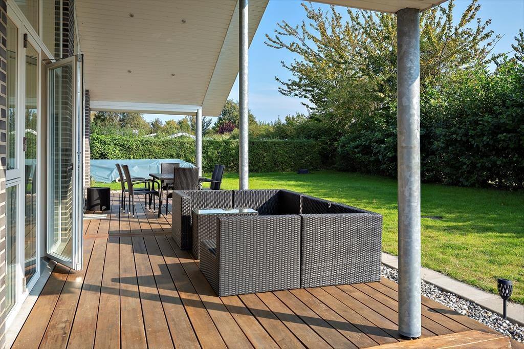 Willkommen in deinem Ferienhaus: Vom Eingangsbereich/Wirtschaftsraum betrittst du das große, helle Wohnzimmer, von dem aus du Zugang zu einer teilweise überdachten, nach Süden ausgerichteten Terrasse hast. Die gut ausgestattete Wohnküche bietet alles, was du brauchst: Kühlschrank, separater Gefrierschrank, Induktionsherd/Ofen, Mikrowelle, Geschirrspüler und einen Weinkühler. Das Haus verfügt über drei geräumige Schlafzimmer mit viel Stauraum – eines mit Doppelbett und zwei mit Einzelbetten. Außerdem gibt es eine gemütliche Alkove, die Platz für 1-2 zusätzliche Schlafmöglichkeiten bietet. Die beiden Badezimmer sind sehr geräumig und komfortabel. Das Haus ist zudem mit einem Zentralstaubsauger ausgestattet.