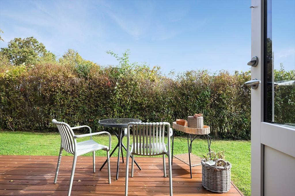 Genieße das Leben im Freien: Das Haus liegt auf einem 685 m² großen, eingezäunten und sonnigen Grundstück am Ende einer kleinen Seitenstraße. Die große Terrasse lädt zum Entspannen ein und bietet ideale Bedingungen, um Ruhe und Frieden zu genießen. Lehne dich mit einem guten Buch zurück und lass Urlaubsstimmung aufkommen. Es gibt mehrere gemütliche Sitzplätze rund um das Haus, an denen du die Sonne genießen kannst – oder unternimm einen erfrischenden Spaziergang bzw. eine Radtour in der schönen Umgebung. Zwei Fahrräder stehen dir zur Verfügung.