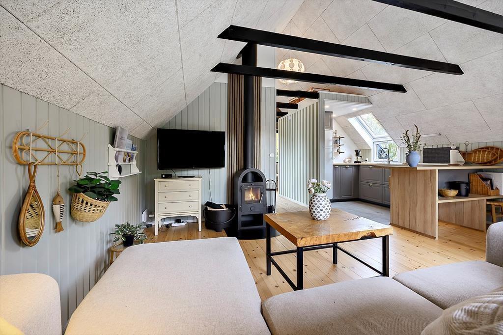 Willkommen in deinem Ferienhaus: Das Ferienhaus wurde in den letzten Jahren umfassend renoviert und verfügt über ein kombiniertes Wohn- und Esszimmer mit heller und moderner Einrichtung. Vom Wohnzimmer aus gelangt man auf eine große Terrasse. Die offene Küche, die mit dem Wohnzimmer verbunden ist, ist mit einem Kühlschrank mit Gefrierfach, einem Herd mit Backofen und einer Mikrowelle ausgestattet. Das Haus verfügt über ein Schlafzimmer mit zwei Einzelbetten. Badezimmer mit Dusche, Waschbecken und WC. An kühleren Tagen können Sie gerne den Kaminofen anzünden und die Ferienatmosphäre genießen.