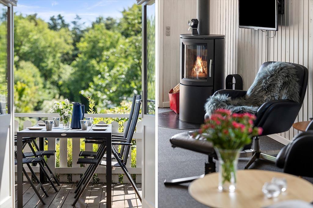 Wenn die Sonne über Ertebølle scheint, könnt ihr den Morgenkaffee mit auf die Terrasse nehmen und den Tag mit Vogelgezwitscher und frischer Fjordluft beginnen. Hier lässt sich wunderbar mit einem Buch entspannen, unter freiem Himmel essen und die Ruhe in der grünen Umgebung genießen. Die Terrasse ist euer privater Außenbereich, mit viel Platz zum Spielen und Relaxen – und an lauen Sommerabenden lädt die Feuerstelle dazu ein, ein Lagerfeuer zu entfachen, Marshmallows zu rösten und im Schein der Flammen gute Gespräche zu führen. Wenn die Dunkelheit hereinbricht und die Sterne über den Baumwipfeln aufleuchten, fühlt sich das Leben ganz einfach und nah an. Genau diese Momente bleiben im Gedächtnis – Erinnerungen, zu denen man gern zurückkehrt.