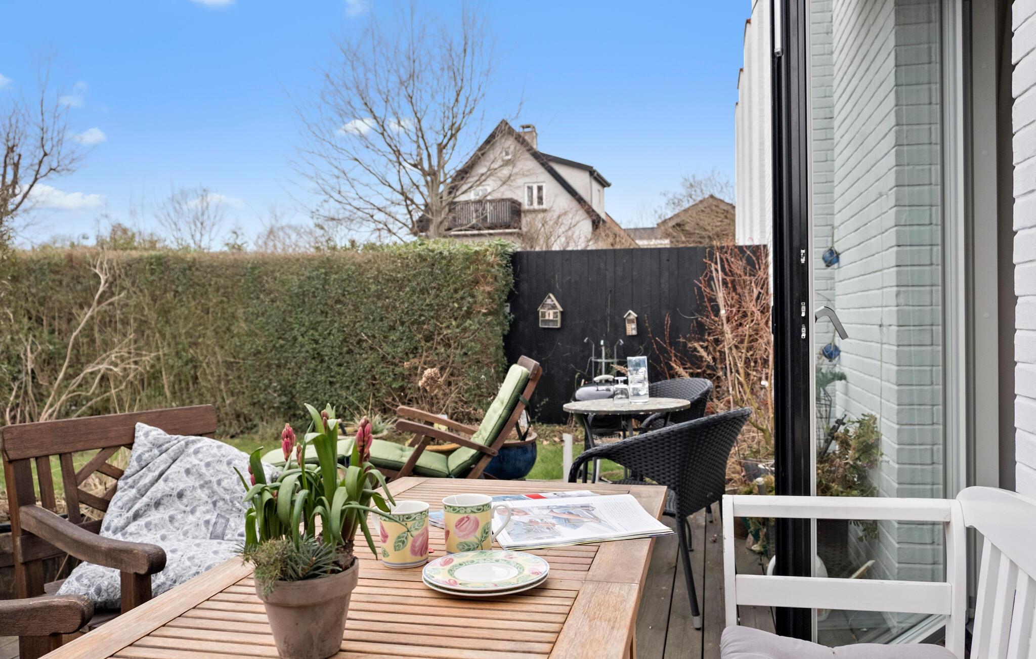 Tanken Sie Sonne auf der einladenden Terrasse und entspannen Sie auf der Liege, während Ihre Kinder im geschützten Garten ein Picknick organisieren. Entfachen Sie den Grill und genießen Sie laue Sommerabende bei Wein und Kerzenschein.