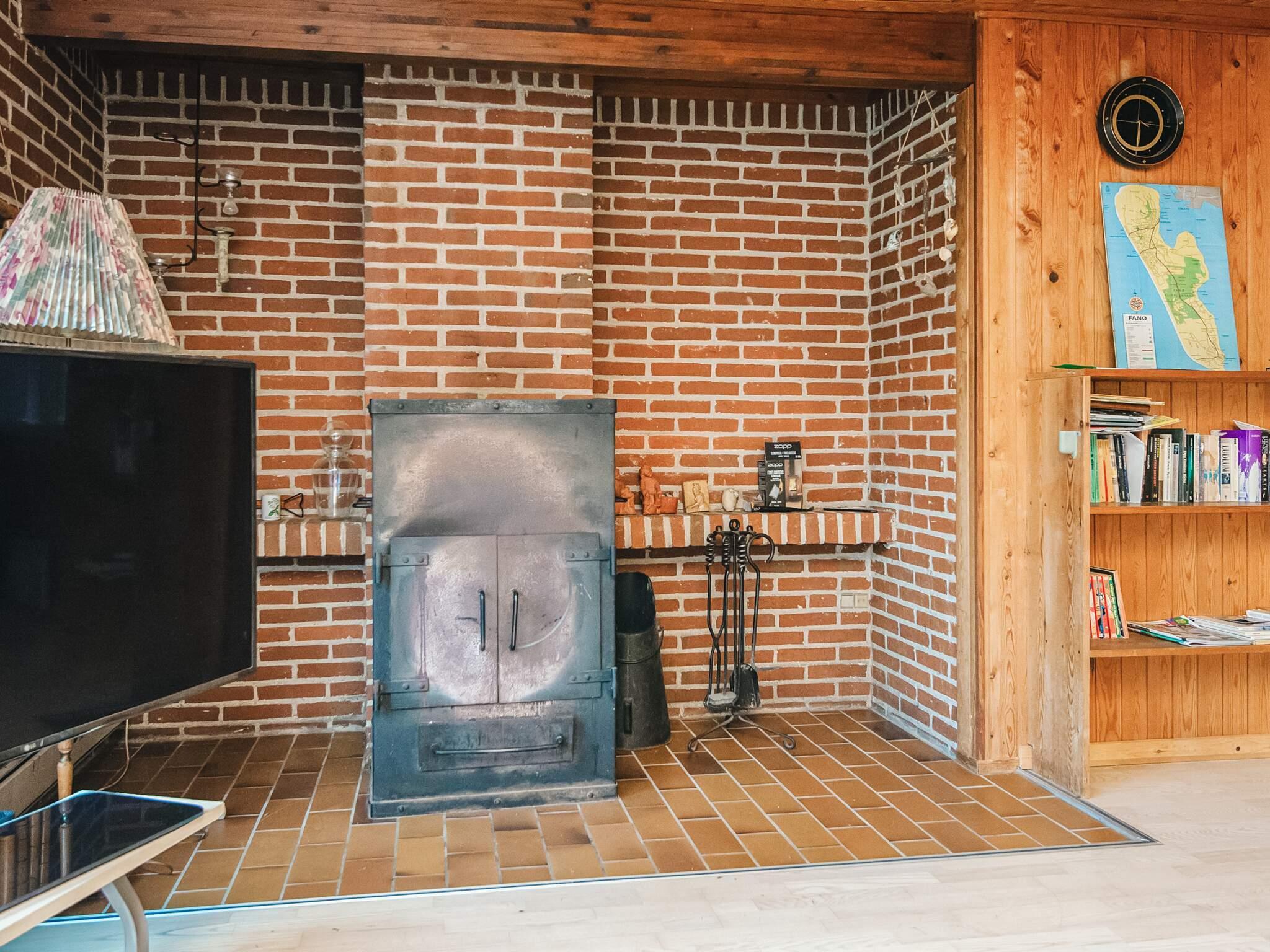 Wohnzimmer: Das geräumige Wohnzimmer ist der ideale Ort zum Entspannen und verfügt über einen gemütlichen Holzofen, einen CD-Player und einen Fernseher zur Unterhaltung.