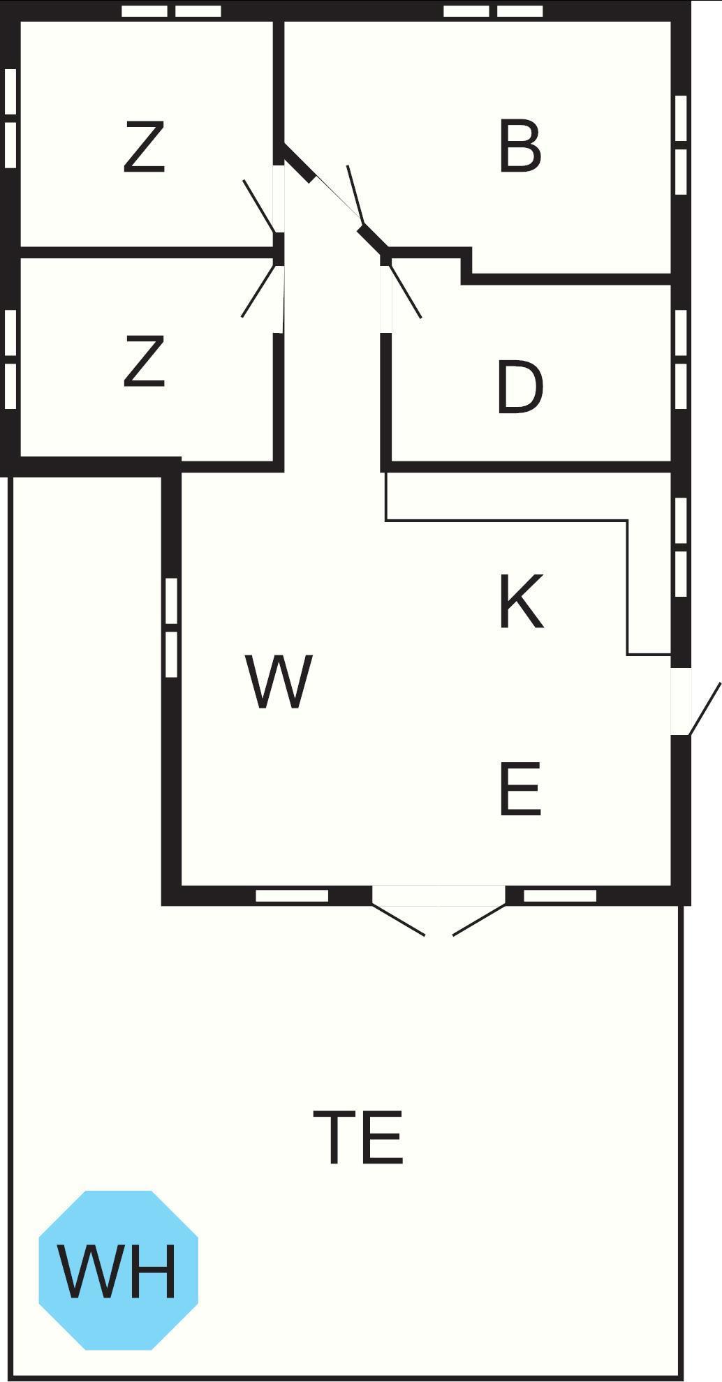 Bad: Waschm, Trockner, WC, Waschb., Dusche, Fußbodenheiz.
