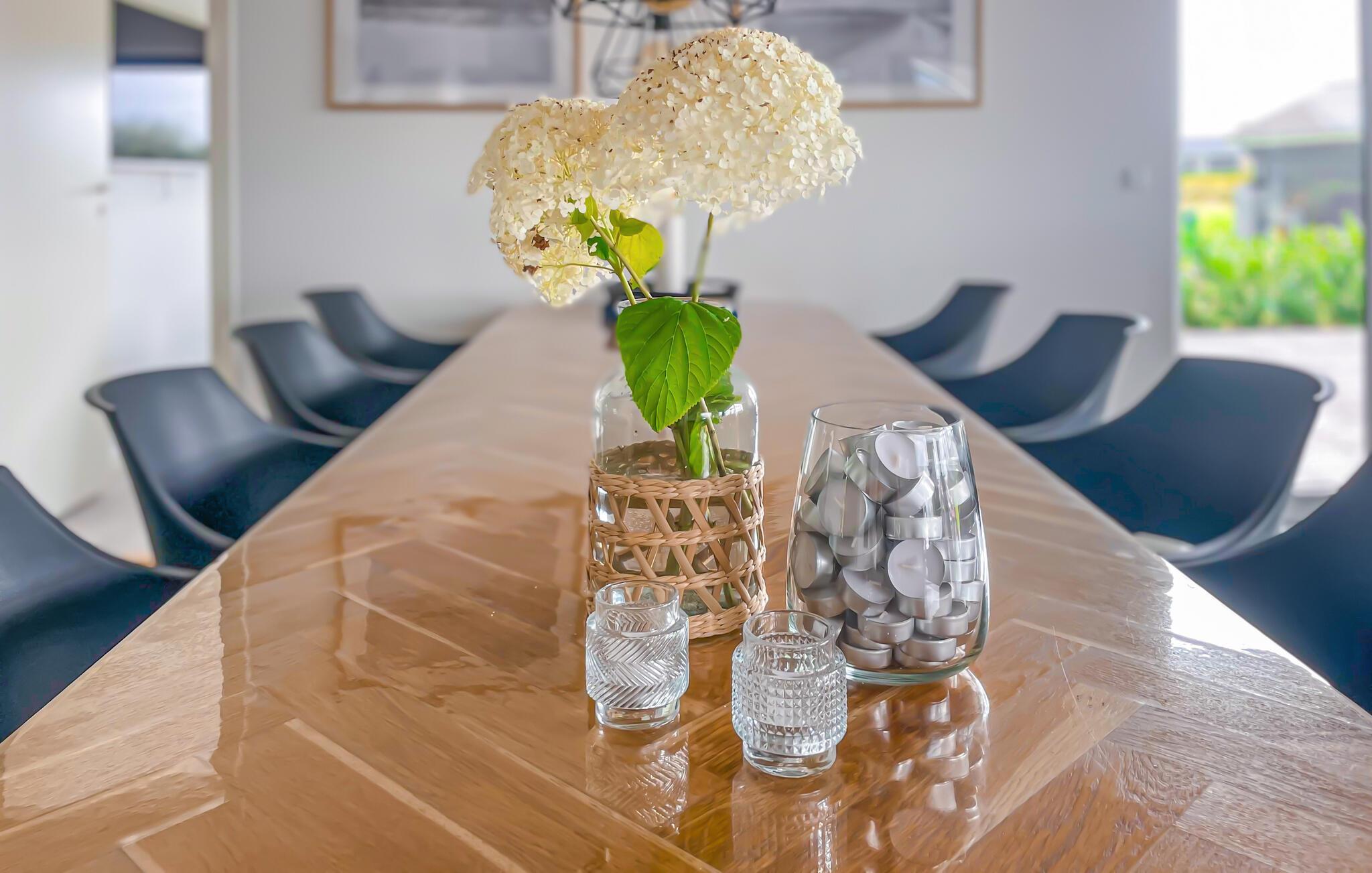 Im Inneren des Hauses erwartet Sie eine geräumige Kombination aus Küche und Wohnzimmer mit schönem Lichteinfall und Ausgang zur Terrasse. Das Haus bietet zwei Bäder, in einem davon befindet sich eine Badewanne sowie der Zugang zur Sauna, von hier aus gelangen Sie auch zum Außenwhirlpool. Außerdem gibt es einen schönen Aktivitätsraum mit Tischfußball, Airhockey und Arkadeautomat. Fünf Schlafzimmer mit Doppel- und Einzelbetten.