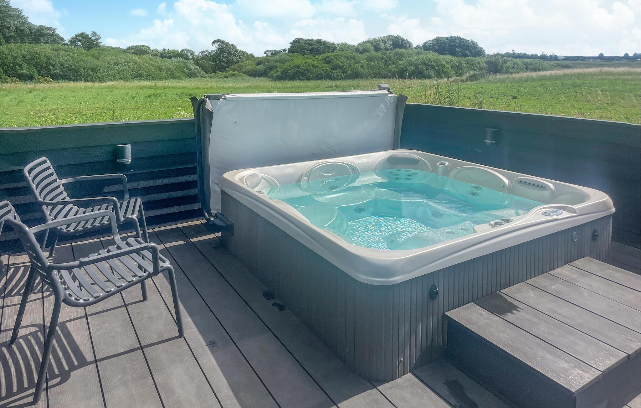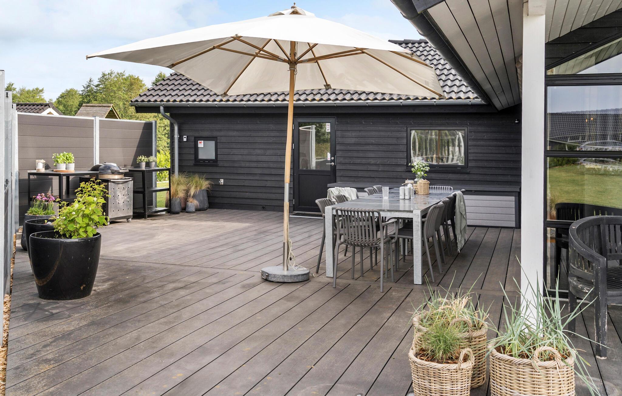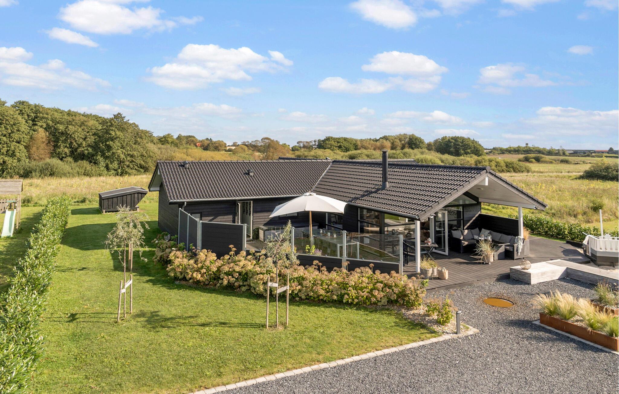 Attraktives Aktivitäts- und Wellnessferienhaus auf einem großen Grundstück mit Blick auf die offene Landschaft. Genießen Sie den Urlaub in diesem schönen Ferienhaus, das alles bietet, was eine Familie für einen gelungenen Urlaub braucht. Das Haus ist von guten Terrassen umgeben, so dass Sie hier je nach Bedarf immer Sonne oder Schatten finden. Genießen Sie Wellness und Erholung im großen Außenwhirlpool, den Sie selbst steuern, oder spielen Sie mit den Kindern auf dem Grundstück.
