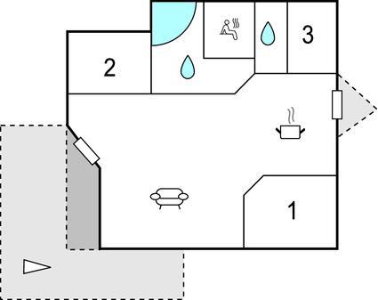 Badezimmer 9m2 (nr. 1) - WC. Warmes und kaltes Wasser. Dusche
