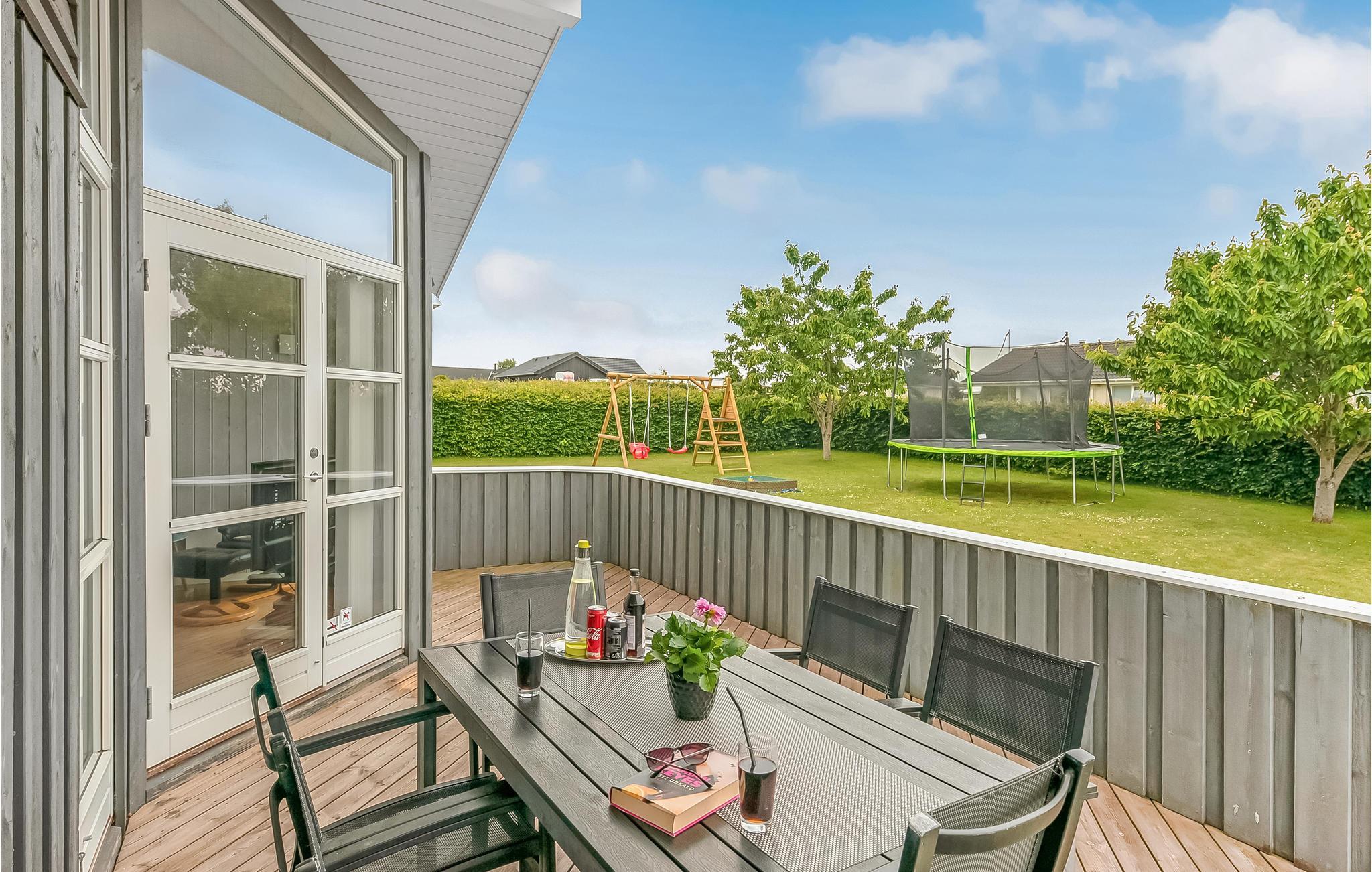 Schönes Ferienhaus in einer ruhigen Gegend. Dieses Haus liegt sehr kinderfreundlich, da es sich am Ende eines sehr verkehrsarmen Weges befindet. Im Inneren des Hauses treffen Sie auf eine helle und freundliche Einrichtung mit modernen Möbeln. Das Leben im Freien ist hier gleich auf mehreren Terrassen möglich, hier findet Ihre ganze Familie Platz. Das Grundstück grenzt an offene Felder und es kann schon vorkommen, dass Sie im Garten von Fasanen, Hasen und Rehen besucht werden. Der nahe gelegene Strand ist breit und sehr kinderfreundlich. Ein wenig weiter am Strand entlang können Sie Plattfisk fangen. Wenn Sie mit Ihrer Familie etwas Schönes erleben wollen, dann haben Sie hier reiche Gelegenheit dazu: Ca. 1 Stunde Autofahrt bringt Sie ins Legoland und zum Löwenpark Givskud Zoo. Für einen Einkaufsbummel ist es nach Haderslev nicht weit.