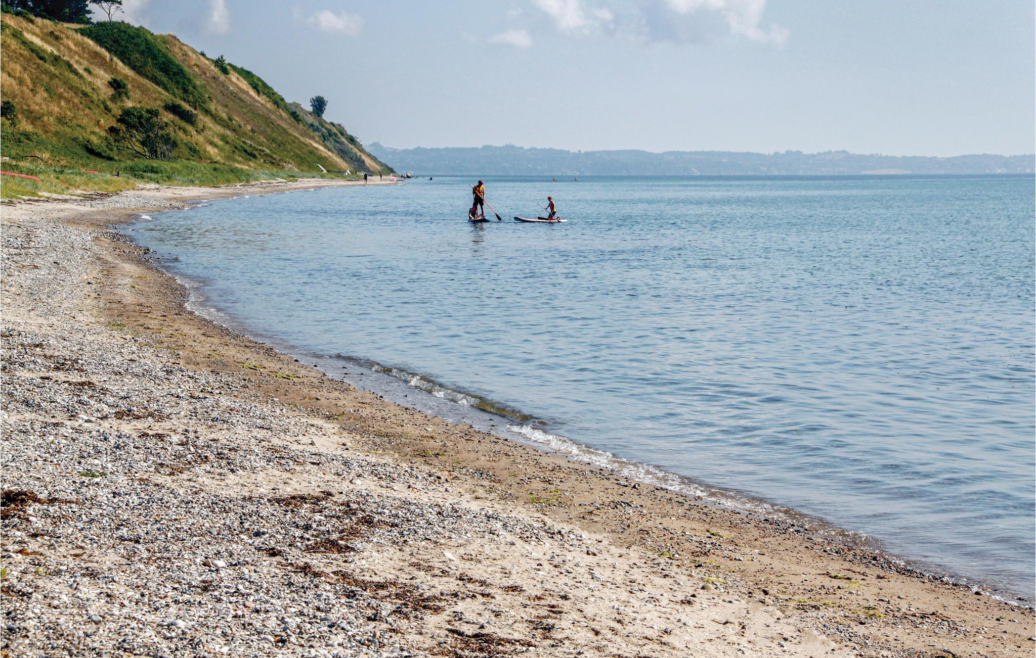 Das Haus ist schön eingerichtet und liegt friedlich. Sie wohnen am Ende eines ruhigen Ferienhausweges, der für die Durchfahrt gesperrt ist. Sie blicken vom Haus auf Felder und die Bucht von Aarhus und Sie wohnen im Nationalpark Mols Bjerge. Im Erlebniscenter Karpenhøj können Sie sich über die Region informieren. Mols Bjerge ist mit markierten Wander- und Radwegen sehr familienfreundlich. Zehn Minuten Fahrt sind es bis zum kinderfreundlichen Strand in der Bucht Begtrup Vig. Surf-Anhänger finden hier ebenso gute Bedingungen. Ebeltoft liegt 15 Autominuten entfernt.