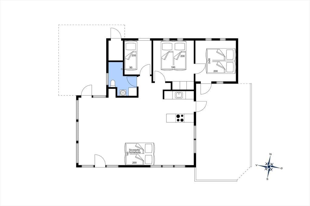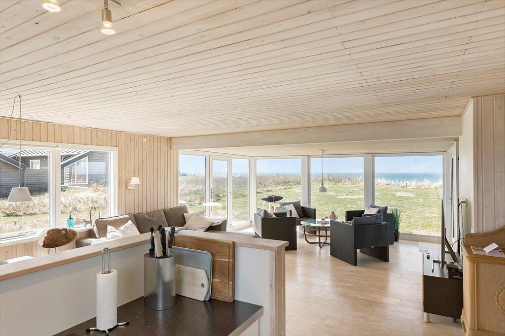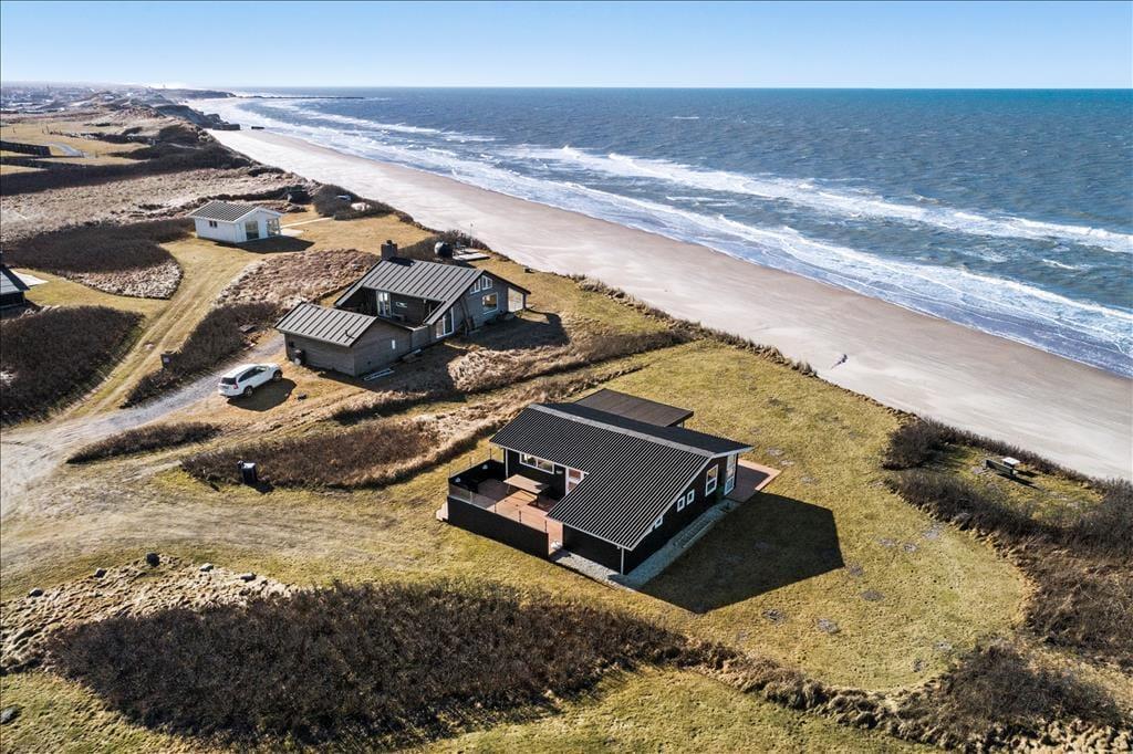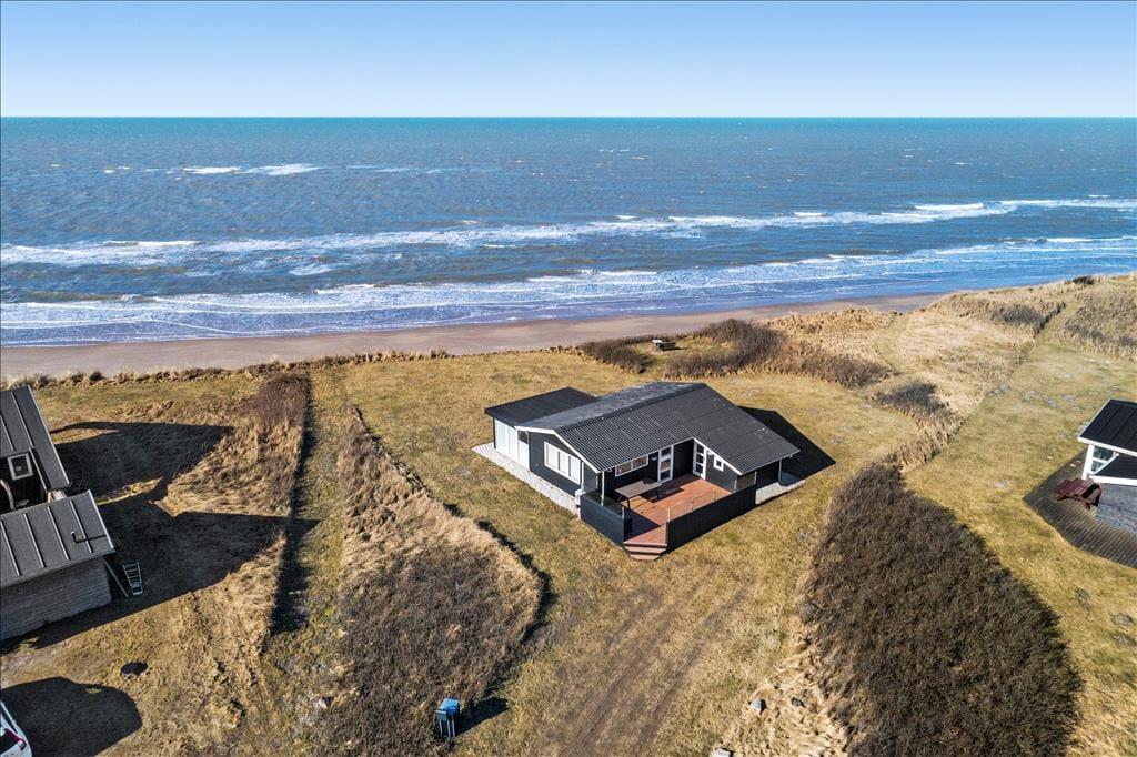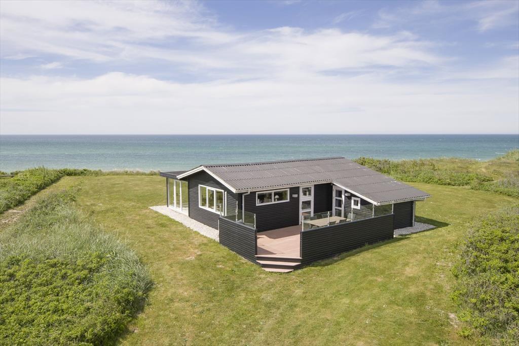 Es ist kaum möglich, näher am Strand zu wohnen, denn nur eine Steilküste trennt das Ferienhausgrundstück vom Strand. Daher habt ihr die einzigartige Möglichkeit, den Anblick der blauen Wellen der Nordsee zu genießen, während ihr euch drinnen gemütlich macht – und architektonisch wurde natürlich auf den Meerblick Rücksicht genommen, da das Wohnzimmer des Ferienhauses mit großen Fenstern von Boden bis Decke ausgestattet ist. Wenn ihr euch vom wunderschönen Ausblick losreißen könnt, gibt es einen Flachbildschirm mit Apple TV im Wohnzimmer, und falls ihr gerne kocht, ist es sehr angenehm, sich um das Essen in der offenen Küche zu kümmern. Ein Badezimmer gehört ebenfalls zur Raumaufteilung, ebenso wie drei Schlafzimmer.