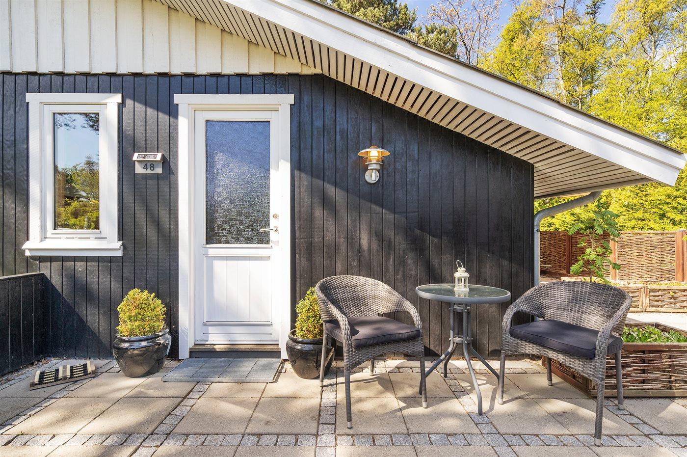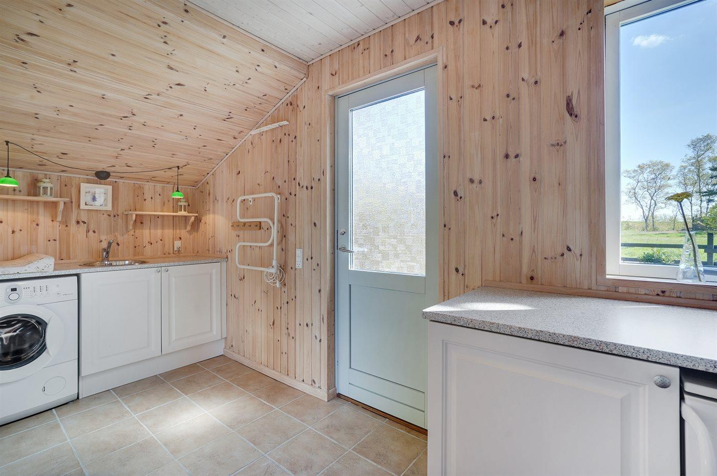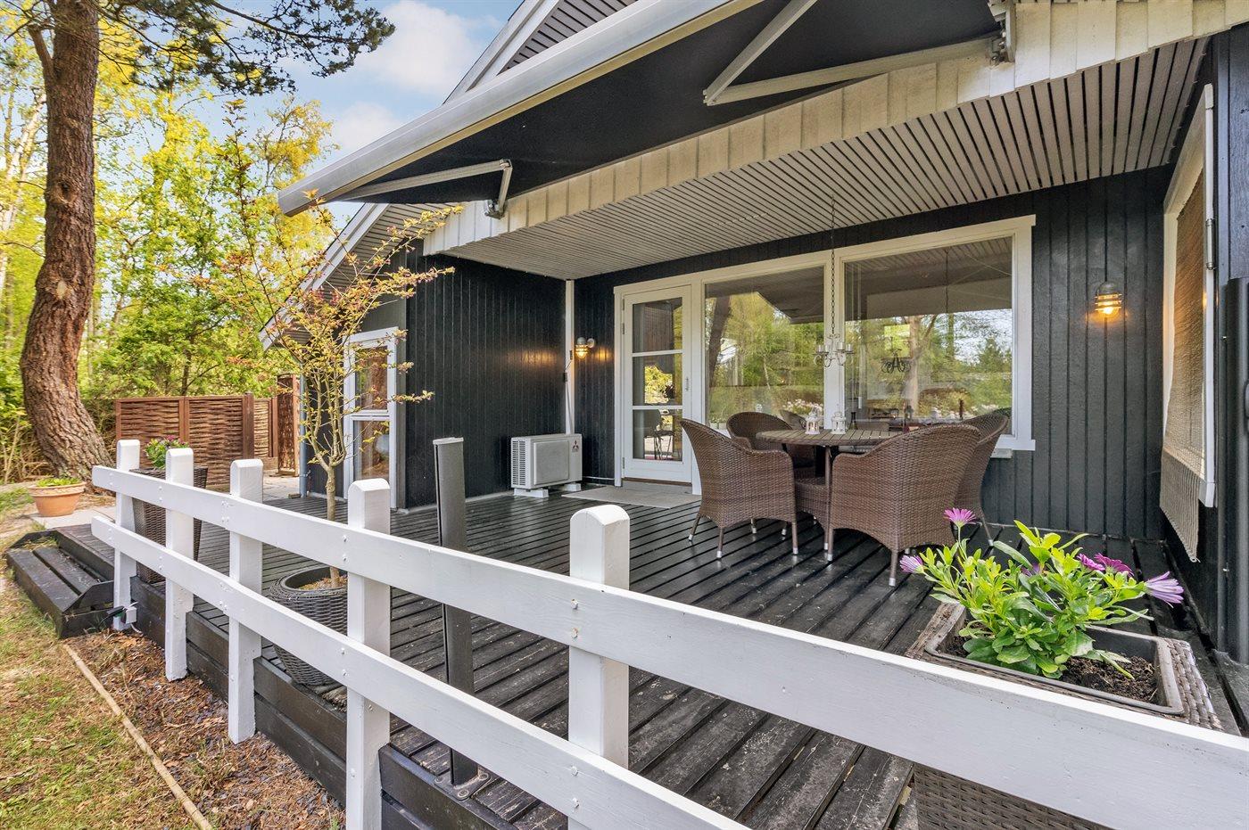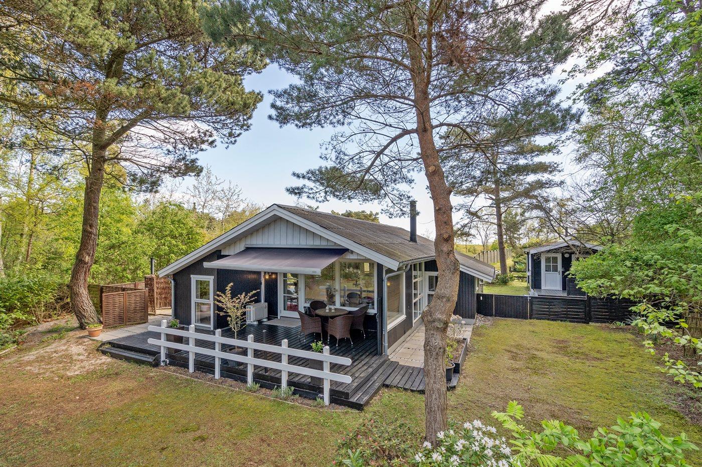 The holiday home is situated on a 982 m² garden site. The site is fenced in. Situated 75 m from the sea. Nearest shop is 4500 m away. You will find a golf course in a distance of 10000 m. A 50 m² terrace belong to the holiday home. Furthermore the house has a 12 m² covered terrace. Parking place by the holiday home.