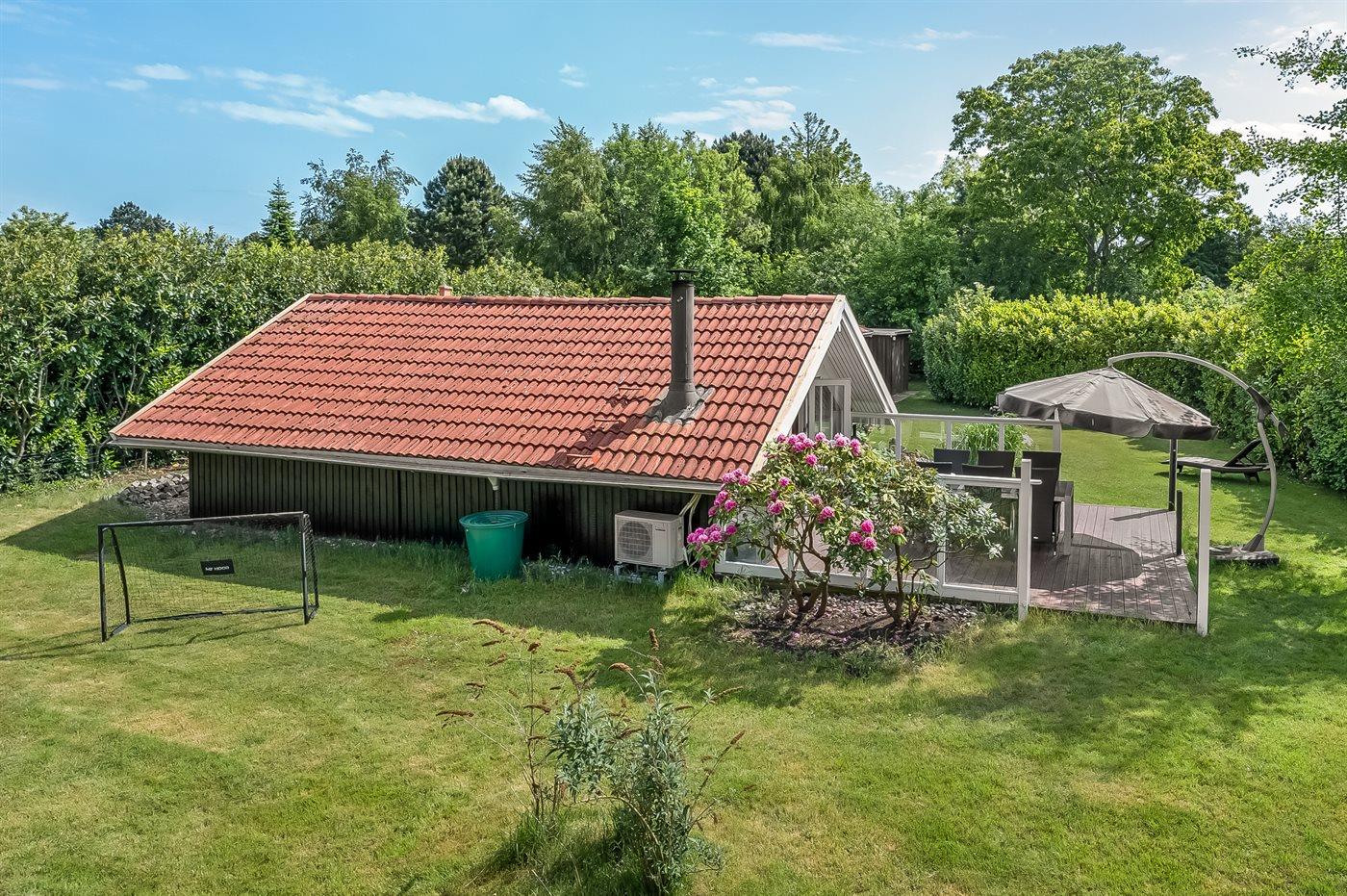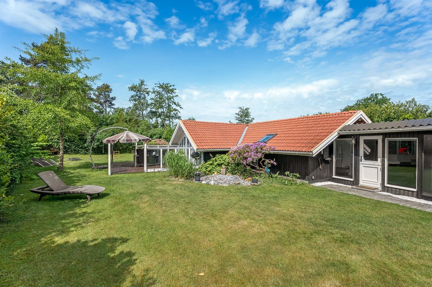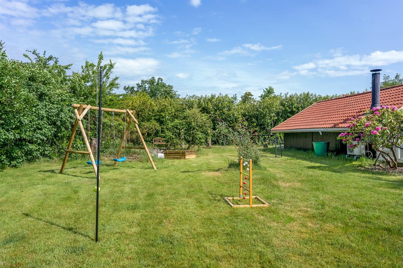 The holiday home is situated on a 1100 m² natural site. The site is fenced in. Situated 400 m from the sea. Nearest shop is 4000 m away. You will find a golf course in a distance of 16000 m. A terrace belong to the holiday home. Furthermore the house has a covered terrace. Equally, you have access to a sunroom. Swing. Sandbox. Trampoline. Football goal.Fire place. Two grills are available (one for a gas and one for coal). Parking place by the holiday home.
