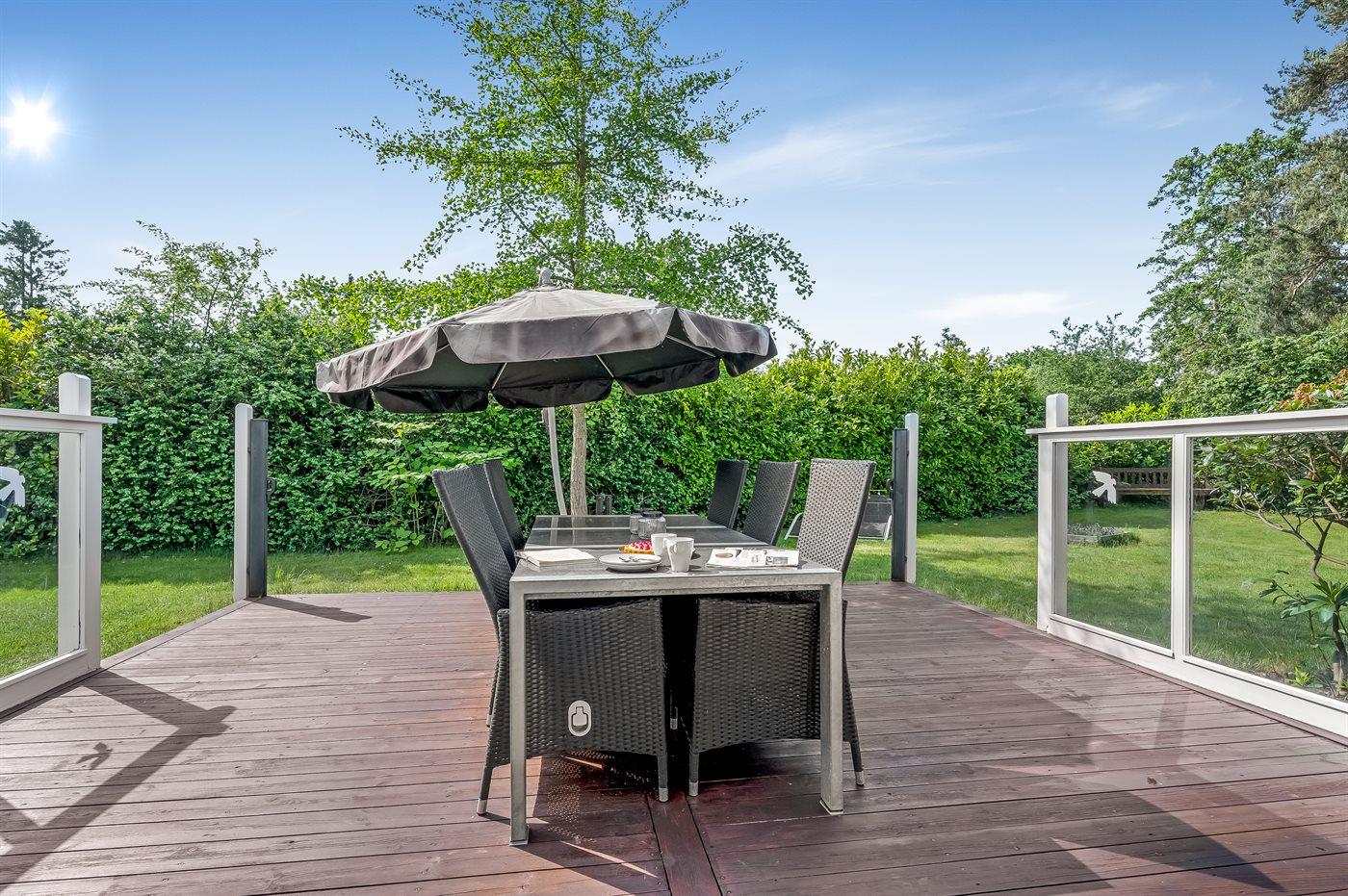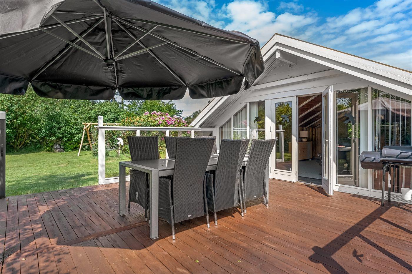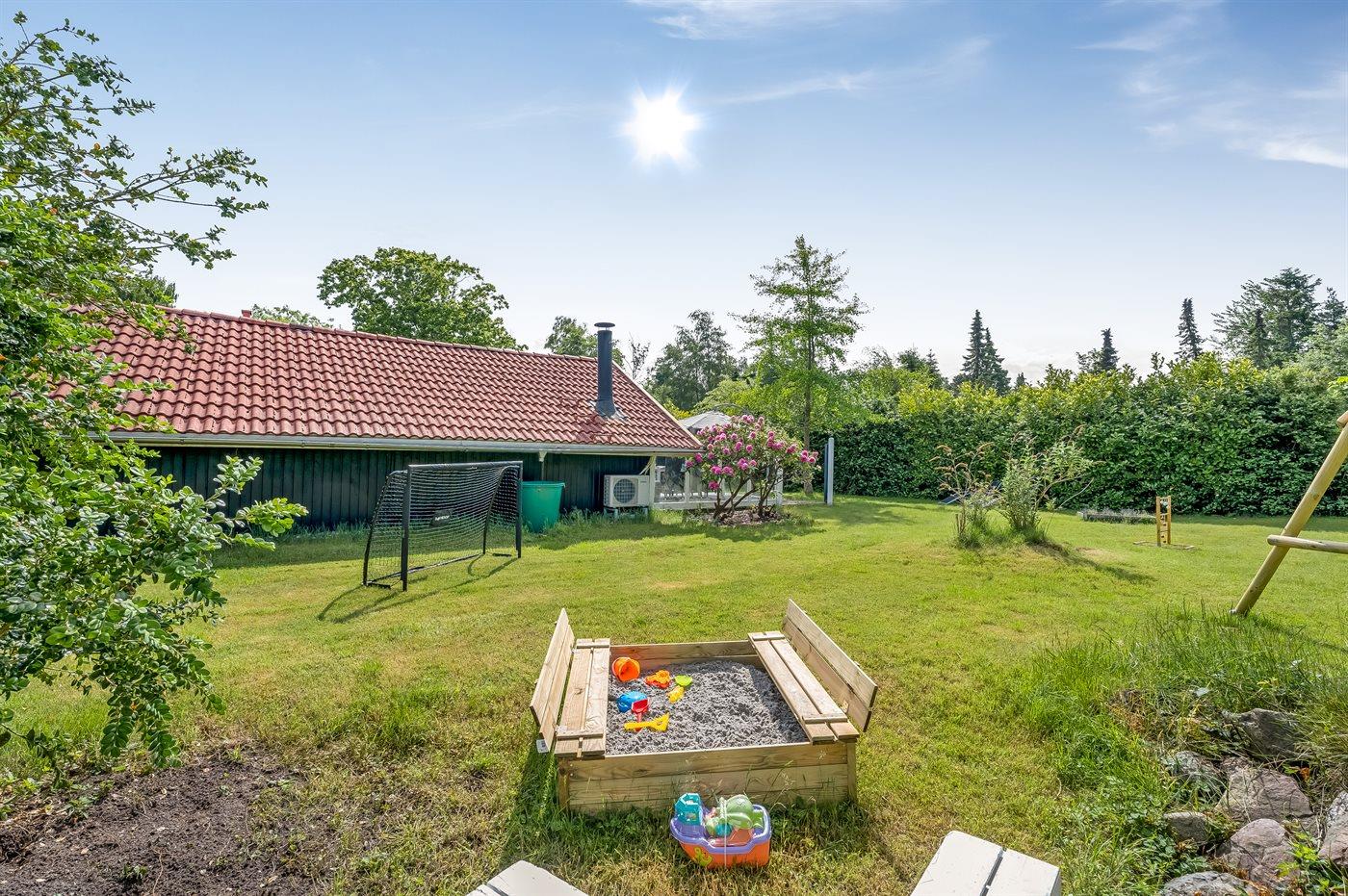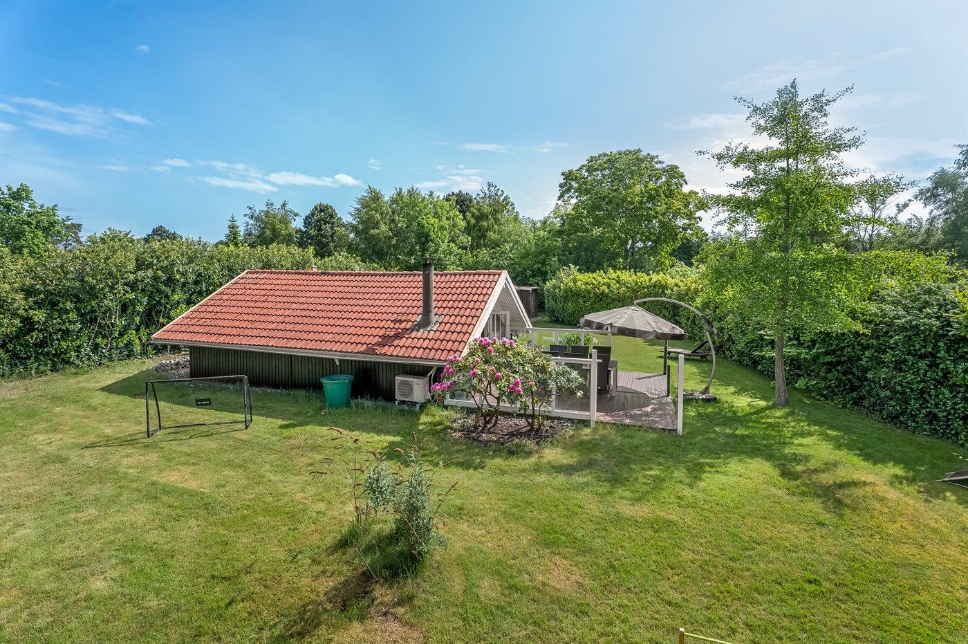 The holiday home is situated on a 1100 m² natural site. The site is fenced in. Situated 400 m from the sea. Nearest shop is 4000 m away. You will find a golf course in a distance of 16000 m. A terrace belong to the holiday home. Furthermore the house has a covered terrace. Equally, you have access to a sunroom. Swing. Sandbox. Trampoline. Football goal.Fire place. Two grills are available (one for a gas and one for coal). Parking place by the holiday home.