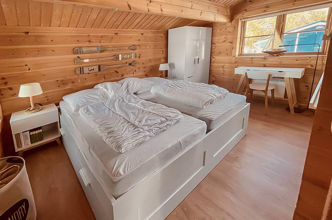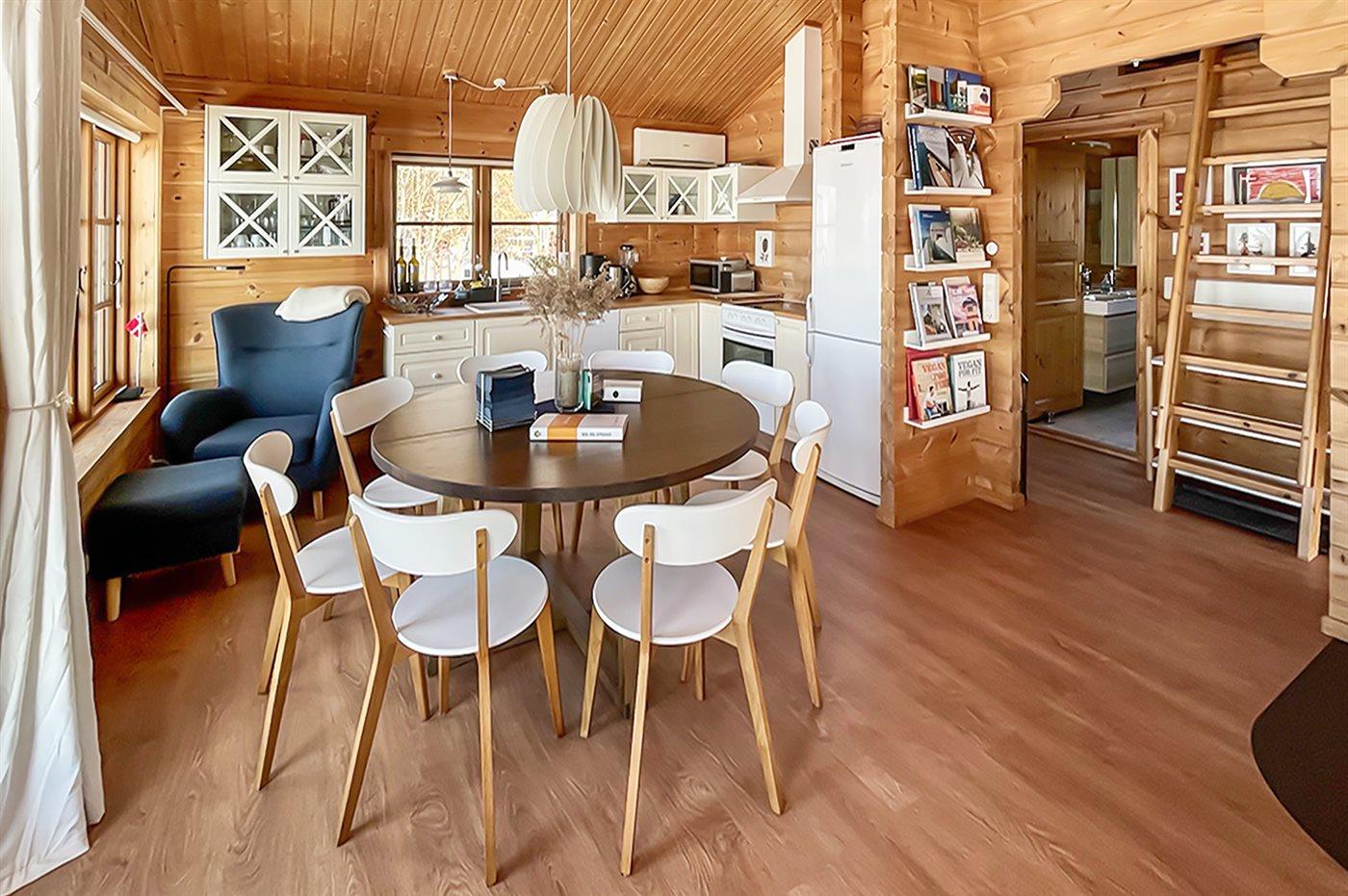 All together there are 2 bedrooms. The beds are divided on: 4 sleeping places in double beds. 2 sleeping places on mattresses. 2 of these sleeping accommmodations are located on the bed-loft of the house.