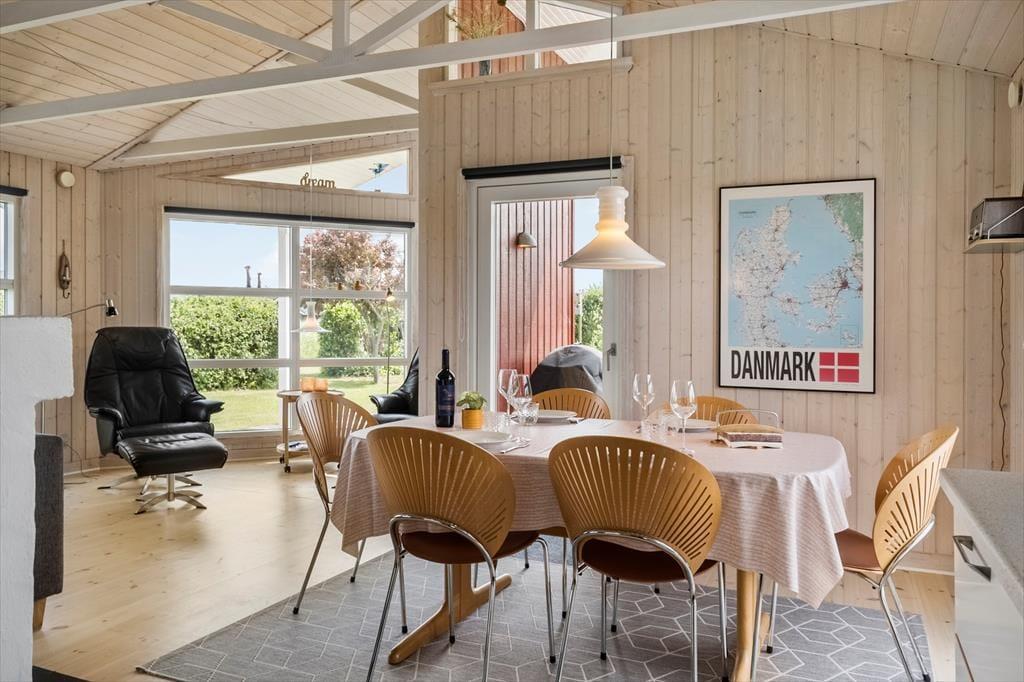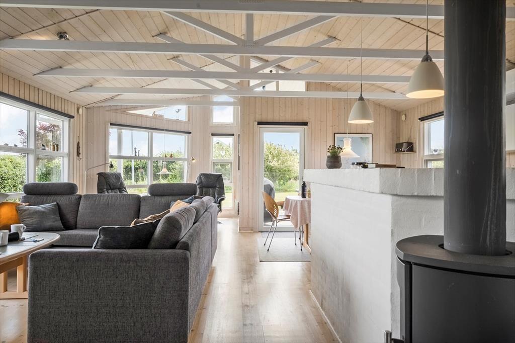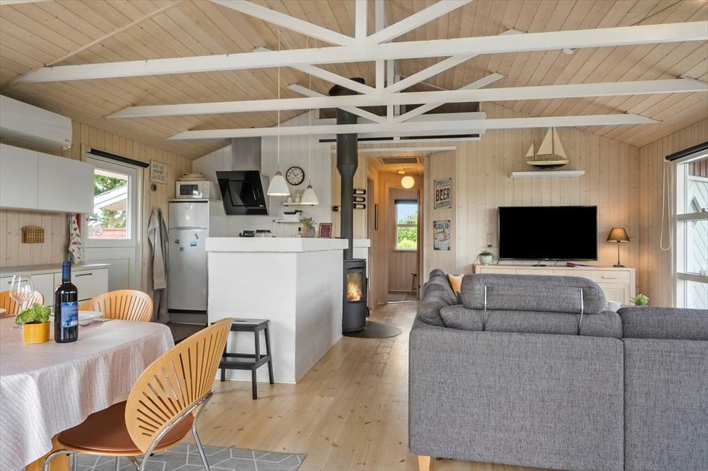 Sobald du das Ferienhaus in der Porsevej 115 betrittst, breitet sich eine entspannte, heimelige Atmosphäre aus. Hier wurde mitgedacht – dein Urlaub soll sowohl gemeinsame Erlebnisse als auch stille Momente bieten. Besonders das Wohnzimmer mit Kaminofen lädt genau dazu ein. Mach es dir auf dem Sofa mit einem guten Buch bequem, spüre die wohltuende Wärme des Feuers oder versammle die ganze Familie zu einem Spieleabend, während ihr die Abenteuer des Tages Revue passieren lasst. Das Wohnzimmer ist offen mit der Küche verbunden, sodass ihr gemeinsam kochen und dabei Zeit miteinander verbringen könnt. Auch für die Kinder ist genug Platz zum Spielen und Dabeisein. Die Einrichtung des Hauses ist schlicht, gemütlich und so einladend, dass du dich sofort wohlfühlen und entspannen kannst.
