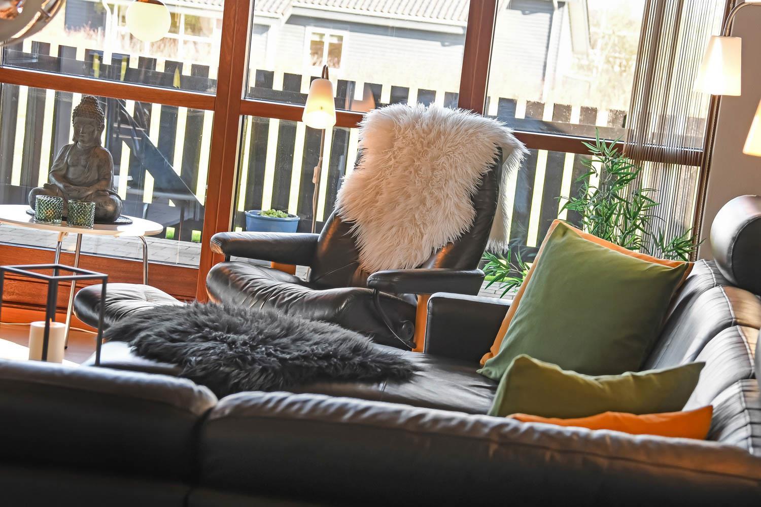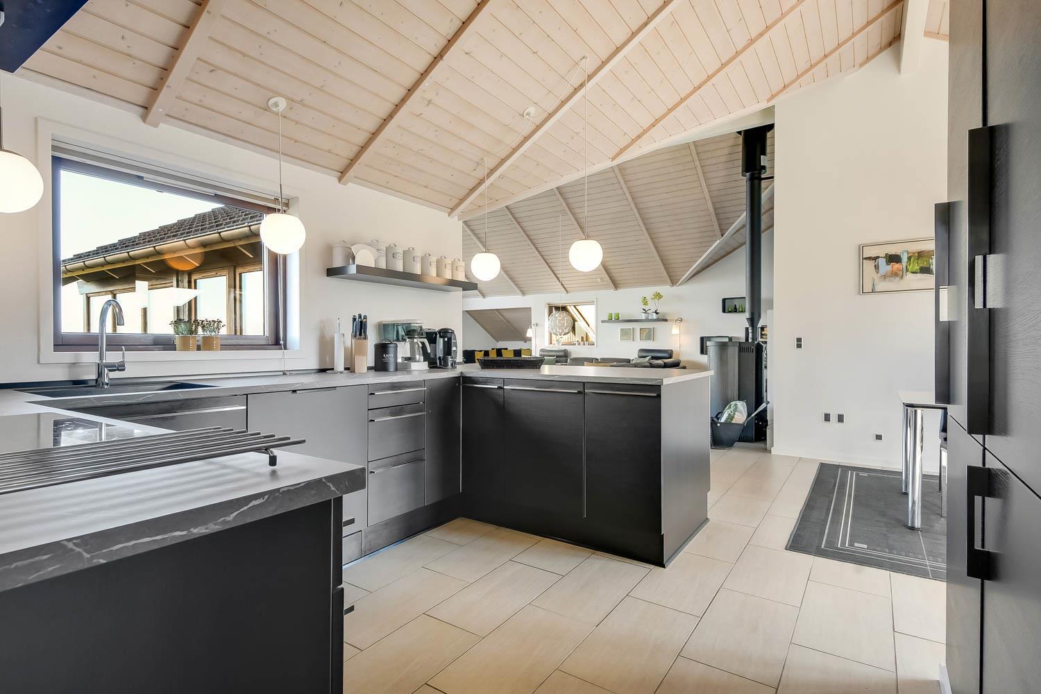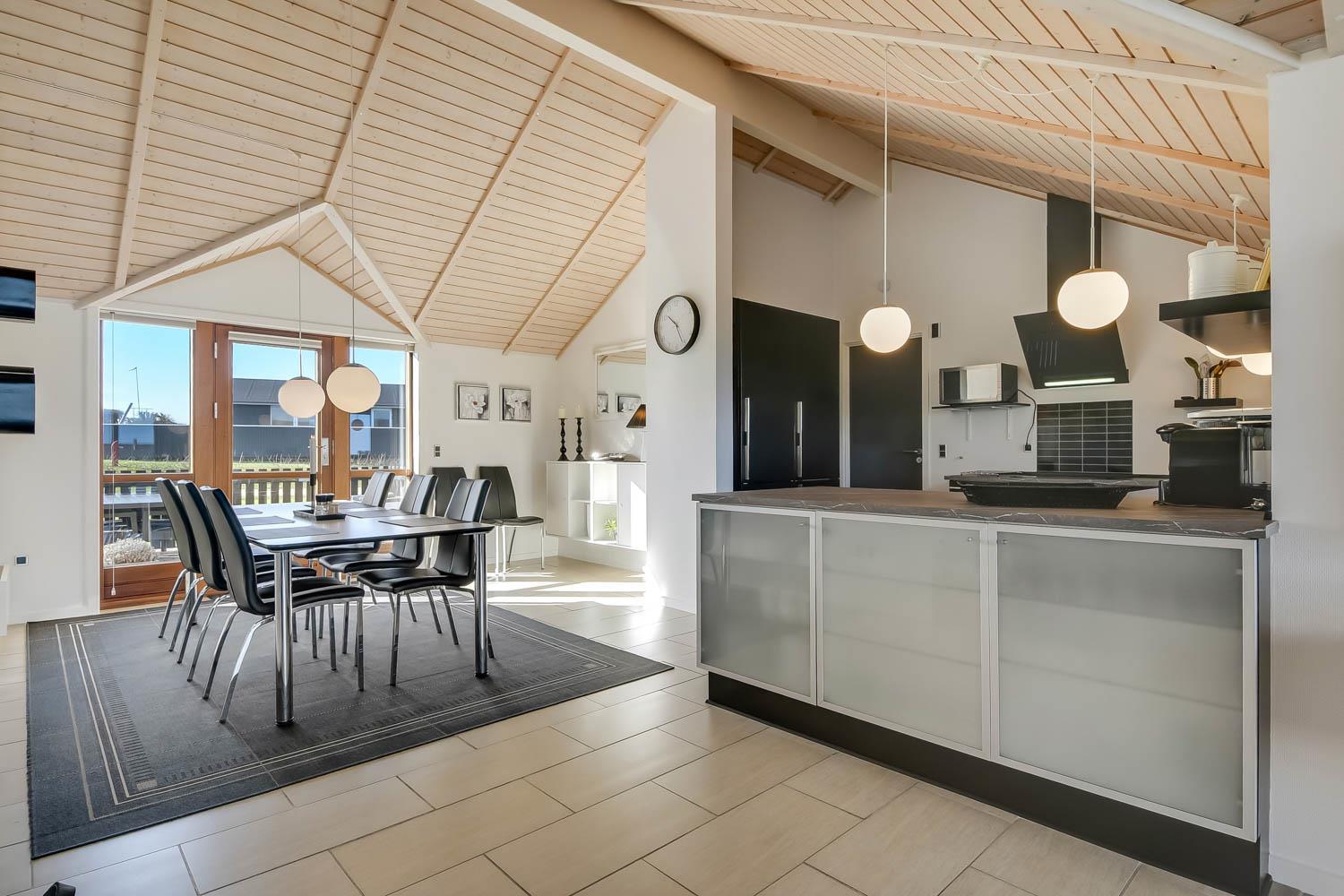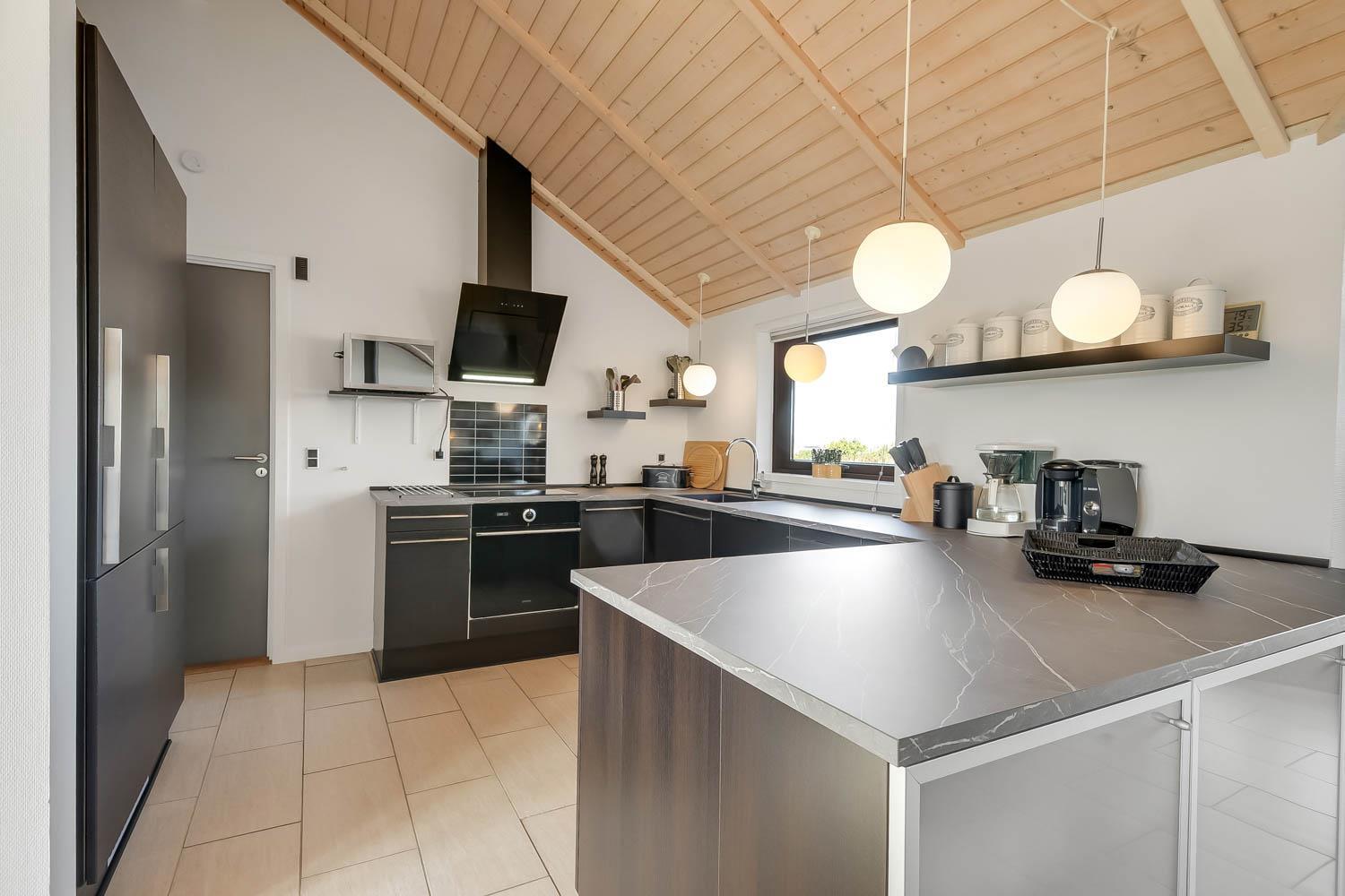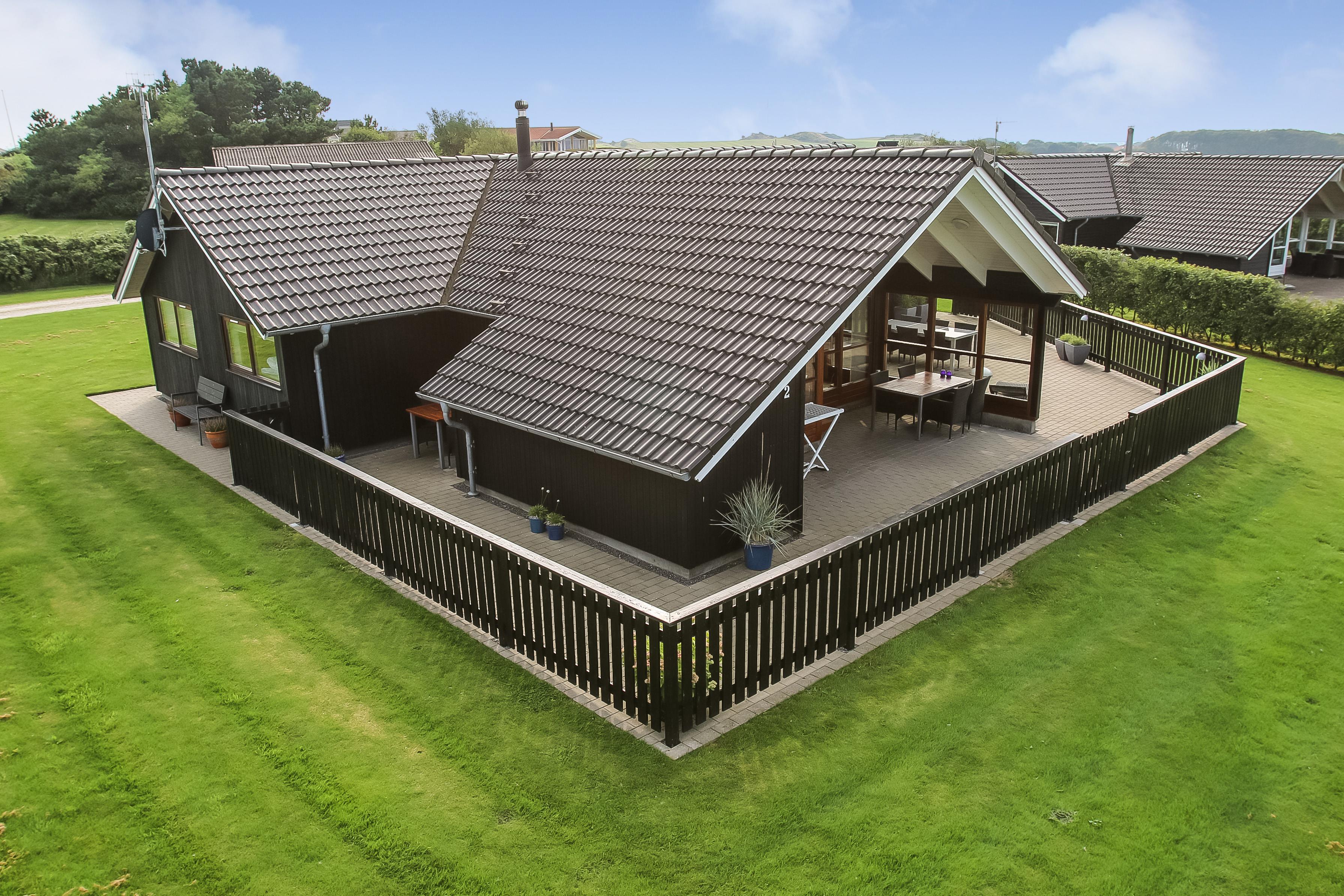 Dieses überaus großzügige und gepflegte Ferienhaus hat 3 Schlafzimmer mit Doppelbetten (DB) und Einzelbetten (EB): 1 DB + 1 DB + 2 EB. Im Wohnzimmer gibt es einen Alkoven (Bettnische) mit 2 weiteren Schlafplätzen. Shuppen mit Gefriertruhe der auch abgesholssen werden kann. Offene Küche mit Wohn- und Essbereich, geschmackvoll eingerichtet mit hochwertigen Möbeln, Holzofen nur für Holzpellets es gibt immer Holzpellets vorhanden (Verbrauch von Holzpellets sind im Preis inklusive, Flachbildschirm-TV mit dänischem und deutschem Programm, DVD-Player sowie Stereoanlage mit CD-Player. Schöner Essbereich mit Zugang zur Westterrasse. Die Küche ist in Schwarz gehalten und hat alle Haushaltsgroßgeräte: Indutionsherd, Kühlschrank, Gefrierschrank, Geschirrspüler und Mikrowelle. Großes, schickes Badezimmer mit Dusche, Toilette, Waschbecken, Fußbodenheizung, Whirlpool, Sauna, Waschmaschine und Trockner. Zusätzliches Badezimmer mit Dusche, Toilette, Waschbecken und Fußbodenheizung. Fliesenböden mit Fußbodenheizung in fast allen Wohnbereichen, Schlafzimmer mit Holzboden. Kinderbett und Hochstuhl für die Kinder. 1 Haustier ist erlaubt. Wenn Sie ein Elektroauto oder einen Plug-in-Hybrid haben, verfügt das Haus über eine Ladegerät, Type 2 die bis zu 11 kWh aufladen kann. Nichtraucher-haus