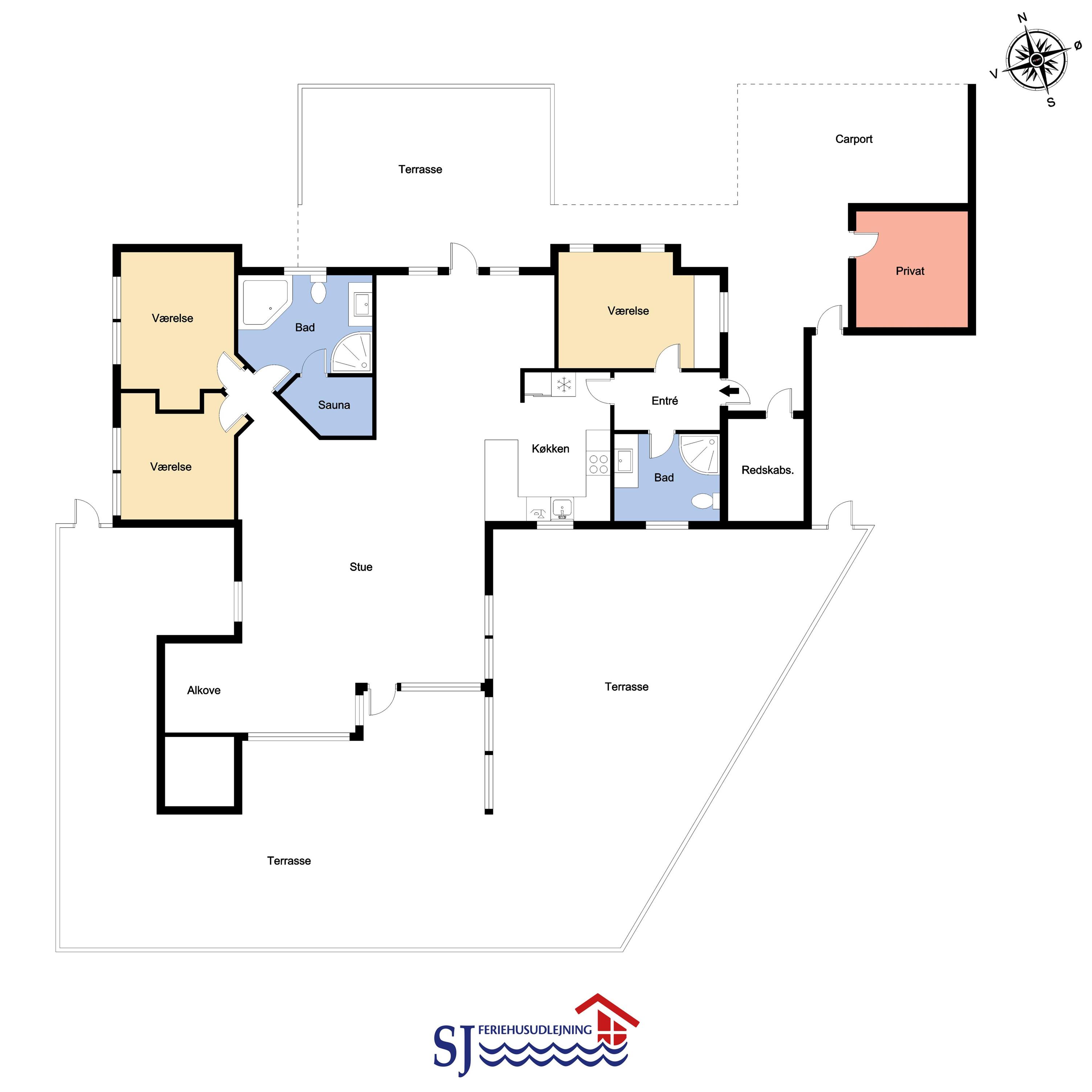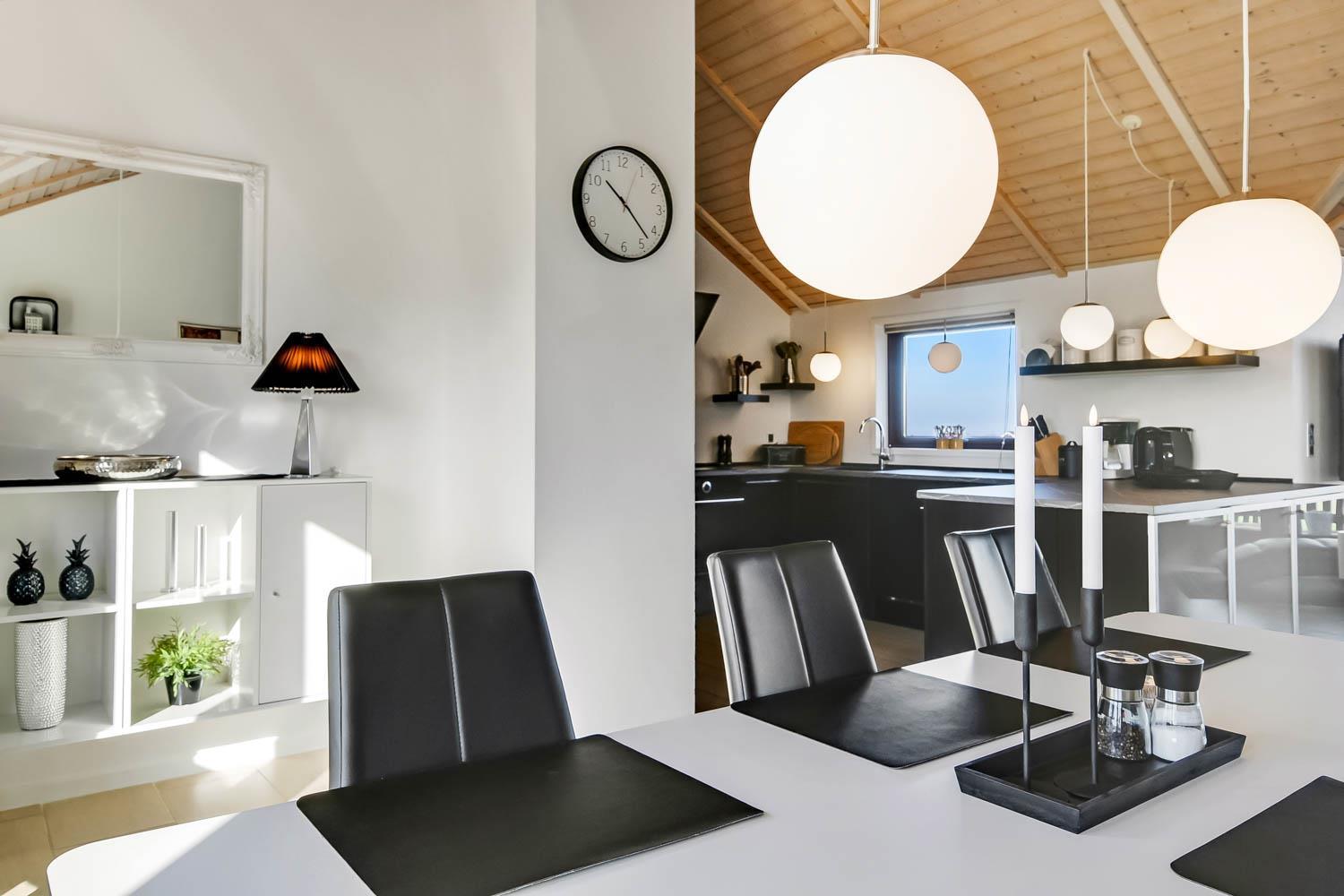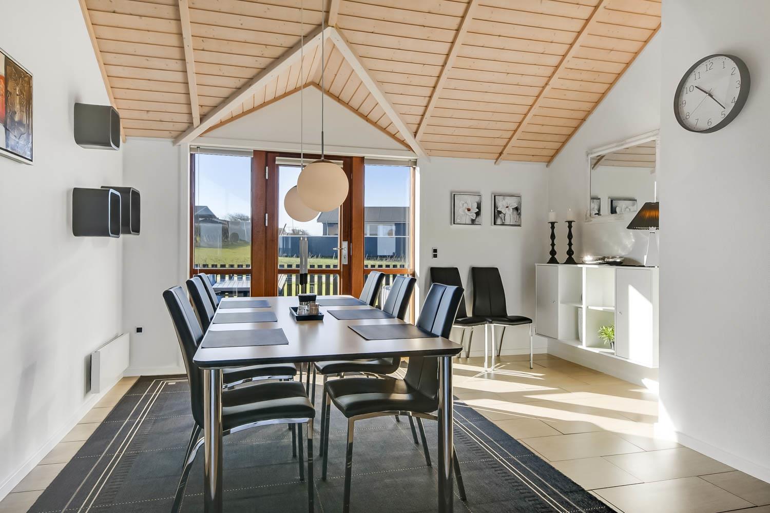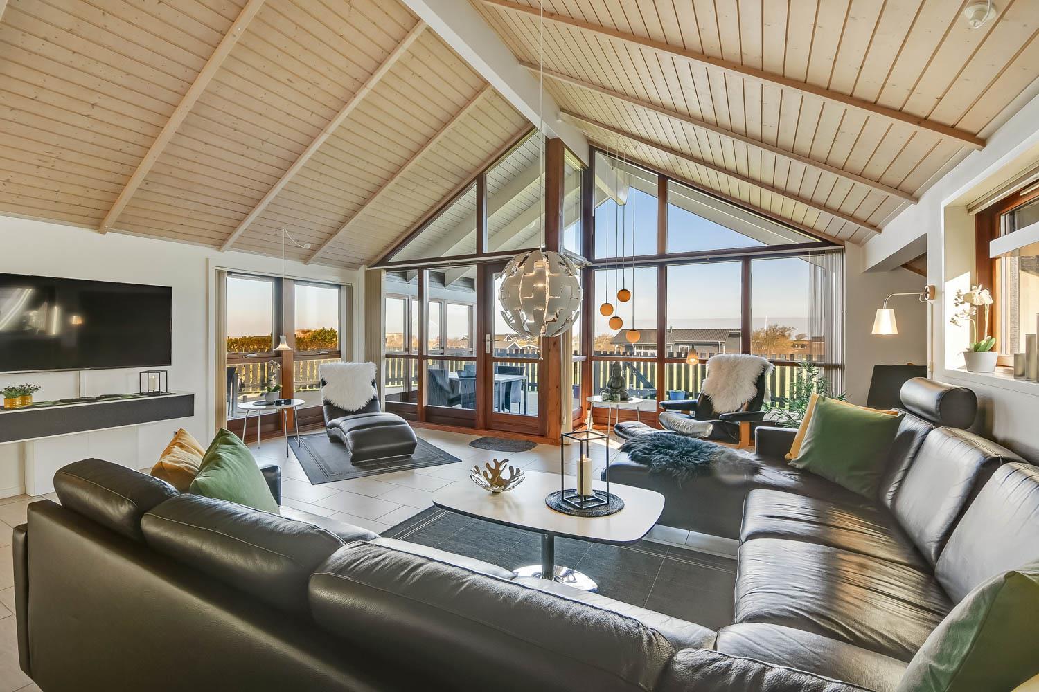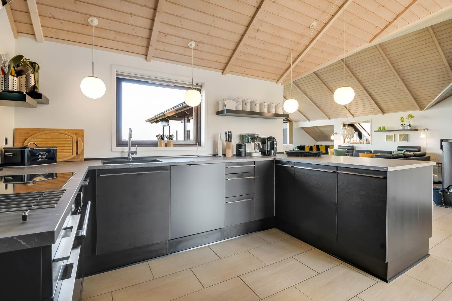 Dieses überaus großzügige und gepflegte Ferienhaus hat 3 Schlafzimmer mit Doppelbetten (DB) und Einzelbetten (EB): 1 DB + 1 DB + 2 EB. Im Wohnzimmer gibt es einen Alkoven (Bettnische) mit 2 weiteren Schlafplätzen. Shuppen mit Gefriertruhe der auch abgesholssen werden kann. Offene Küche mit Wohn- und Essbereich, geschmackvoll eingerichtet mit hochwertigen Möbeln, Holzofen nur für Holzpellets es gibt immer Holzpellets vorhanden (Verbrauch von Holzpellets sind im Preis inklusive, Flachbildschirm-TV mit dänischem und deutschem Programm, DVD-Player sowie Stereoanlage mit CD-Player. Schöner Essbereich mit Zugang zur Westterrasse. Die Küche ist in Schwarz gehalten und hat alle Haushaltsgroßgeräte: Indutionsherd, Kühlschrank, Gefrierschrank, Geschirrspüler und Mikrowelle. Großes, schickes Badezimmer mit Dusche, Toilette, Waschbecken, Fußbodenheizung, Whirlpool, Sauna, Waschmaschine und Trockner. Zusätzliches Badezimmer mit Dusche, Toilette, Waschbecken und Fußbodenheizung. Fliesenböden mit Fußbodenheizung in fast allen Wohnbereichen, Schlafzimmer mit Holzboden. Kinderbett und Hochstuhl für die Kinder. 1 Haustier ist erlaubt. Wenn Sie ein Elektroauto oder einen Plug-in-Hybrid haben, verfügt das Haus über eine Ladegerät, Type 2 die bis zu 11 kWh aufladen kann. Nichtraucher-haus