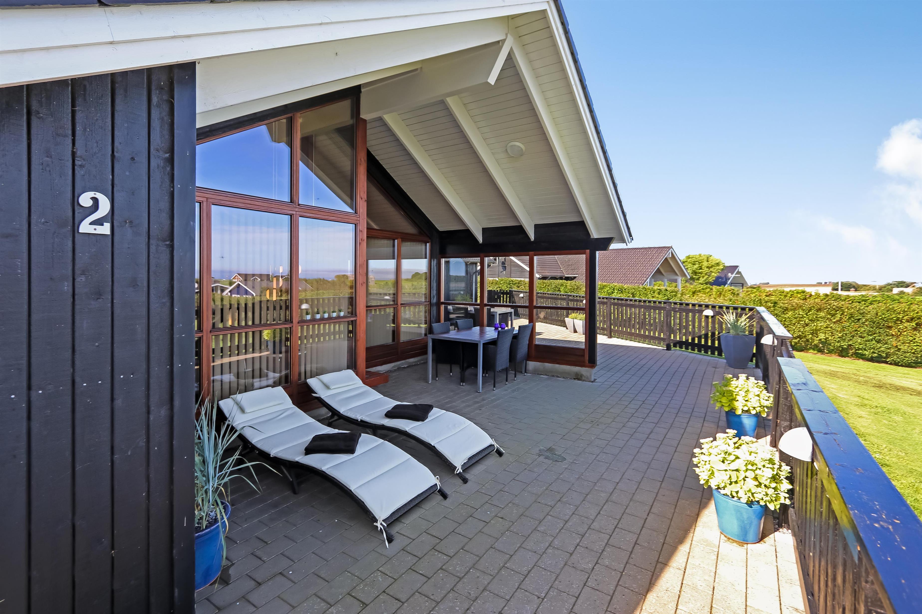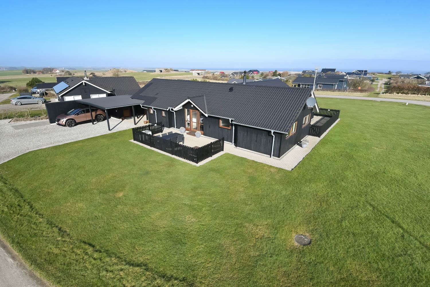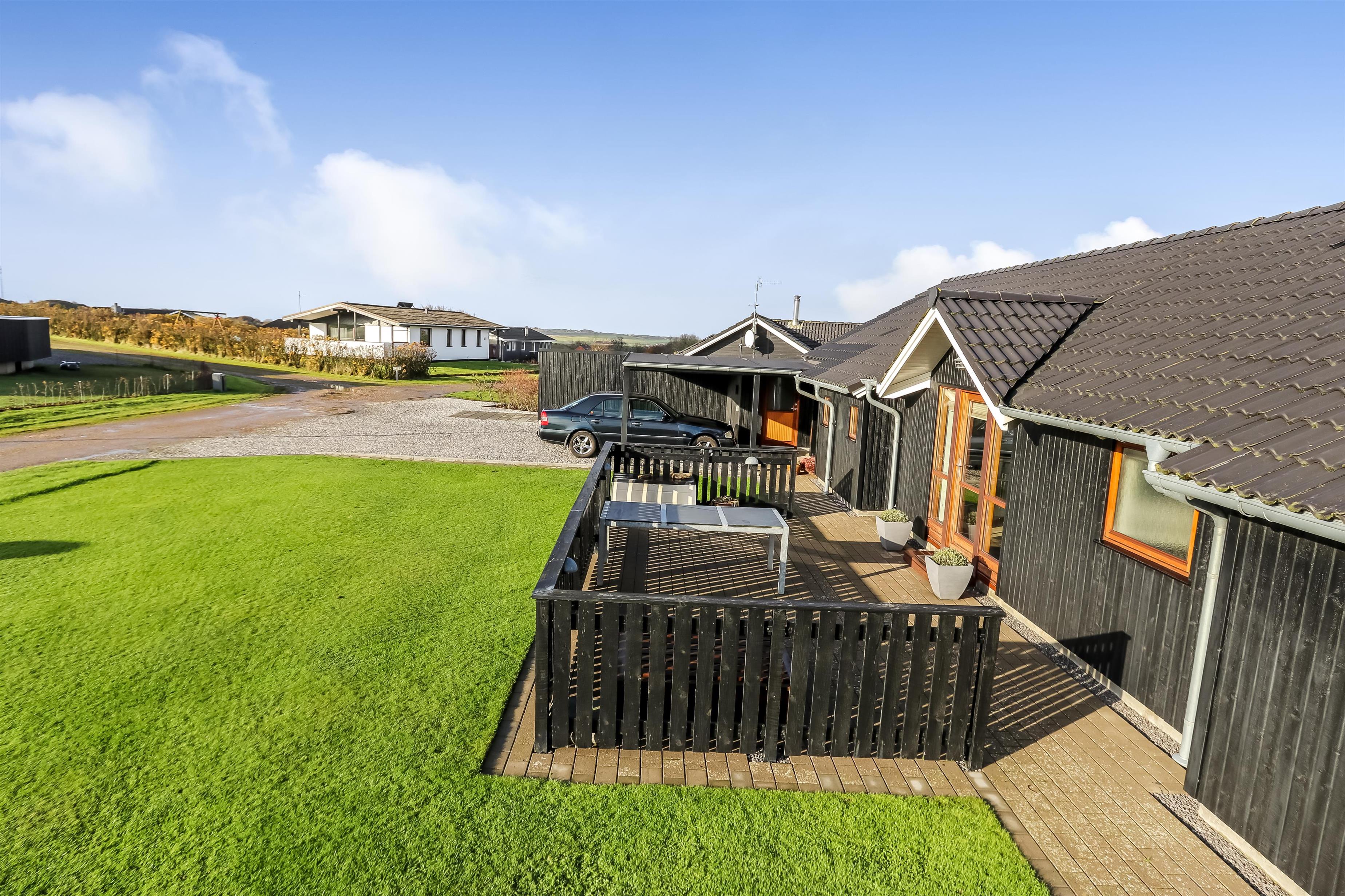 Das Ferienhaus liegt auf einem ca. 1.309 m² großen Grundstück. Von der teilweise überdachten Terrasse - mit Gartenmöbeln und 4 Sonnenbetten - haben Sie einen fantastischen Panoramablick über den Limfjord sowie in Richtung Nordsee. Gasgrill. Doppelter Carport direkt am Haus, so ist der Eingang zum Haus einfach und mühelos ist. Hier findet man immer eine windgeschützte Stelle. Die Terrasse verläuft rund um das Haus und ist komplett geschlossen. Ein einmaliges Haus für das perfekte Urlaubserlebnis. Hier wurde an alles gedacht. Der Besitzer kümmert sich gut um das Haus, sodass es sich immer von der besten Seite präsentiert.