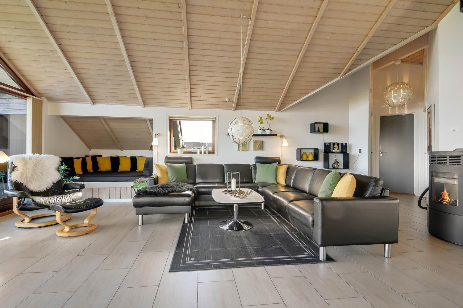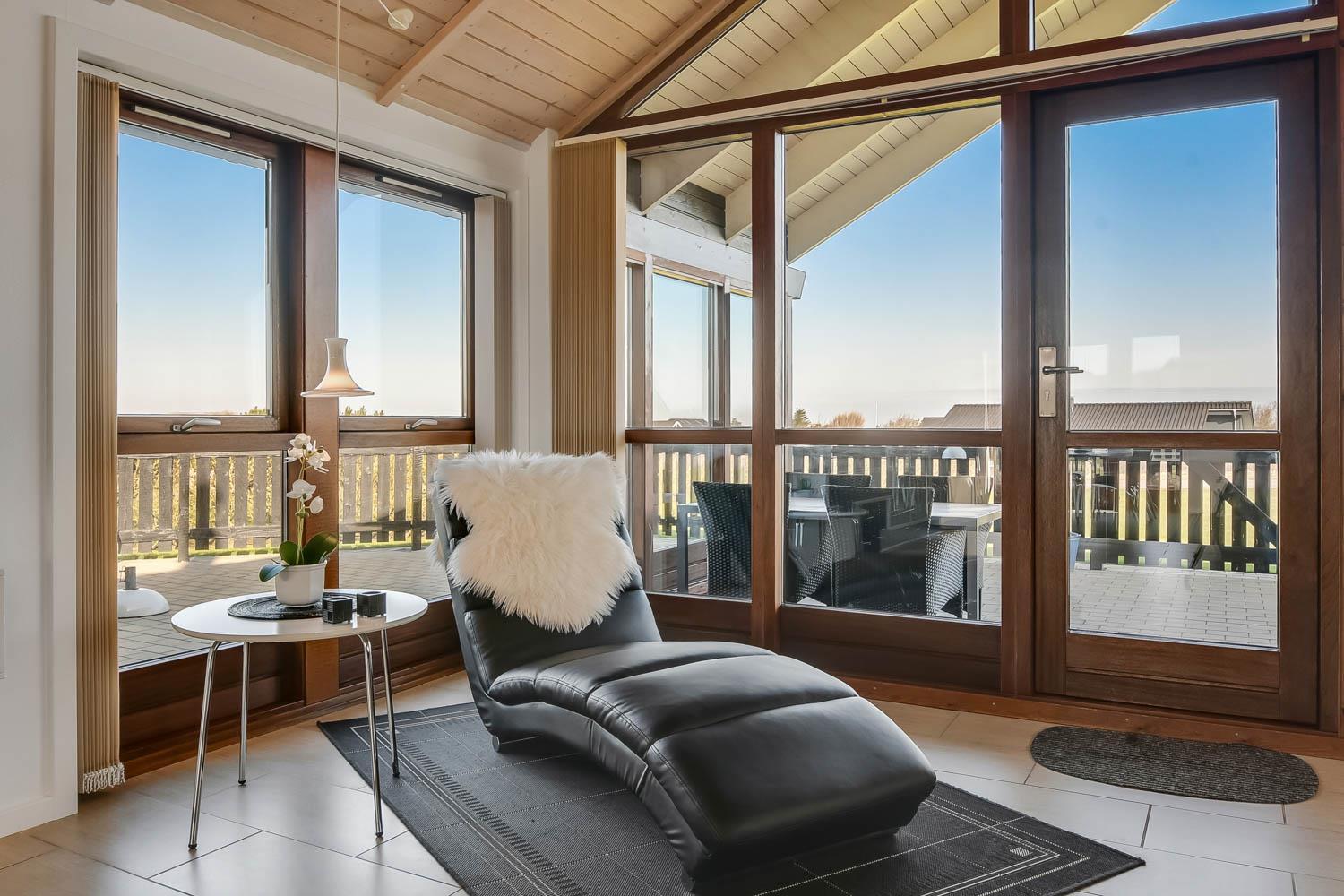 Neueres Ferienhaus aus Holz gebaut mit WLAN und fantastichem Blick über den Limfjord. Moderne und energiesparender Brennofen für Holzpellets, es gibt immer Holzpellets vorhanden. Gratisverbrauch von Holzpellets, egal zu welcher Jahreszeit. Ein sehr schönes Ferienhaus zu jeder Jahreszeit.