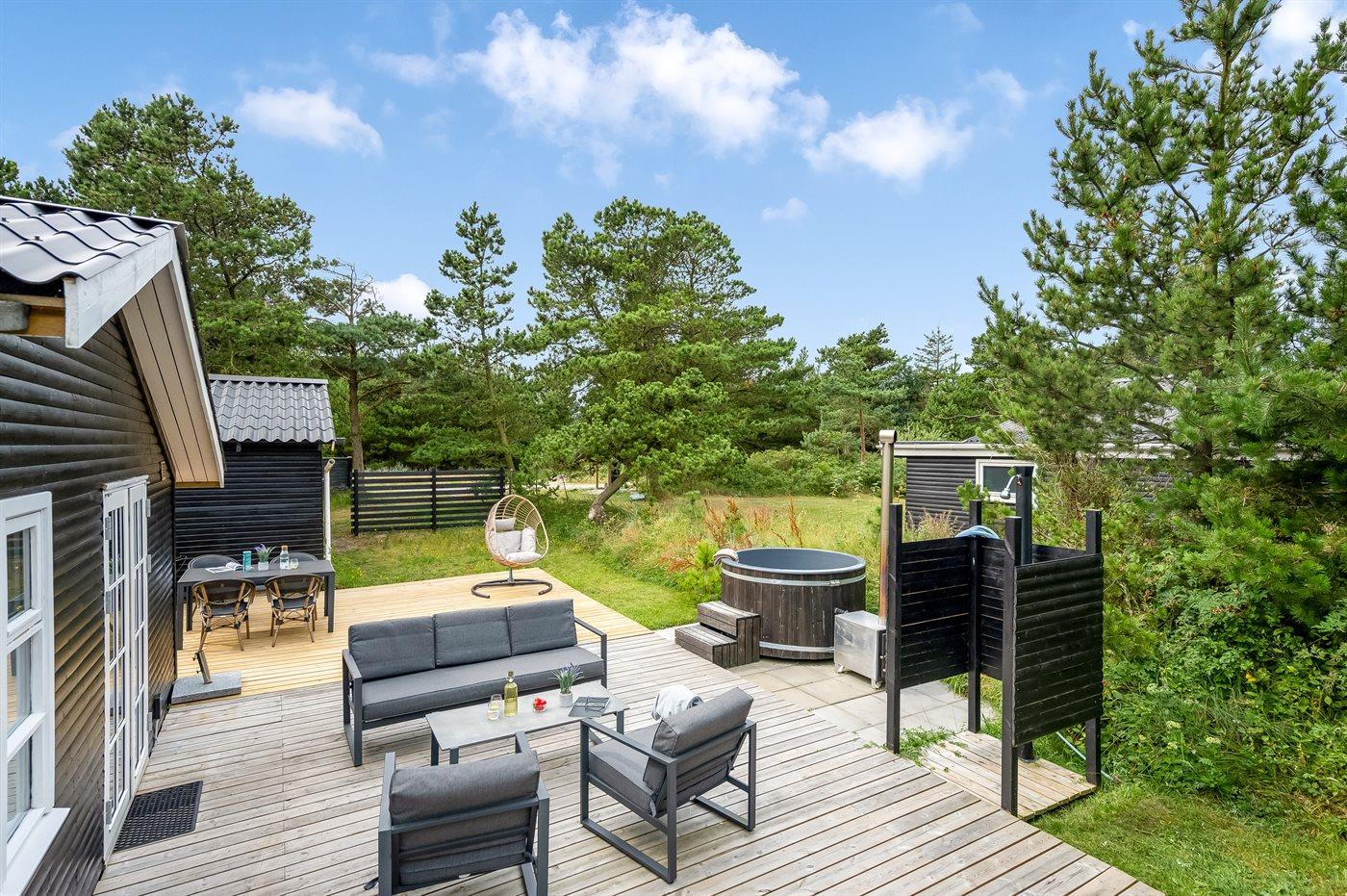 The holiday home is situated on a 737 m² natural site. Situated 700 m from the sea. Nearest shop is 3500 m away.A enclosed terrace belongs to the holiday home. Football goal. Shelter. Barbecue at your disposal. Parking place by the holiday home.