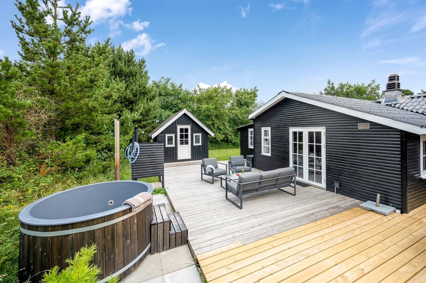 You can relax in the outdoor hot tub for 4 persons.