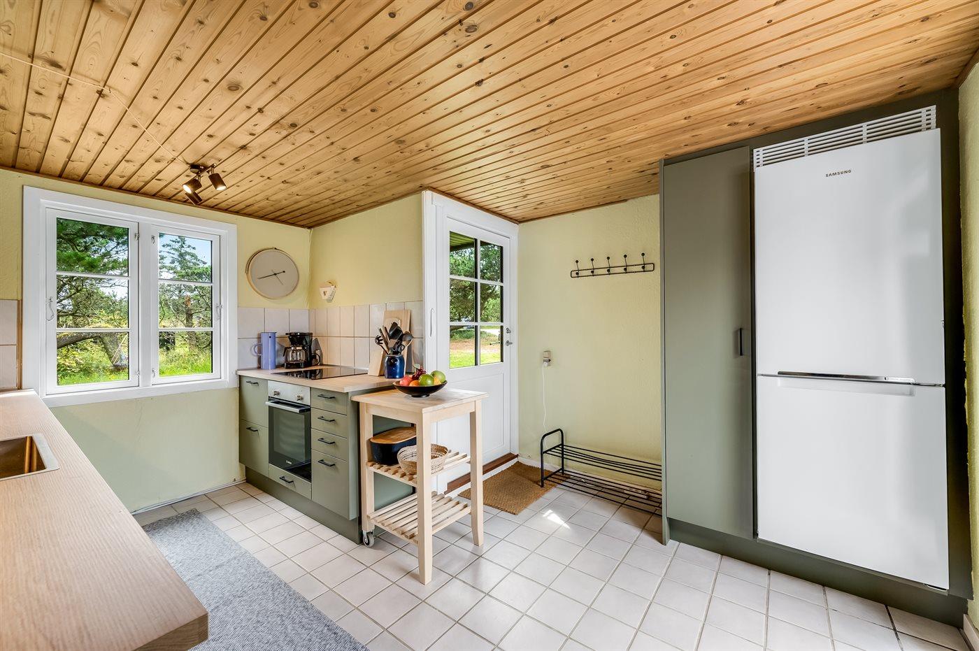 Holiday home suitable for 4 persons . 2 of the beds is only suitable for older children (4-11 years). The holiday home is 60 m² and is build in 1959. In 2022 the holiday home was renovated. No pets allowed. The holiday home has washing machine. Freezer capacity of 100 litres. Further more there is 1 wood-burning stove. For the youngest ones there is 1 high chair.