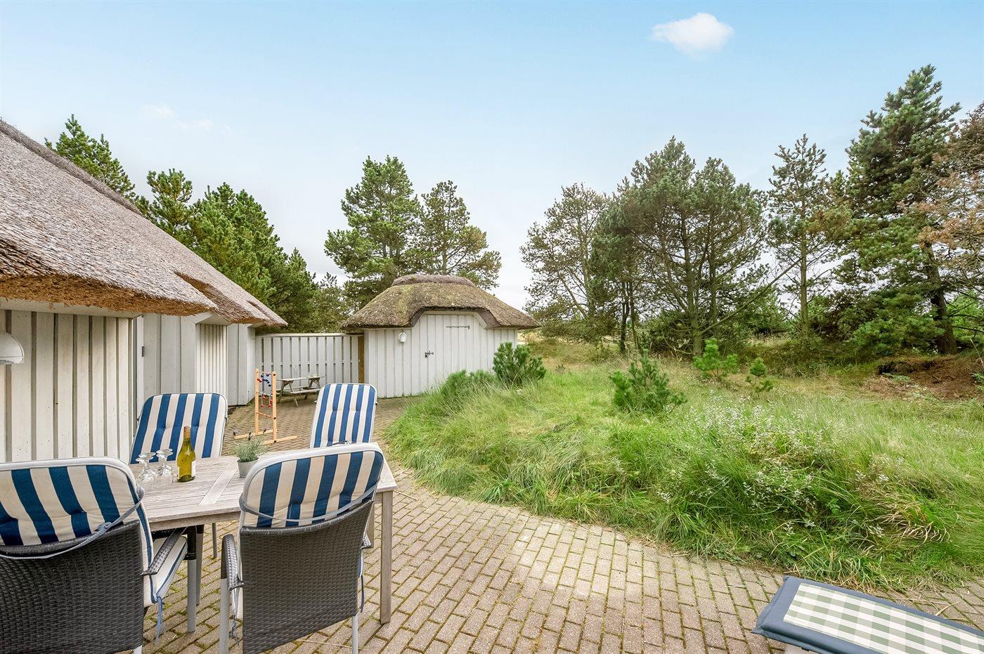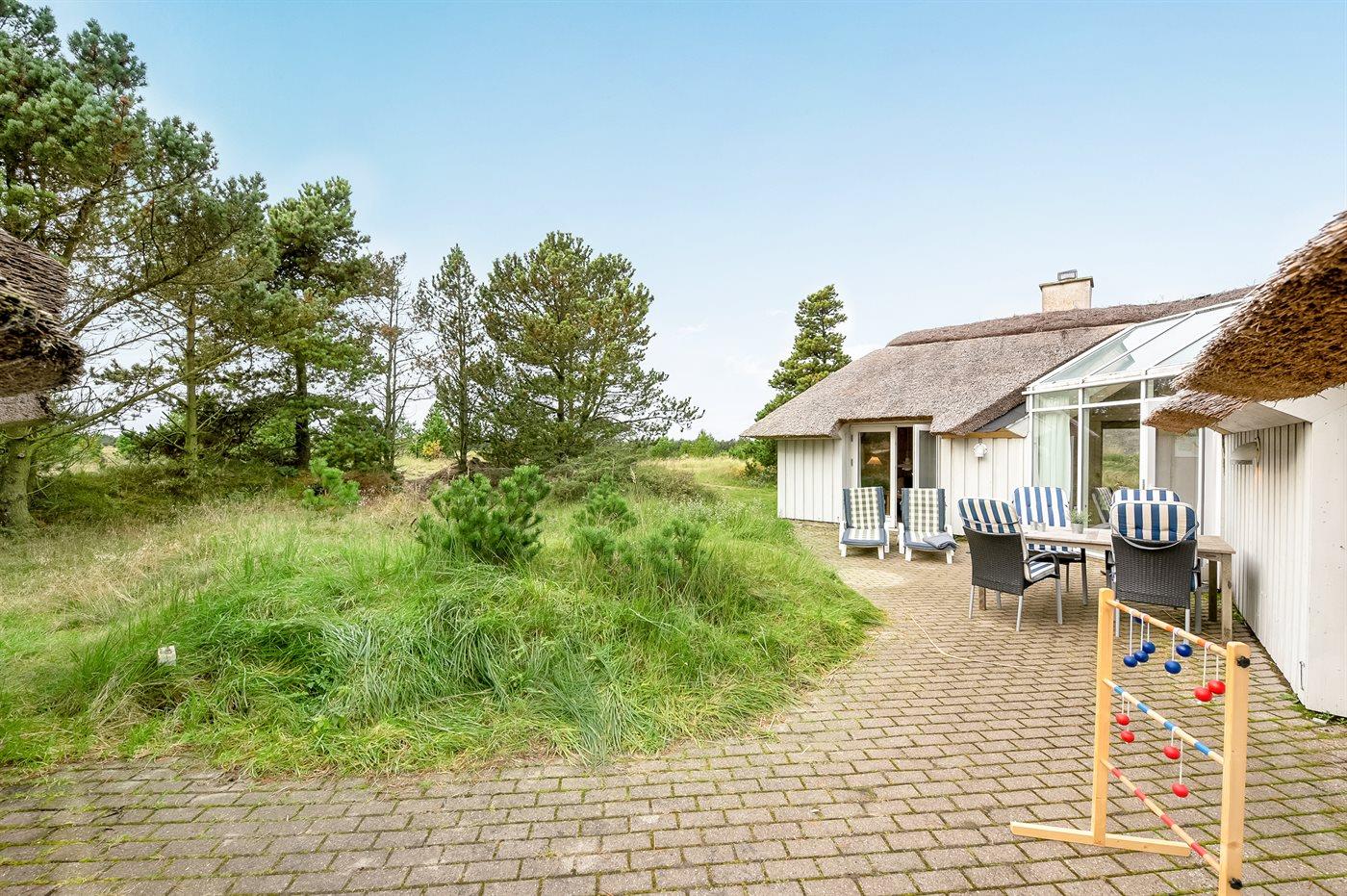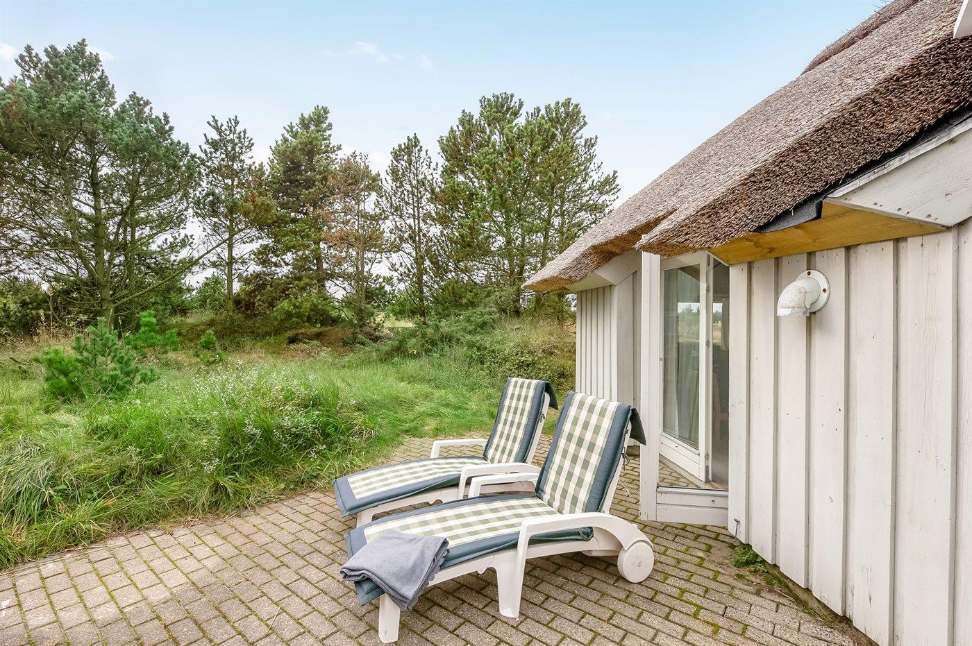 The holiday home is situated on a 2173 m² natural site. Situated 1100 m from the sea. Nearest shop is 5000 m away. A 50 m² terrace belong to the holiday home. Parking place by the holiday home.
