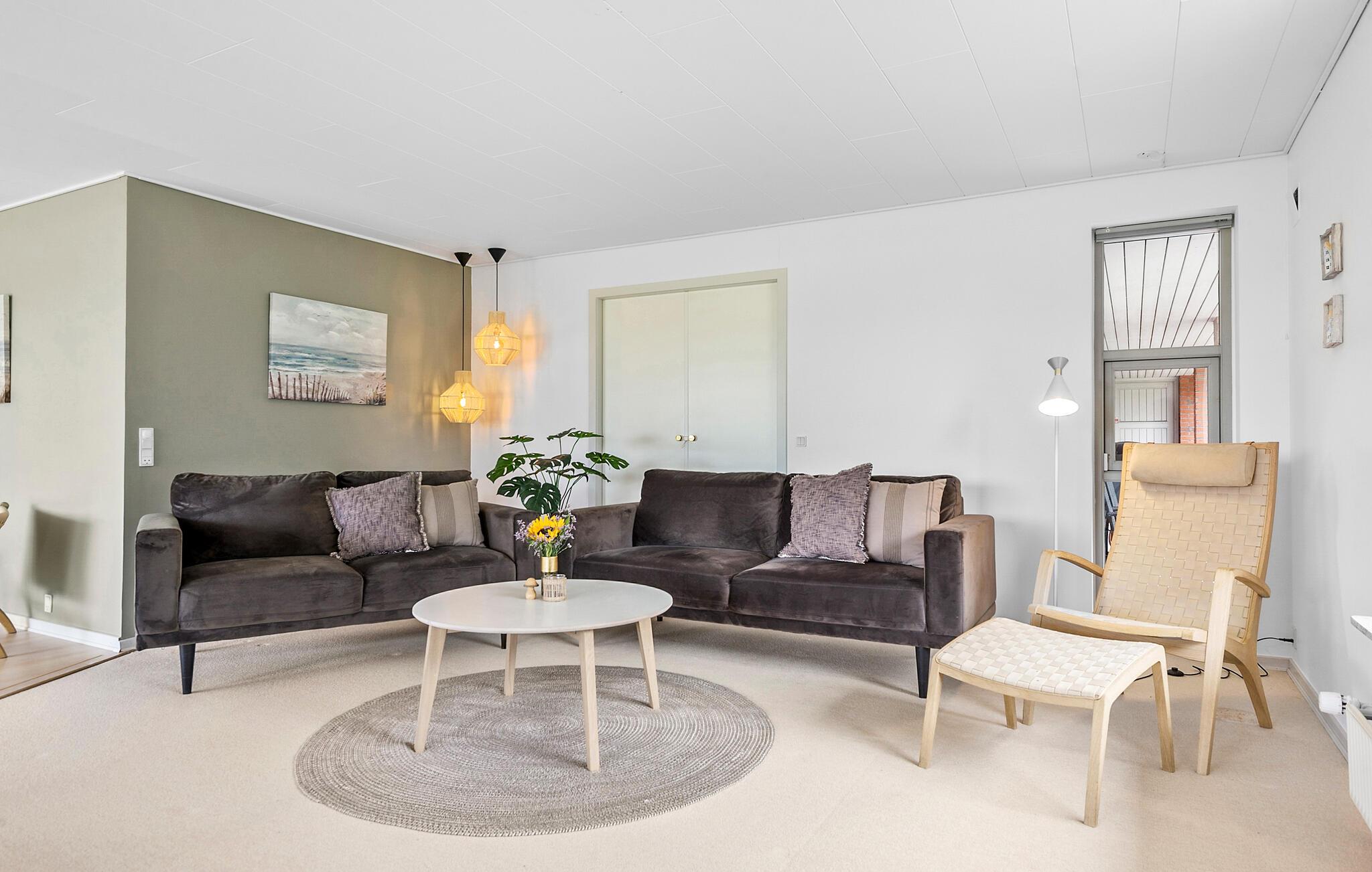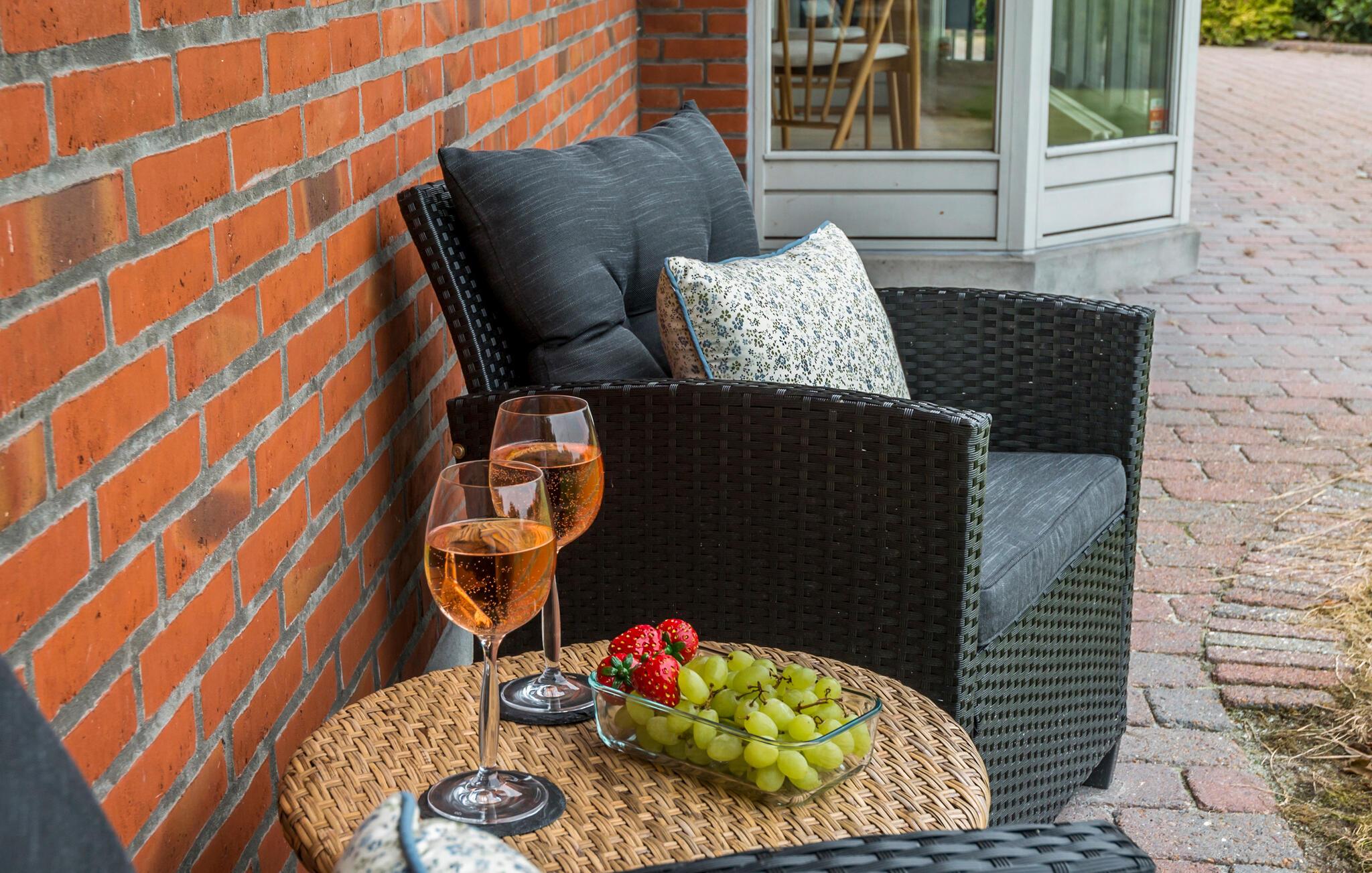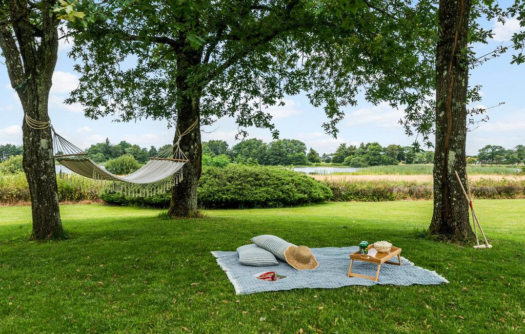 Ihr Ferienhaus ist elegant eingerichtet und verfügt über neue Möbel in allen Räumen. Der lichtdurchflutete Wohnbereich lädt dazu ein, es sich in den bequemen Sitzmöbeln gemütlich zu machen und die Zeit mit der Familie zu genießen. Kochen Sie in der gut ausgestatteten Küche gemeinsam ein leckeres Essen und genießen Sie dieses anschließend auf der großzügigen, überdachten Terrasse. Nutzen Sie die komfortablen Loungemöbel oder die gemütliche Hängematte, um sich im Freien zu entspannen, während die Kinder im großen Garten spielen.