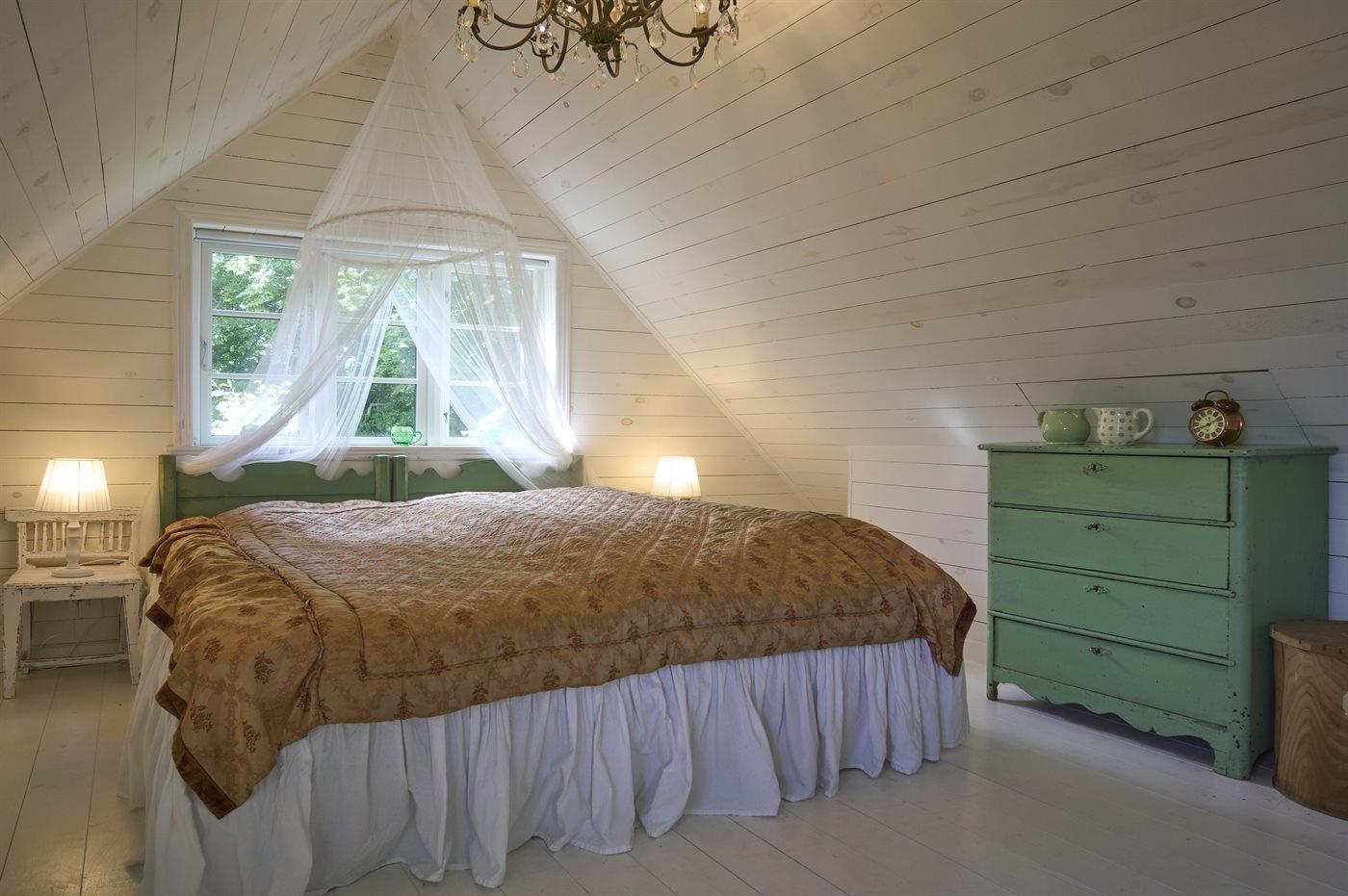 All together there are 3 bedrooms. The beds are divided on: 6 sleeping places in double beds. 2 sleeping places on mattresses. 2 of these sleeping accommmodations are located on the bed-loft of the house.