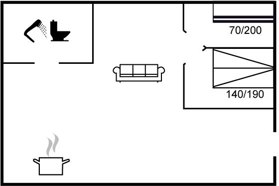 The holiday home is situated on a 10 m² garden site. Situated 500 m from the sea. Nearest shop is 50 m away. You will find a golf course in a distance of 5000 m. Parking place by the holiday home.