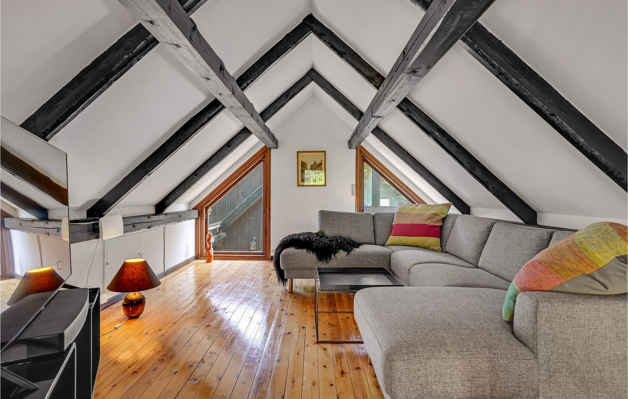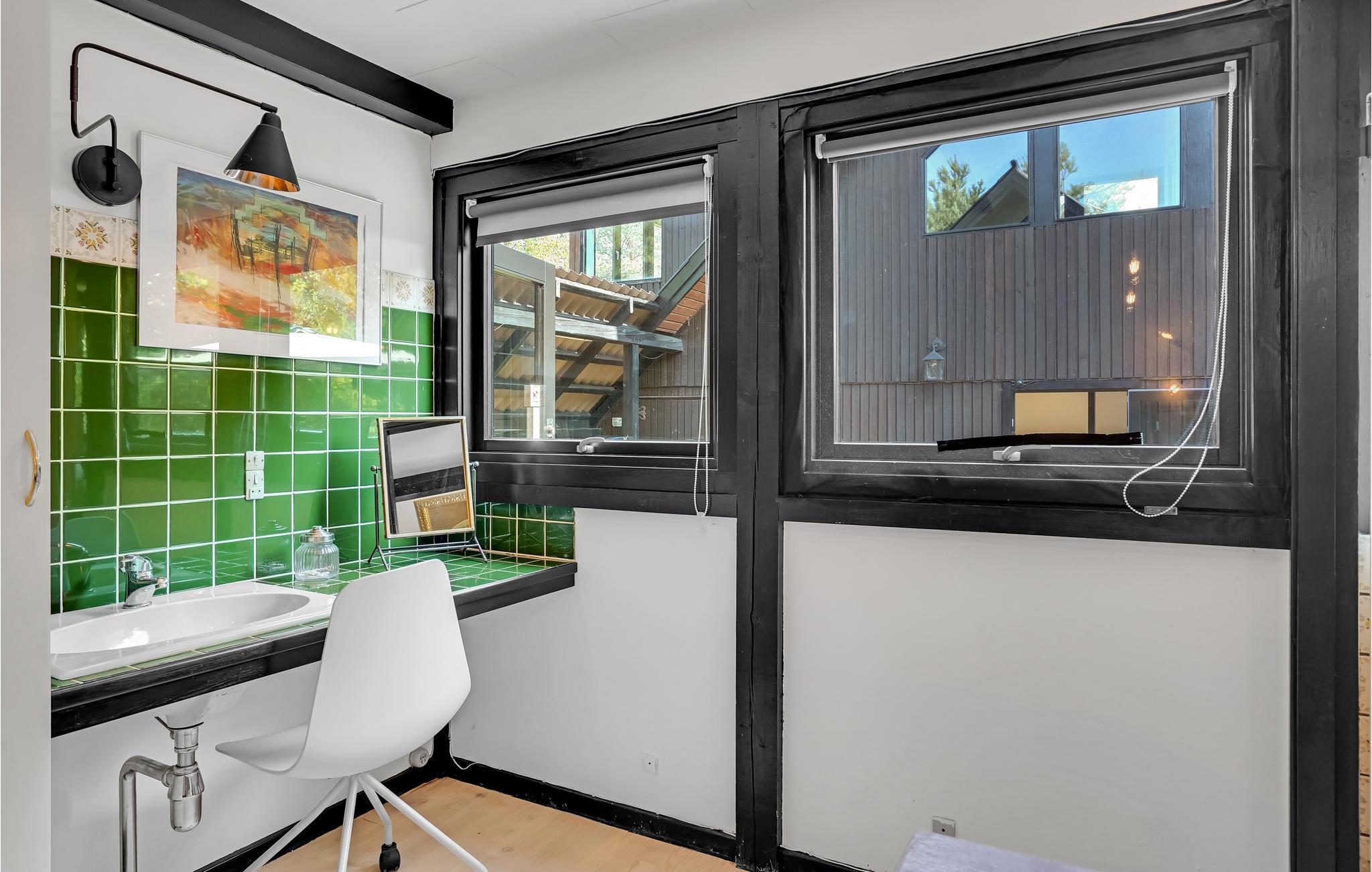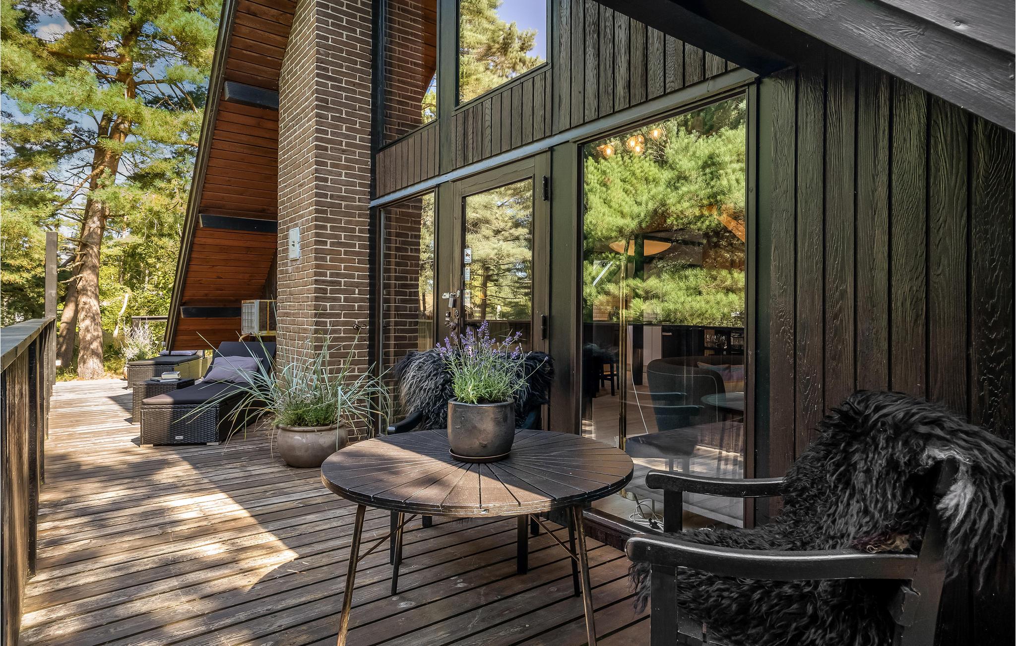 Charmantes Ferienhaus. Das Haus liegt in der Nähe von Gudmindrup Strand, einem der schönsten Strände an der Küste, der kinderfreundlich und mit Dünen ist. Das Haupthaus besteht aus Badezimmer mit Badewanne, 1 Schlafzimmer mit Zugang zum privaten Badezimmer mit Dusche, schöne Küche Familienzimmer in offener Kombination mit dem Wohnzimmer, über eine Treppe Zugang zum Fernsehzimmer. Vom Wohnzimmer Zugang zur offenen und überdachten Terrasse. Das Haus ist durch ein Nebengebäude mit einer schönen offenen Terrasse verbunden, auf der Sie viele Stunden mit angenehmen Grillabenden verbringen können. Genießen Sie nach einem Aufenthalt im finnischen Holzbad eine herrliche Abkühlung im kalten Tauchbecken.