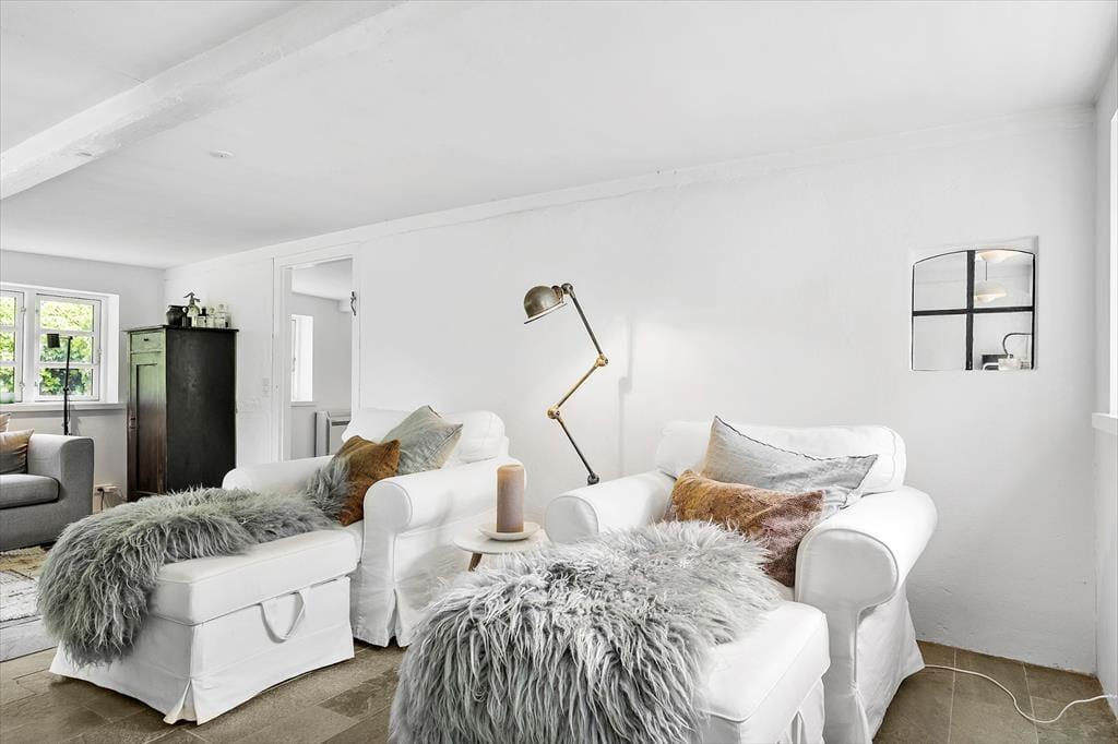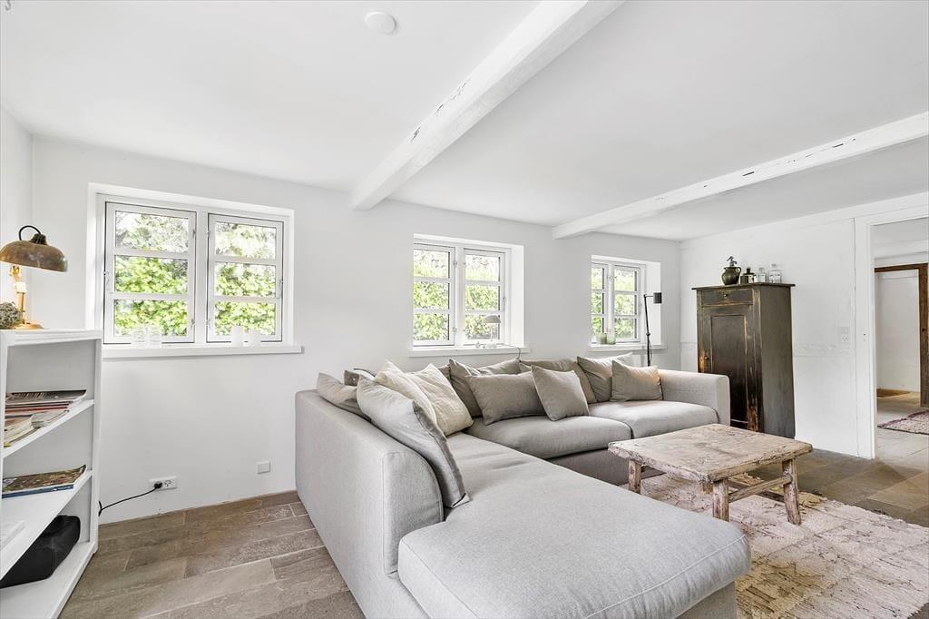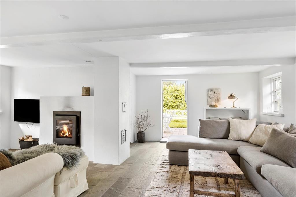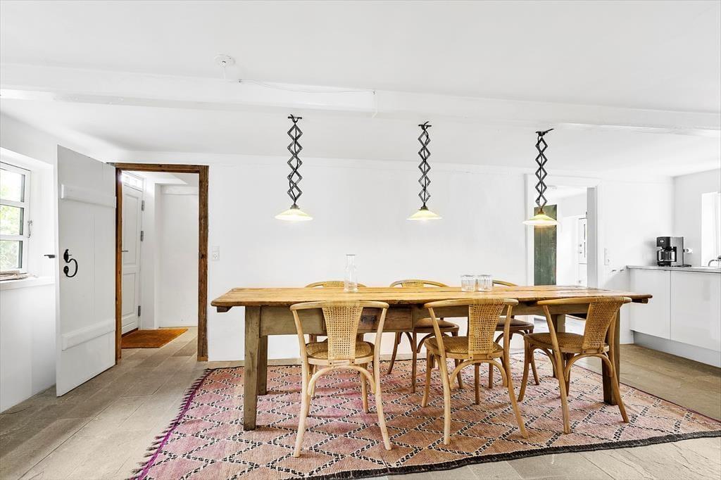 Indenfor mødes du af en varm og indbydende atmosfære med lyse rum, charmerende detaljer og alt, hvad du behøver for et afslappet ophold. Der er plads til 6 personer i tre soveværelser. Køkkenet er funktionelt indrettet, så du nemt kan tilberede gode måltider til venner og familie, og badeværelset står klart til at forkæle dig efter en dag fuld af oplevelser. Med rummets varme og atmosfære er der lagt op til hygge og afslapning fra det øjeblik, du træder over dørtærsklen.