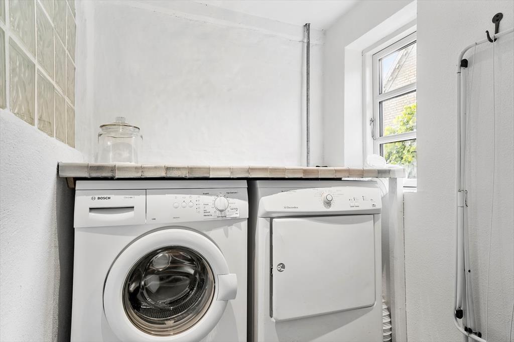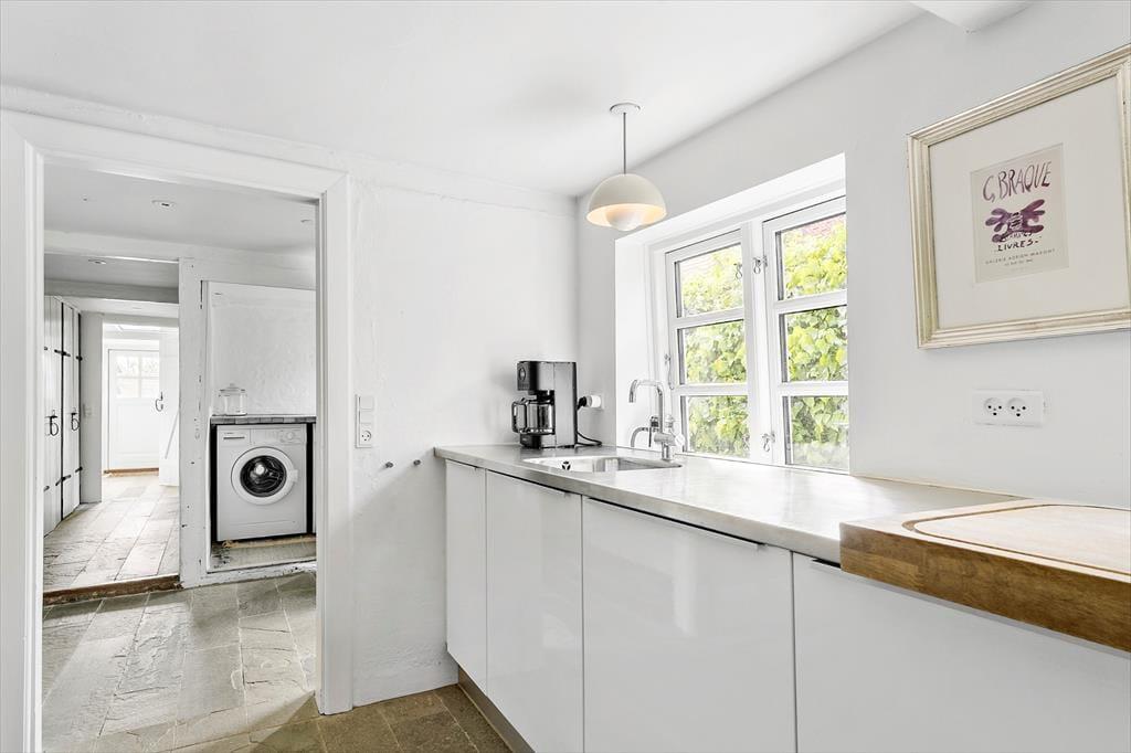 Fra stuen er der direkte udgang til den vestvendte terrasse, hvor I kan sidde i læ og nyde jeres måltider. Ved huset er der også en god indkørsel, så de praktiske forhold er helt på plads.