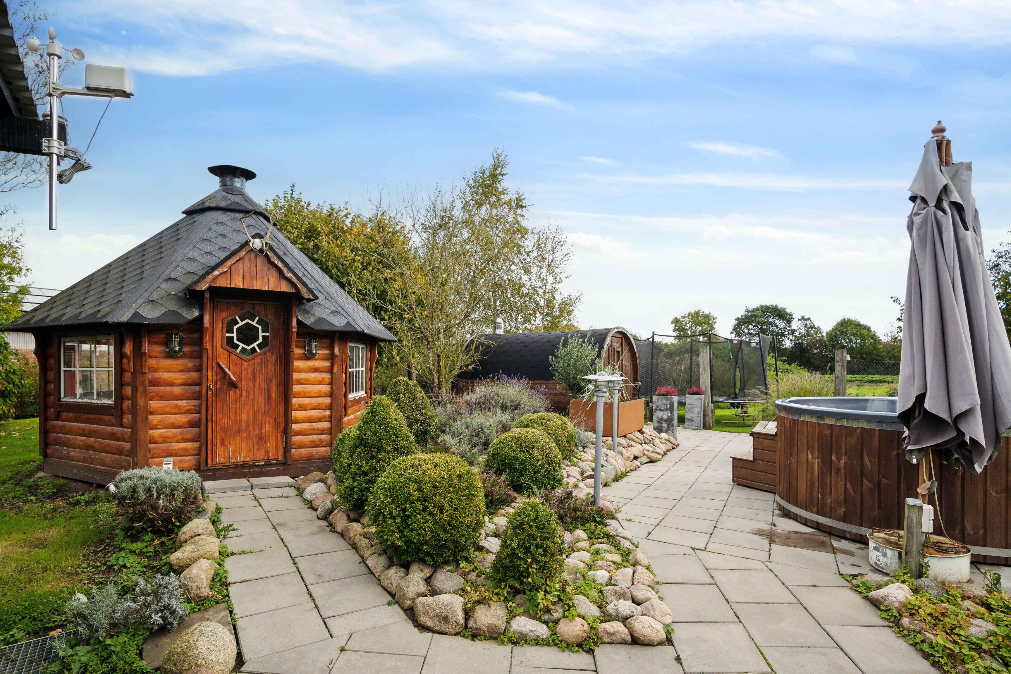 Well-located farm of 230 m2 with an accompanying retirement home of 120 m2, banquet/multi-purpose room with kitchen facilities of 130 m2, activity room of 100 m2, gravel-covered courtyard of 2,700 m2, and a garden with multiple sections including a separate area with a wilderness hot tub, sauna, and grill hut of about 4,700 m2. Additionally, there is both an 11 kW AC charger for electric/hybrid cars and a 30 kW DC fast charger for electric vehicles available. The farm's large 26 kWp solar panel system, located on the roof of one of the outbuildings, significantly contributes to sustainable electricity production. Superfast 360 Mbps WIFI is available in the homes, banquet hall, and activity room, as well as outdoor WIFI near the west-facing gable of the main house around the garden pond, hot tub, sauna, and grill hut. Main house: The main house is 230 m2 on one floor and dates back to 1850. It offers plenty of space with a total of 16 rooms. You'll find 3 large, authentically furnished living rooms with a TV with Chromecast, 4 bedrooms, 1 playroom (with the possibility of a sofa bed), a well-equipped kitchen with a Sage Barista Pro espresso machine, Kenwood mixer, blender, fondue set, and much more, as well as 2 large, new bathrooms with underfloor heating (installed in 2020 and 2022), and a separate toilet. The main house is decorated in a charming, original style with modern furniture and older paintings, mostly from the local area. The farm is heated by a new air-to-water heat pump (installed in 2021). Outdoors, there's plenty of space: a large gravel-covered courtyard of around 2,000 m2, a covered terrace with 10-12 seats, a terrace heater and gas and charcoal grill, a secluded terrace (not covered) with 10-12 seats, a fenced fire pit, and a garden pond. The garden, around 4,000 m2, is divided into several sections and includes fruit trees, berry bushes, and a greenhouse with seasonal vegetables. For children, there's a large trampoline with a safety net (4.30 meters), 2 football goals, 2 rocking animals, a playhouse, and a large swing set with five different swings, climbing rope, and slide. Additionally, there are various bikes for children and adults, mooncars, pedal tractors, etc. The garden also includes a fenced-off area with a new 2.25-meter electrically heated wilderness hot tub with a thermal lid (2023), a 3.5-meter wood-fired sauna barrel (2021), an outdoor shower with a hot water tank, and a large wood-fired grill hut for 12 people (2022). A certain amount of firewood is free to use during your stay. Retirement home: The retirement home is around 120 m2 on two floors, built in 1948. It has been fully renovated in 2023/2024 and features an entrance hall, utility room, bathroom with underfloor heating, a well-equipped kitchen with a KitchenAid coffee machine, Dualit espresso machine, KitchenAid mixer, microwave, Liebherr fridge-freezer, dining room with seating for 8, living room with TV and Chromecast, and 4 bedrooms (2 on the first floor and 1 with underfloor heating). The house is decorated in a charming, original style with modern furniture and older paintings, mainly from the local area. Heating is provided by a new air-to-water heat pump (installed in 2023). Outdoors, there is a large terrace of 70 m2, of which 40 m2 is covered, with garden furniture for 8 people and a gas and charcoal grill. There's also a 200 m2 gravel courtyard and a 700 m2 garden. Superfast 360 Mbps WIFI is available. Activity room: The activity room is 100 m2 and was established in 2023 on the old hayloft on the first floor of the farm. The room is insulated and heated with 2 air-to-air heat pumps. Available facilities include a pool table, table football, air hockey, 2 dartboards (traditional/electronic), shuffleboard, poker table (6 seats), craft table (4 seats and 1 Trip Trap high chair), LEGO, toys, board and card games, a 32" TV and projector with Chromecast, Xbox 360 and Xbox One with many games, as well as seating areas and a large bar in the middle of the room with 7 barstools, all kinds of glasses, a coffee machine, blender, fridge, and more. Superfast 360 Mbps WIFI is available. Banquet/multi-purpose room: The banquet/multi-purpose room with an attached kitchen, totaling 130 m2, was built in 2024 in the old cattle barn on the ground floor of the farm. The actual banquet/multi-purpose room is about 90 m2 and can accommodate around 60 guests. Additionally, there's an entrance/hallway of about 25 m2 and a kitchen of about 15 m2. The original details have been preserved, including the old vaulted ceiling and beams. The floor is equipped with underfloor heating and treated with epoxy. The primary heat source is an air-to-air heat pump. There's ample table space, storage, and shelving. You'll find a projector, whiteboard, sound system with subwoofer and Bluetooth, a large portable display fridge, a 10-liter industrial coffee machine, and a draft beer system with 3 taps. There's also a sink with cold water. The kitchen includes an industrial fridge, fridge-freezer, DeDietrich oven, cooktop, extractor with external motor, 2 dishwashers, a pizza oven with 2 chambers, a powerful large microwave with convection, a boiling water tap (Taurus), KitchenAid blender, Kenwood mixer with accessories, and a water-cooled beer dispenser (Celli) with room for 3 kegs. There's also plenty of storage, shelving, and table space in the kitchen, as well as a stainless steel rolling table. Superfast 360 Mbps WIFI is available. Currently, there are no toilet facilities, which are planned to be established in the fall of 2024. Toilets are available in the main house and the retirement home. On request, tables, chairs, tableware, tablecloths, beer kegs, CO2 bottles, a popcorn machine, and a ScOOp slush machine with 3 chambers can be rented. Upon arrival, there are always 4 tables for 6 people and 20 upholstered chairs, along with tableware and cutlery for 20 people. In 2024, a 170 m2 tiled terrace was established around 