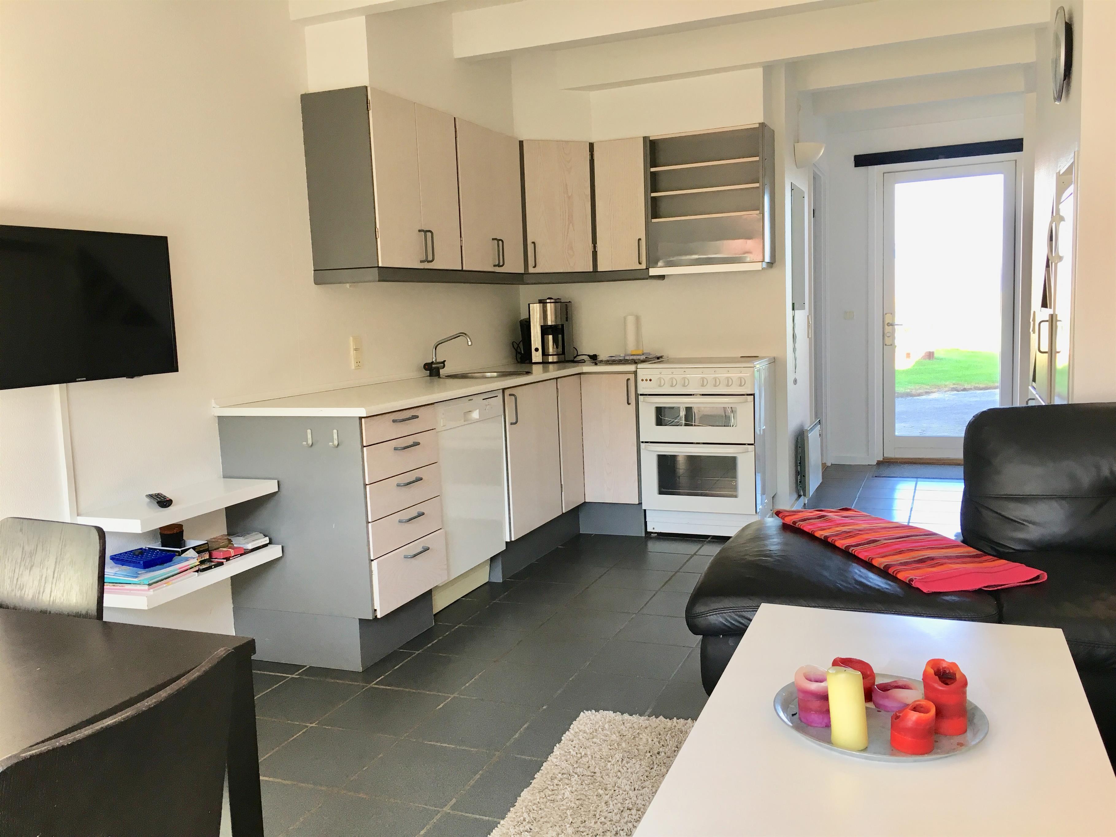 kitchen area: Electric cooker, c h water, fridge w/freezing compartment, coffee maker, dishwasher