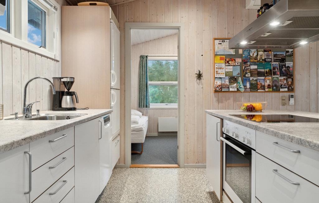 Dieses gemütliche und geräumige Ferienhaus empfängt Sie in hellen und modernen Zimmern mit allem, was Sie für einen wunderschönen Urlaub benötigen. Die Küche und das Esszimmer befinden sich in einem offenen Raum, in dem Sie die Gesellschaft der anderen genießen können, während die Mahlzeiten zubereitet werden. Von hier aus sind es nur wenige Schritte bis zum Wohnzimmer, wo Sie viele Stunden Zeit für Spiele und Spaß haben.