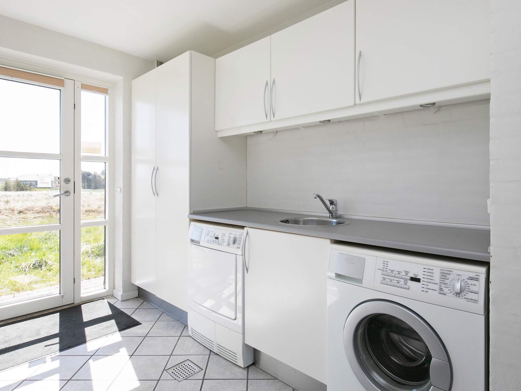 Das Haus verfügt über eine offene Terrasse mit Gartenmöbeln, auf der Sie Sonne und frische Seeluft genießen können. Innen wirkt das Haus hell und einladend mit frisch gekalkten Wänden, weiß gestrichenen Decken und Holzböden im Wohn- und Schlafzimmer. Der große Flur ist mit Fußbodenheizung ausgestattet und bietet Platz für Waschmaschine und Trockner. Das Haus verfügt über zwei Badezimmer mit Dusche und Fußbodenheizung – eines davon zusätzlich mit einer Whirlpool-Badewanne für zwei Personen. Die geräumige Küche ist bestens ausgestattet mit Geschirrspüler, Mikrowelle, Konvektionsofen, Herd mit Cerankochfeld, Wasserkocher und Gefrierschrank. Die Küche ist offen zum Wohnzimmer gestaltet, das mit einem Kaminofen, einem Fernseher mit digitalem Satellitenempfang, einem DVD-Player und direktem Zugang zur Südterrasse ausgestattet ist. Vom Wohnzimmer führt eine Treppe in den ersten Stock, wo sich ein weiteres großes Wohnzimmer mit Zugang zu einem Balkon und einem wunderschönen Blick auf die Dünenlandschaft befindet. Die Schlafmöglichkeiten verteilen sich auf vier Schlafzimmer: drei mit Doppelbett im Erdgeschoss und eines mit Doppelbett im ersten Stock. Ein sehr gut ausgestattetes Ferienhaus, ideal für einen Urlaub zu jeder Jahreszeit. Das Haus liegt in der Nähe des Ferienzentrums Vigsø, dessen Wasserpark ab der zweiten Februarwoche und das ganze Jahr über freien Eintritt bietet. Bitte beachten Sie, dass der Wasserpark in den Kalenderwochen 37, 38 und 39 aufgrund von Veranstaltungen am Freitag und Samstag geschlossen ist.