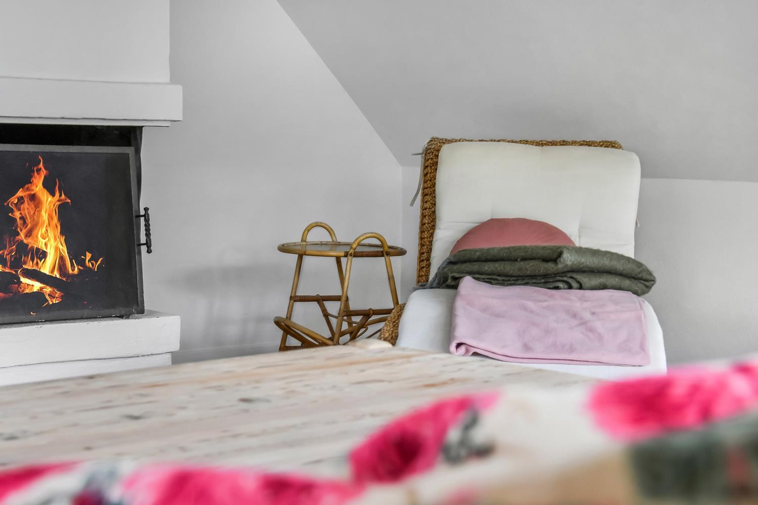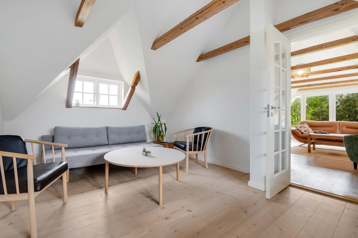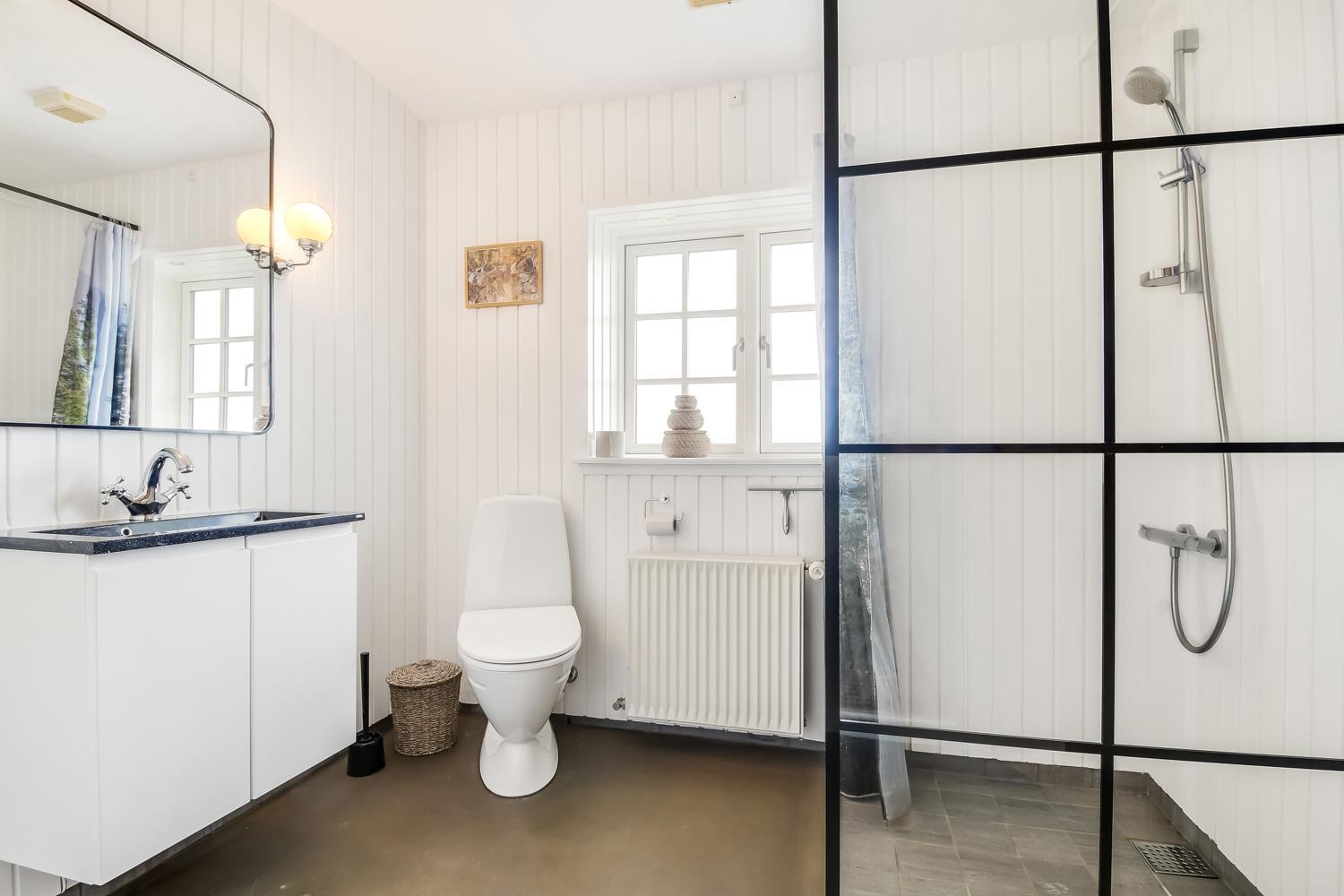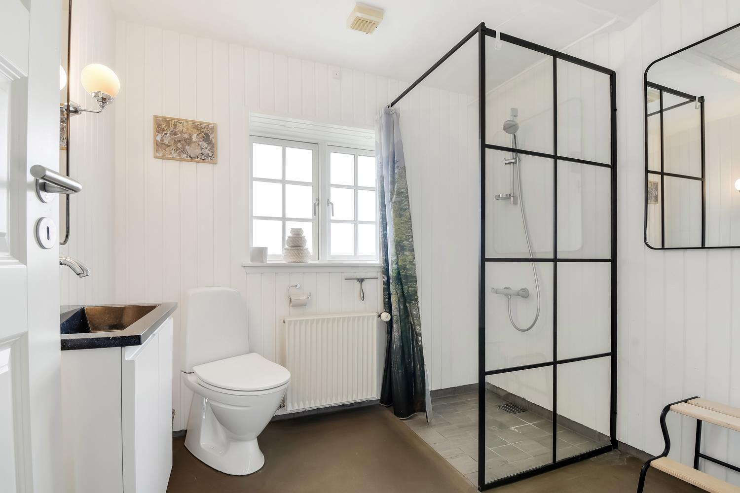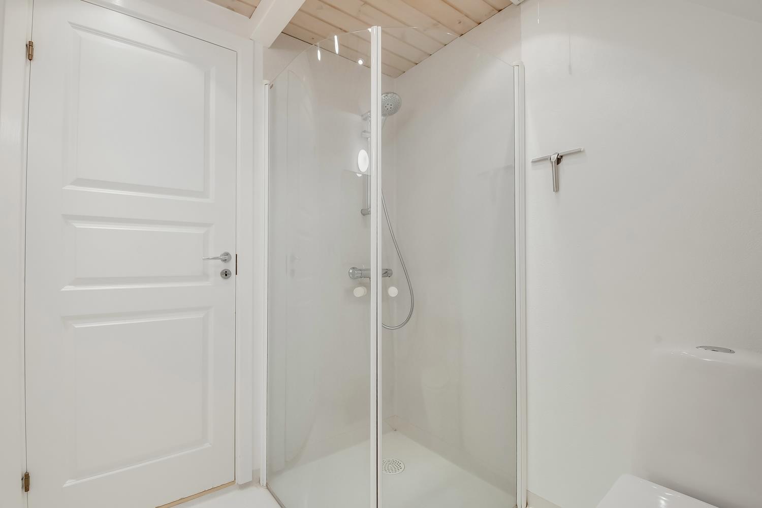 Über die Treppe an der Küche kommen Sie in den 1. Stock. Hier gibt es einen offenen Treppenabsatz mit einer Doppelschlafcouch. Schöner Wohnraum mit fantastichem Blick über die Landschaft und zum Fjord. Wohnraum ist mit schönen Möbeln, Smart-TV mit dänischen und deutschen Programmen sowie der Möglichkeit TV / Radio / Apps über Chromecast zu streamen. Wenn Sie ein Mobiltelefon oder ein anderes Gerät bei sich haben, können Sie streamen, wofür Sie ein Abonnement haben. Badezimmer mit Toilette, Waschbecken und Dusche. grosser Schlafraum mit 1 DB und TV an der Wand mit dänischen und deutschen Programmen und Ausgang zum prachtvollen Balkon mit Blick zum Wasser und über die Landschaft.